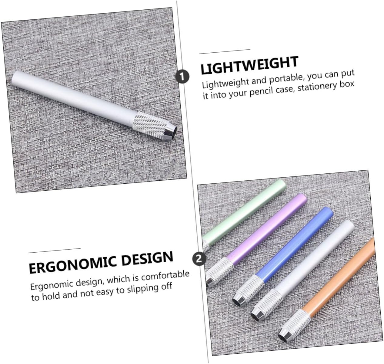 Pratico estensore per matite: qualità superiore, buona consistenza, robusto, resistente all'usura, non si deforma e non si rompe facilmente, estensore per matite per studenti. Estensione per matite colorate: lavorazione eccellente e dettagli raffinati ne garantiscono la popolarità e la durata, portamatite per l'aula Portapenne: realizzati in acciaio inossidabile di qualità superiore, sono durevoli e possono essere utilizzati a lungo, portapenne in metallo Prolunghe per penne con manico in metallo: una scelta meravigliosa per i tuoi amici, bambini, compagni di classe o altre persone per il loro uso quotidiano, prolunga per matite Portapenne multiuso in metallo: leggero e portatile, facile da riporre e trasportare, basta metterlo nella borsa o nell'astuccio, portapenne per l'aula