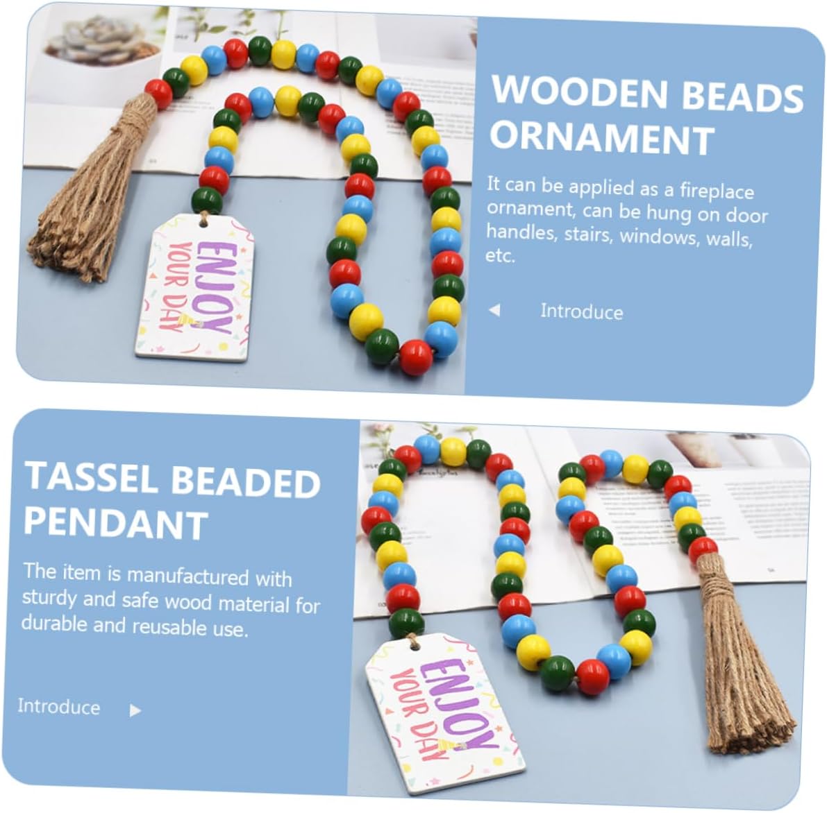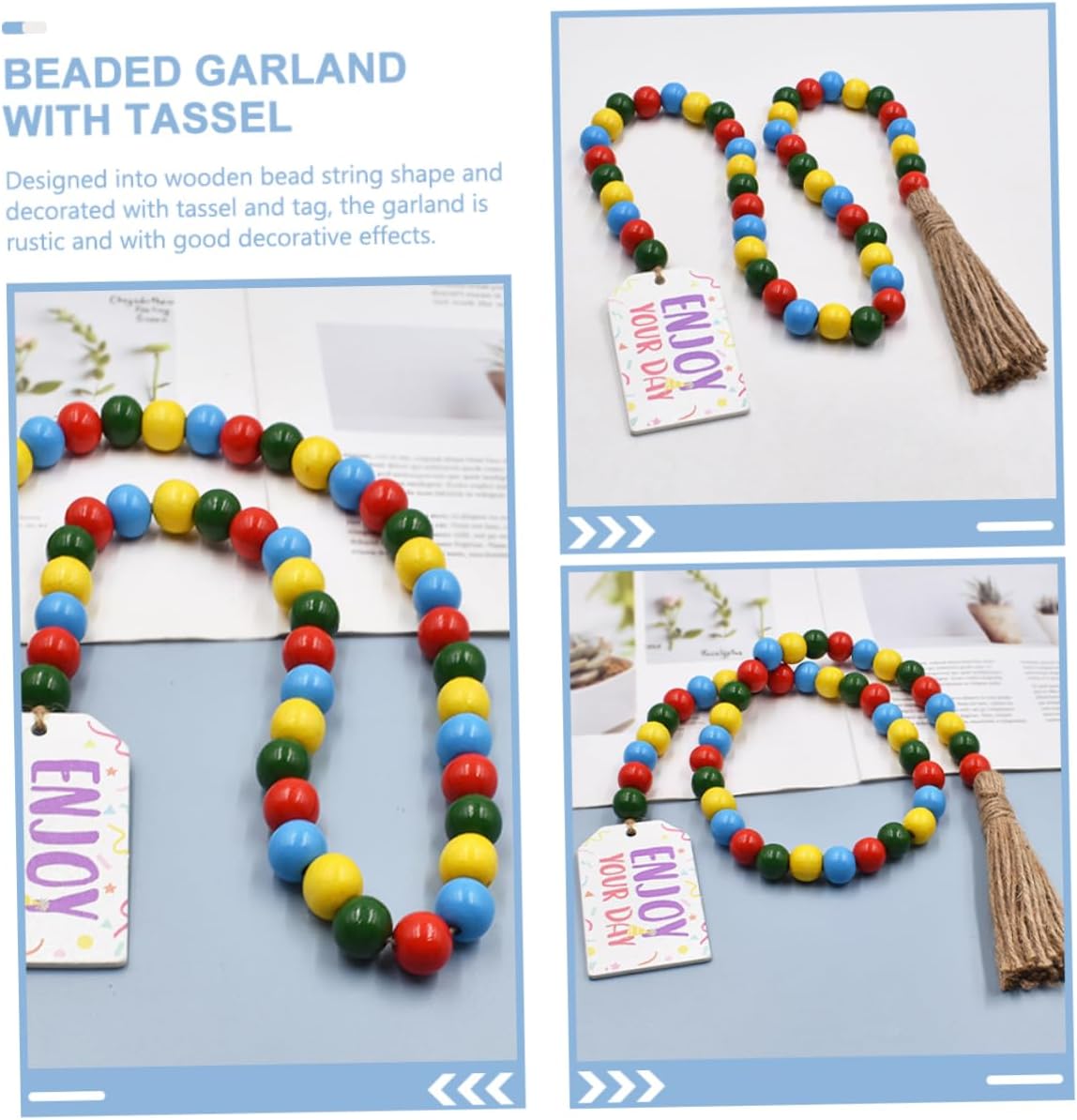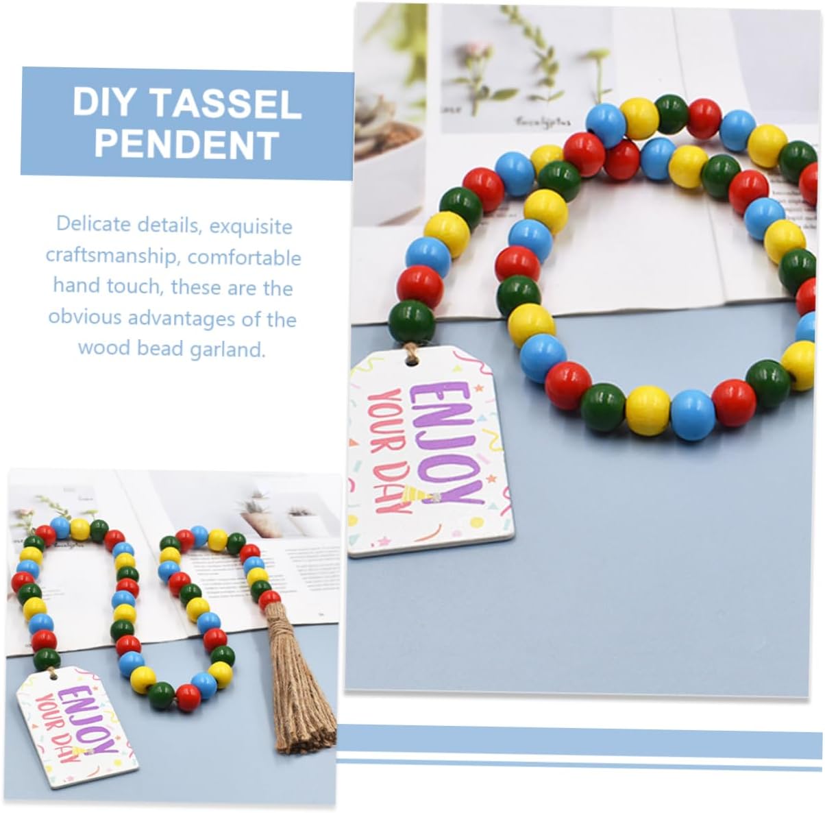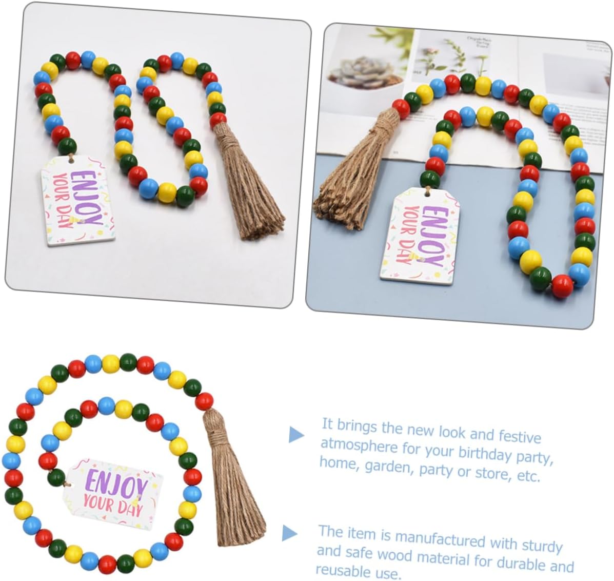 Decorazione con perline di legno: può essere utilizzata come ornamento per il , può essere appesa alle maniglie delle porte, alle scale, alle finestre, alle pareti, ecc. ciondolo con perline e nappa appesa Ghirlanda di perline da parete: struttura in filo di perline di legno, facile da decorare e appendere, aggiunge più atmosfera festosa, ornamento da appendere alla parete con perline. Ghirlanda di perline a vassoio a più livelli: la ghirlanda di perline rustica perfettamente con gli altri accessori della tua casa, creando un'atmosfera da festa, ornamento di perline da appendere Ghirlanda di perline di legno: design con perline e decorazioni con nappe, questa ghirlanda di perline di legno sospesa è piena di un elegante senso di bellezza, decorazioni con nappe fai da te Decorazione da appendere per la festa di compleanno: per il tuo amante, i tuoi amici e la tua famiglia, apprezzeranno la decorazione con perline di legno, ciondolo con perline di legno