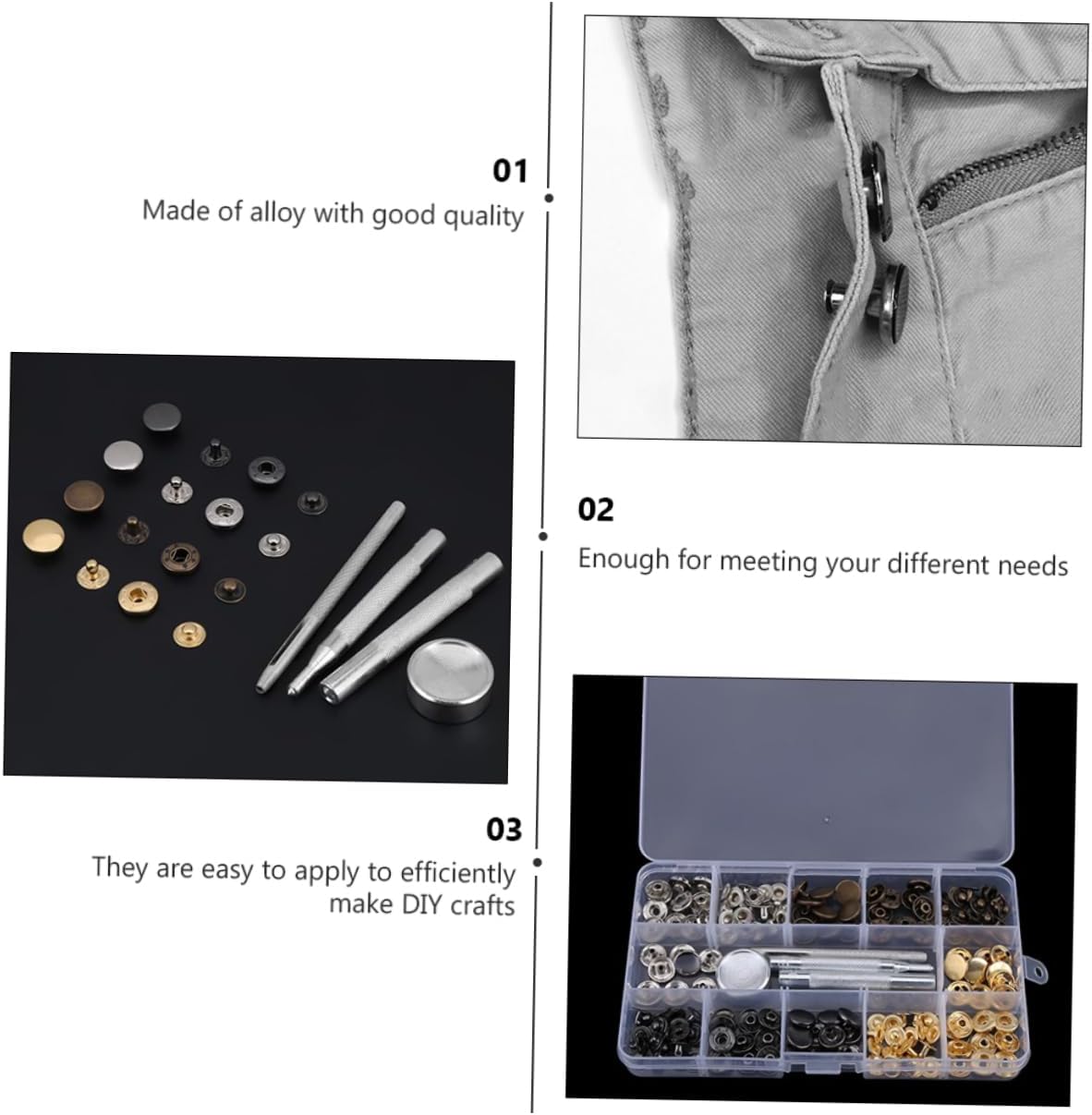 Fibbia fissaggio a : adatta per camicie, cappotti lana, , , , scarpe, , cinture, cappotti, jeans, , ecc., chiusura a Pulsante impostazione: include 120 set kit automatici veloci, oltre a 3 strumenti installazione, sufficienti e convenienti da utilizzare, kit automatici in metallo Kit automatici: quando i dei tuoi vestiti, jeans, pelle, borse e altri artigianali sono rotti o , sostituire questi automatici per sostituire quello , strumento per automatici Accessori per jeans: hanno un design semplice, ma sono molto pratici da usare, ti offrono , chiusura con Sostituzione dei in metallo per jeans: gli strumenti installazione collegheranno la chiusura all'articolo abbigliamento o alla pelle, ti aiuteranno durante l'installazione o la sostituzione dei automatici, strumento per