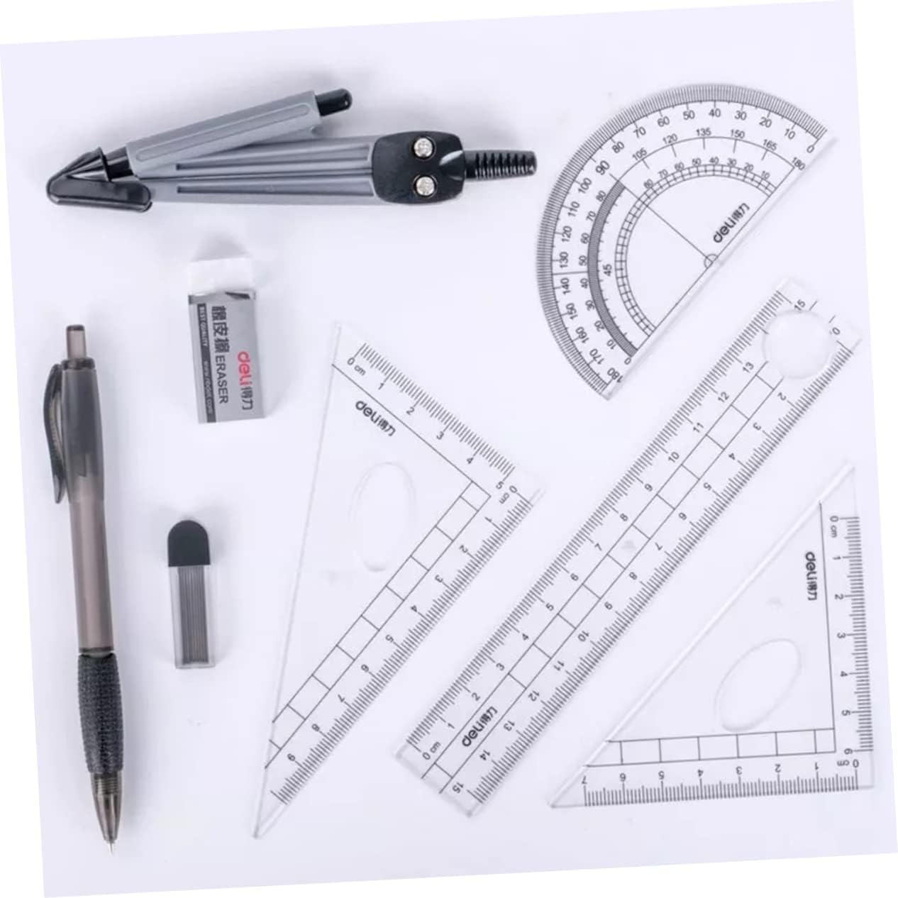 Compasso: uno strumento per disegnare, molto comodo, kit da disegno Kit da disegno: è leggero, facile da trasportare e riporre, righello a triangolo Righello tringle: adatto per la scuola, l'ufficio, gli studenti, gli insegnanti, kit da disegno Righello dritto: realizzato in materiale resistente e duraturo, kit da disegno Un perfetto per gli studenti, piacerà loro molto.