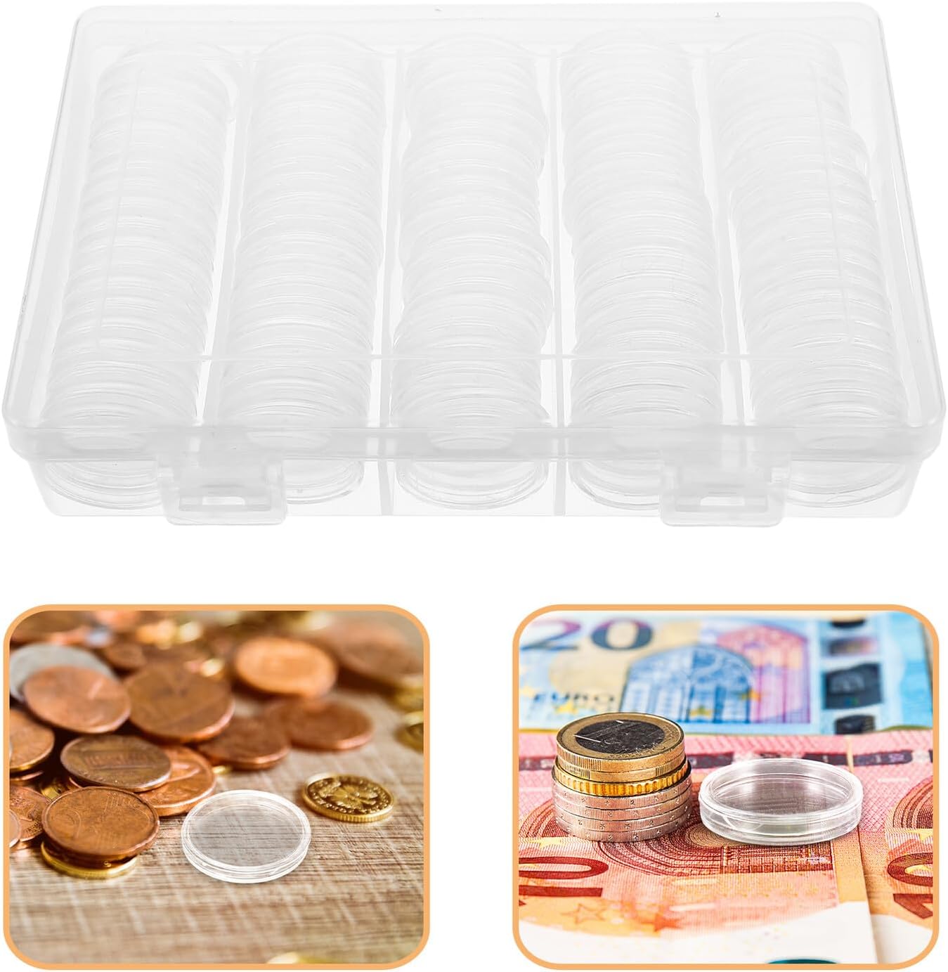 Capsule per monete: questi mini contenitori leggeri e resistenti con coperchio si adattano facilmente alle tasche. Una scatola rotonda trasparente per i collezionisti che vogliono portare con sé le capsule di presentazione delle monete ovunque vadano. porta quarti di dollaro, porta capsule per monete Materiale altamente trasparente: scatola di plastica trasparente con coperchio, realizzata in plastica di alta qualità. Questa custodia protettiva per monete offre un'eccellente visibilità e un modo comodo per visualizzare e visualizzare senza sforzo le tue monete preferite, un contenitore trasparente per monete, capsule per monete per collezionisti. Portatile e pratico: il contenitore trasparente con coperchio offre ai collezionisti uno spazio compatto per le monete e supporta lo scambio organizzato di monete e la gestione portatile del denaro. Accessori per la raccolta di monete e contenitori per monete per collezionisti Raccolta ad alta capacità: contenitore per capsule di monete, ideale per esigenze di raccolta di monete che richiedono efficienza di risparmio di spazio e massima protezione, portamonete per collezionisti, contenitore per monete MULTIUSO: Che tu sia un hobbista o un imprenditore, questo contenitore per monete e supporto per un quarto di dollaro è adatto ad ogni esigenza - perfetto per la conservazione chiara delle monete e soluzioni di presentazione visibili, organizer per capsule per monete, capsule per monete trasparenti