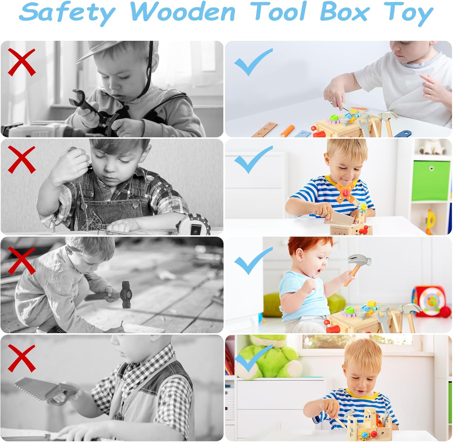 | Obiettivi educativi | Migliorare la coordinazione mano-occhio, le abilità manuali e l'immaginazione attraverso il gioco di ruolo e le attività di costruzione. Insegnare ai bambini sugli strumenti e come vengono utilizzati nella vita reale. |