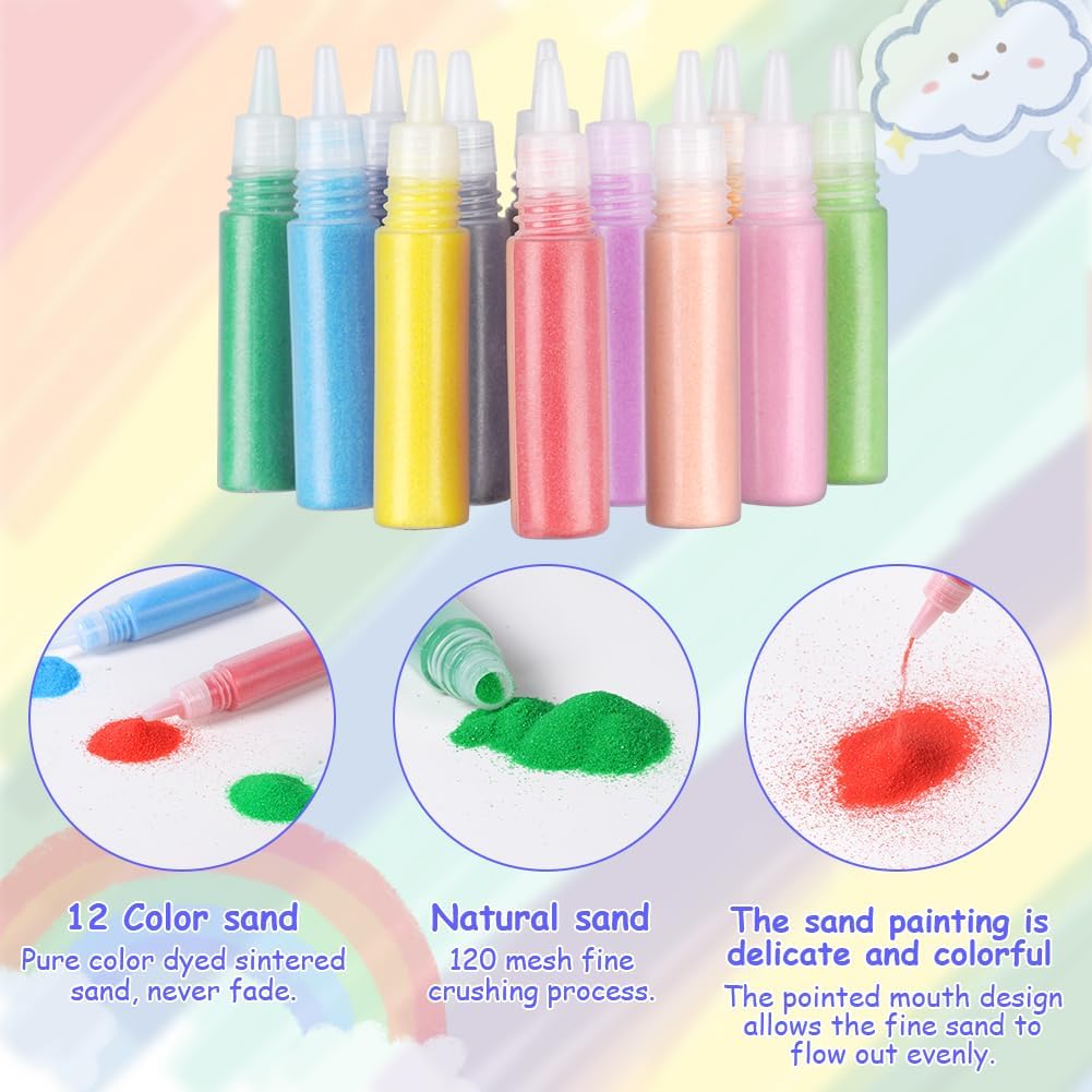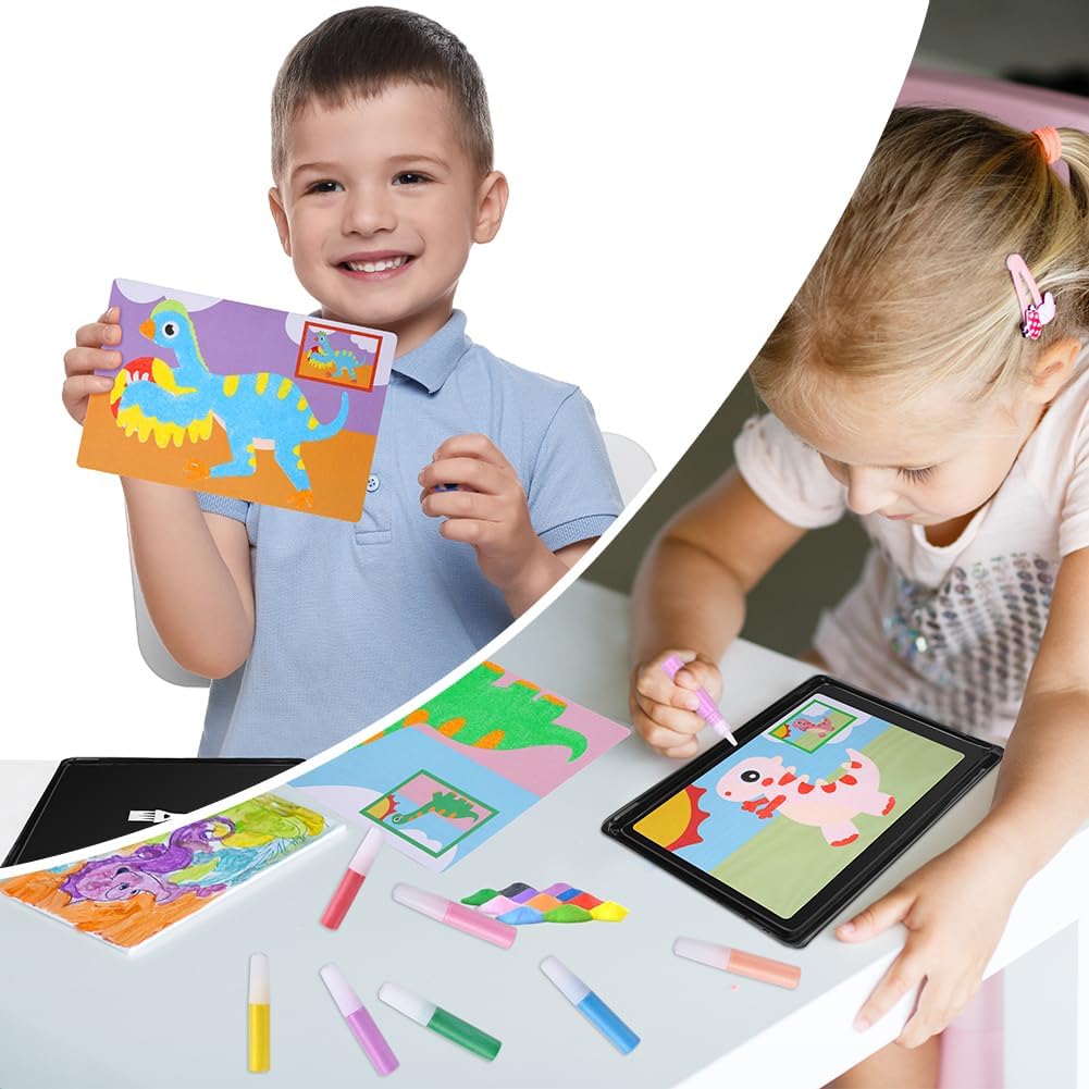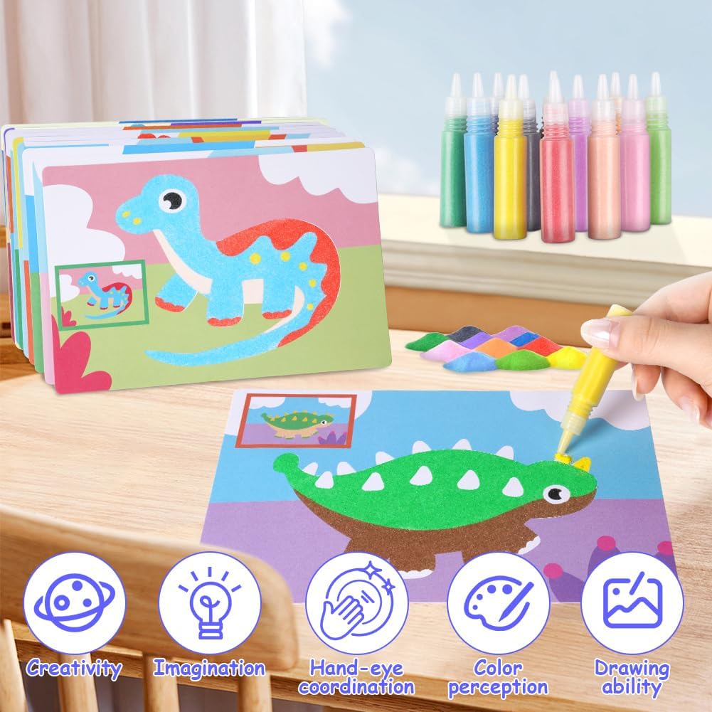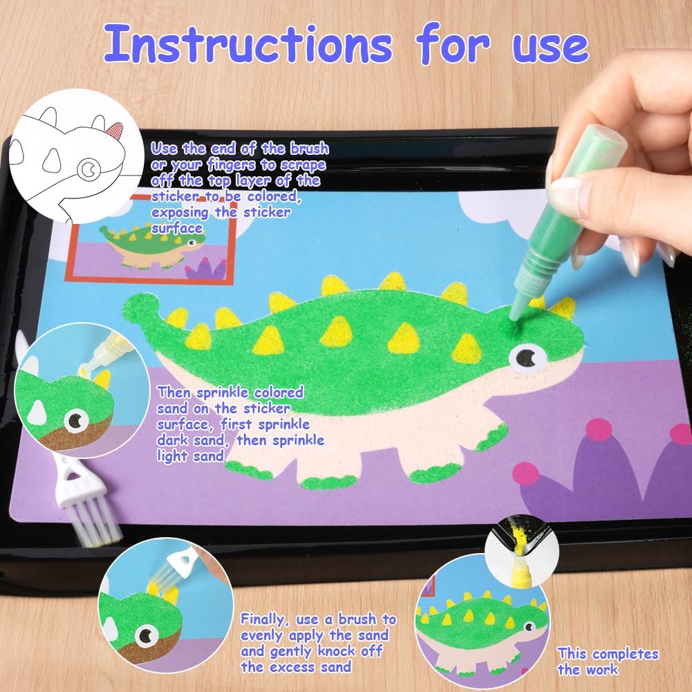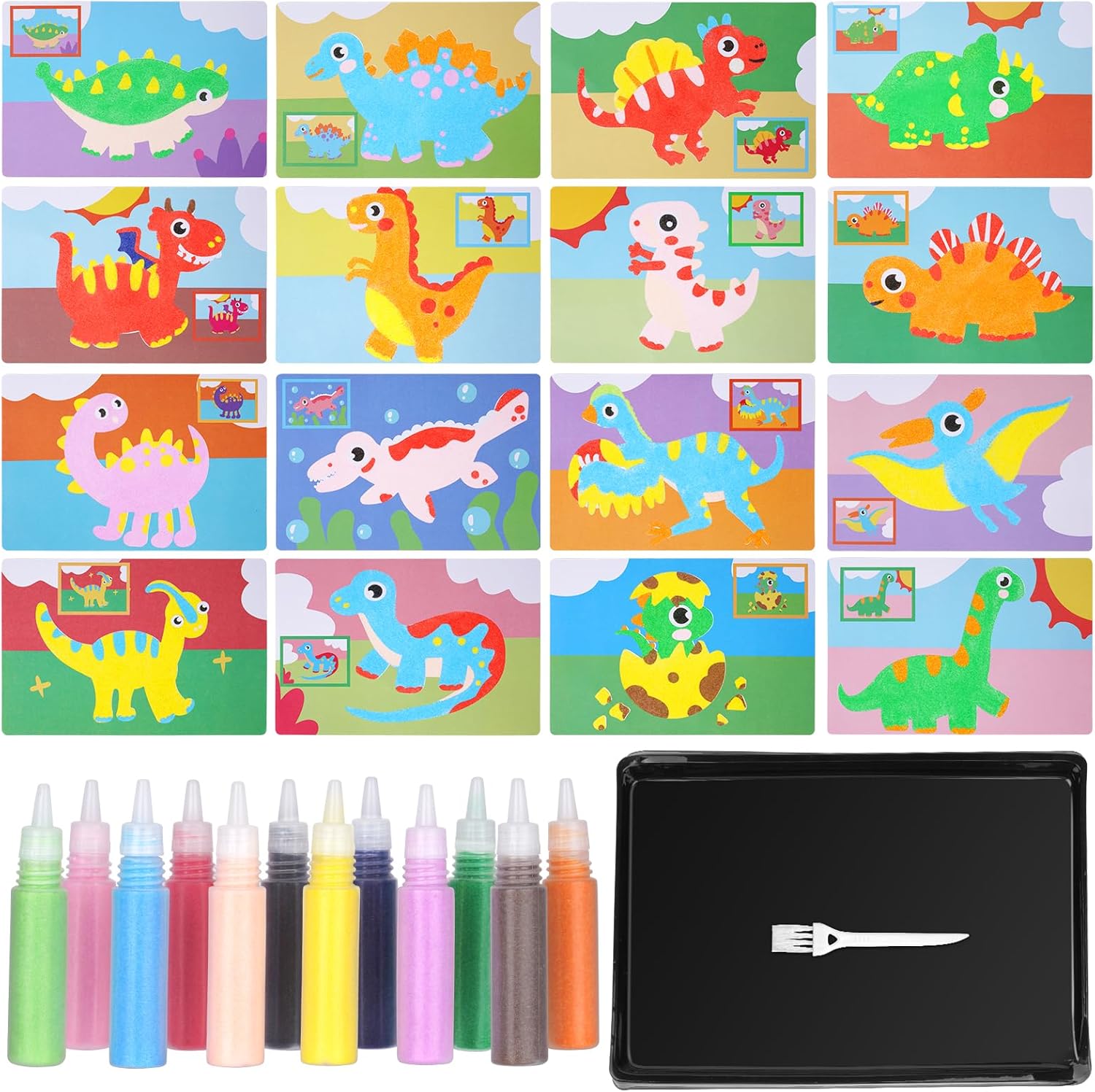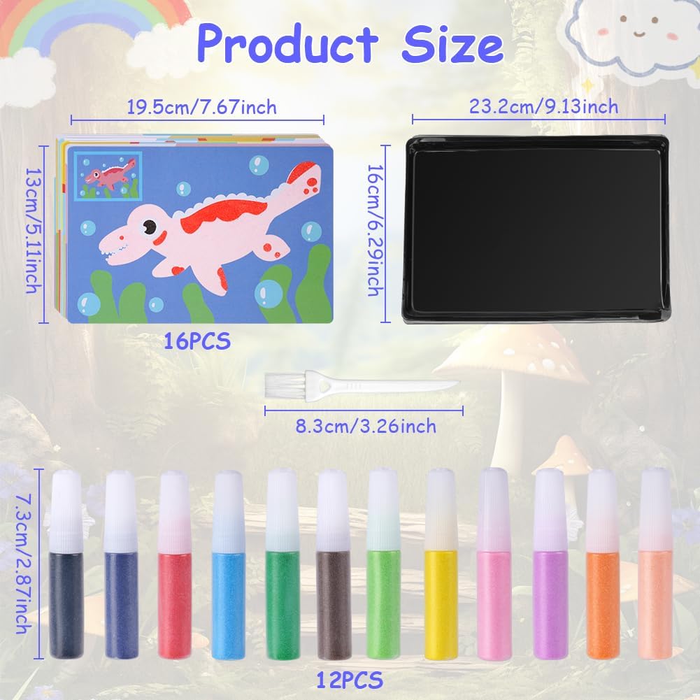 Sicuro e non tossico: carta da disegno pretagliata con autoadesivo, con 12 pennarelli colorati, ecologico e sano, colore duraturo, qualità della carta, appiccicosità e precisione del taglio della carta sono molto buoni. Ottimo giocattolo educativo: questo set di pittura con sabbia colorata per bambini ha 16 modelli di dinosauri tra cui scegliere. Giocare a questo gioco di pittura può non solo stimolare la creatività e l'immaginazione, ma anche esercitare la coordinazione occhio-mano, migliorare la sensibilità al colore e le capacità di pittura. Tempo felice e spensierato: dotato di lavagna per disegno di memoria, pennello per pittura e bastoncino. Prepara la lavagna e rifiuta di spargere sabbia ovunque per una facile pulizia. Usa una penna o un pennello appositamente progettati per pulire delicatamente la sabbia colorata in eccesso. Prepara un imbuto di carta, metti la sabbia colorata in eccesso nella bottiglia con l'imbuto e continua a usarla per evitare sprechi. Come si usa: Usa l'estremità del pennello o le dita per raschiare via la carta superficiale dell'adesivo da colorare, esponendo la superficie adesiva, quindi cospargi la sabbia colorata sulla superficie adesiva, prima cospargi la sabbia scura, poi cospargi la sabbia chiara e infine usa un pennello per spazzolare uniformemente la sabbia e rimuovere delicatamente la sabbia in eccesso, in modo che il lavoro sia completato. Scatole regalo fatte a mano selezionate: perfette per compleanni, feste e regali di Natale, stimolano la creatività dei bambini, costruiscono un ponte per l'interazione genitore-figlio, lavorano con bambini carini, disegnano dipinti squisiti e i prodotti finiti sono sorprendenti, rendendo orgogliosi i bambini.