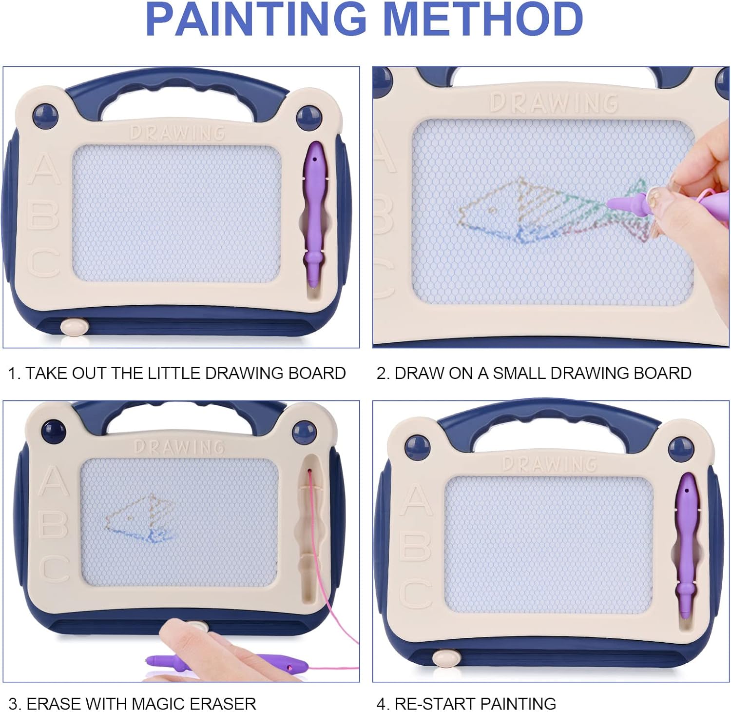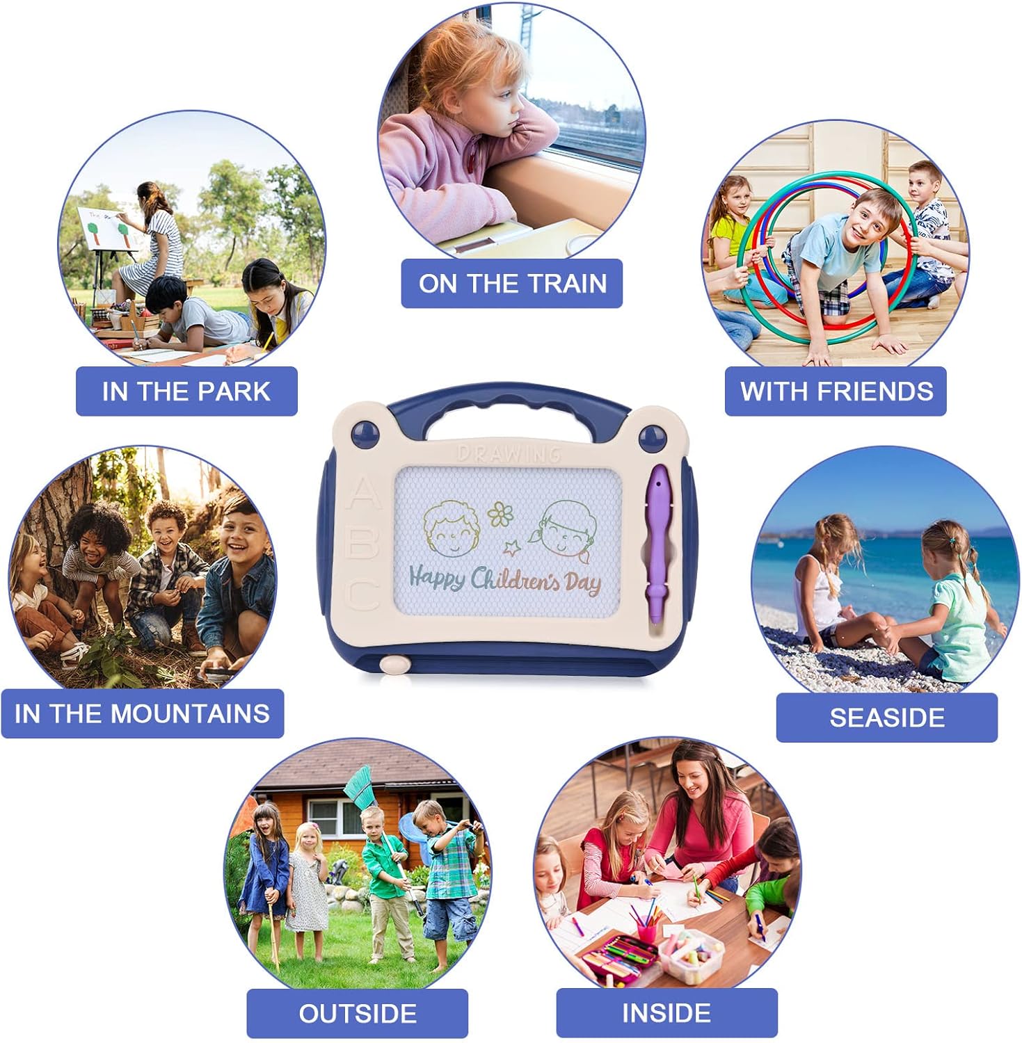 🎨 【Educativo】 - Ispira la creatività e l'immaginazione di tuo figlio nel tavolo da disegno magnetico, Esercita la coordinazione occhio-mano e la capacità di percezione colorata, Impara la cooperazione con la lavagna. Amalo, dagli il meglio. 🎨【Pulito】- Se tuo figlio ha l'abitudine di disegnare nei posti sbagliati, questa tavola per scarabocchi ti farà risparmiare tempo e frustrazione. Non fare mai confusione, senza inchiostro, senza vernice, pulito e sicuro per i bambini. Non preoccuparti più di sporcare le pareti. 🎨 【Ispira la creatività nei bambini】 - Questo tavolo da disegno magnetico aiuta a stimolare la creatività, l'immaginazione e l'abilità artistica dei bambini. Il tuo bambino può esprimere le proprie idee con disegni, esercitarsi con le lettere e con l'aritmetica attraverso gli scarabocchi! È un giocattolo ideale che impedisce ai bambini di dedicarsi ai giochi elettronici. 🎨 【Facile da cancellare】 - Questa lavagna magnetica da pittura con gomma scorrevole è progettata per una cancellazione rapida, consentendo ai bambini di far scorrere e cancellare delicatamente i loro disegni. Inoltre, ha una forma carina ed ergonomica per una facile maneggevolezza. 🎨 【Dimensioni portatili】 - Questa tavola da scarabocchio è realizzata in dimensioni portatili con un'area di disegno di 13 x 8 cm. La dimensione dell'articolo è 21 x 16,5 cm. Inoltre, la tavola per scarabocchi è leggera, facile da portare ovunque, ideale per aeroporti, viaggi su strada, compleanni e come regalo di Natale per bambine e bambini.