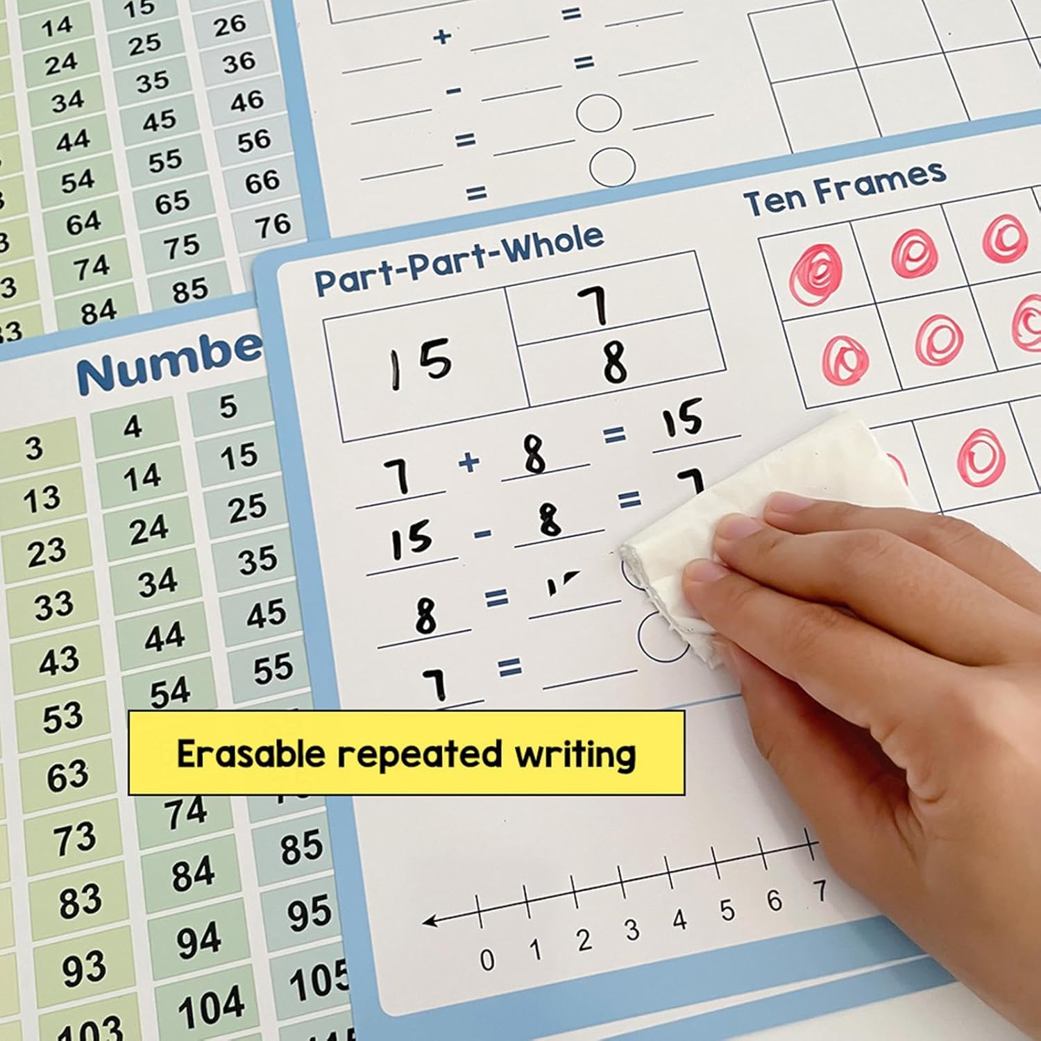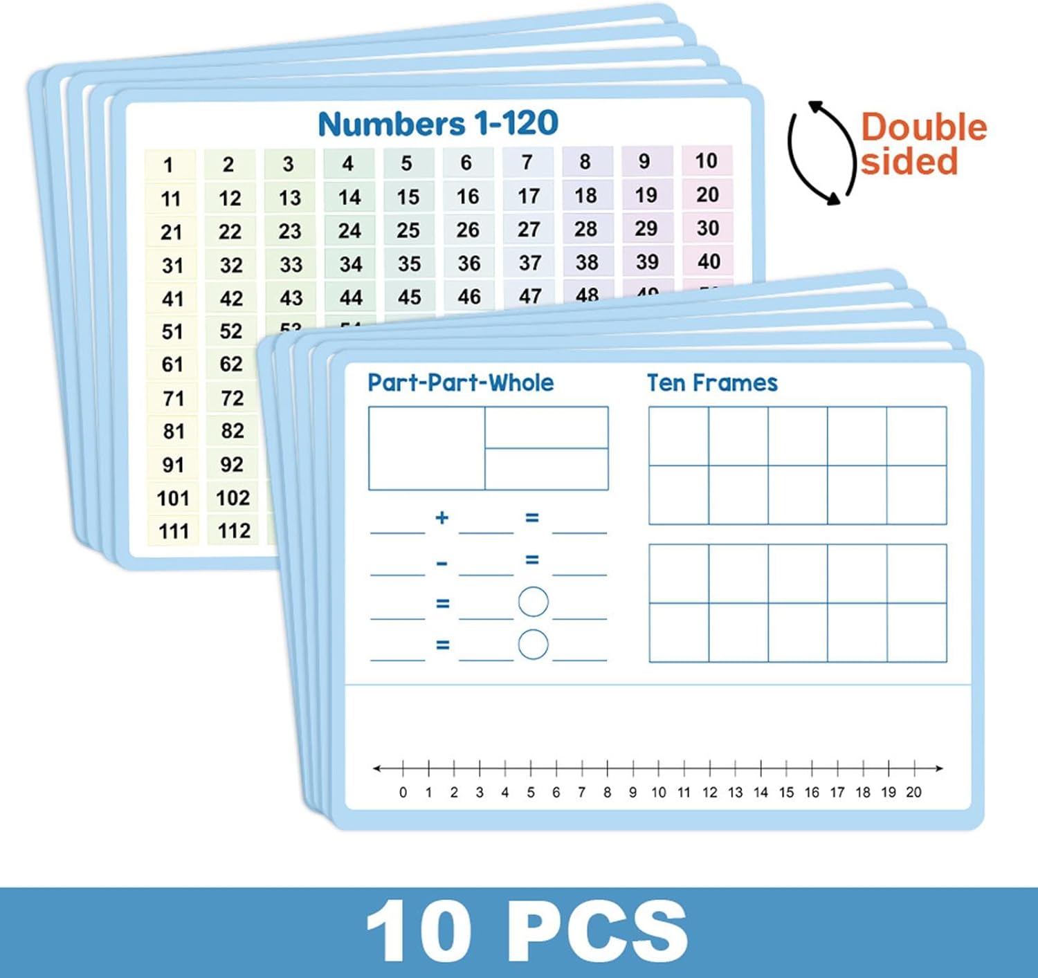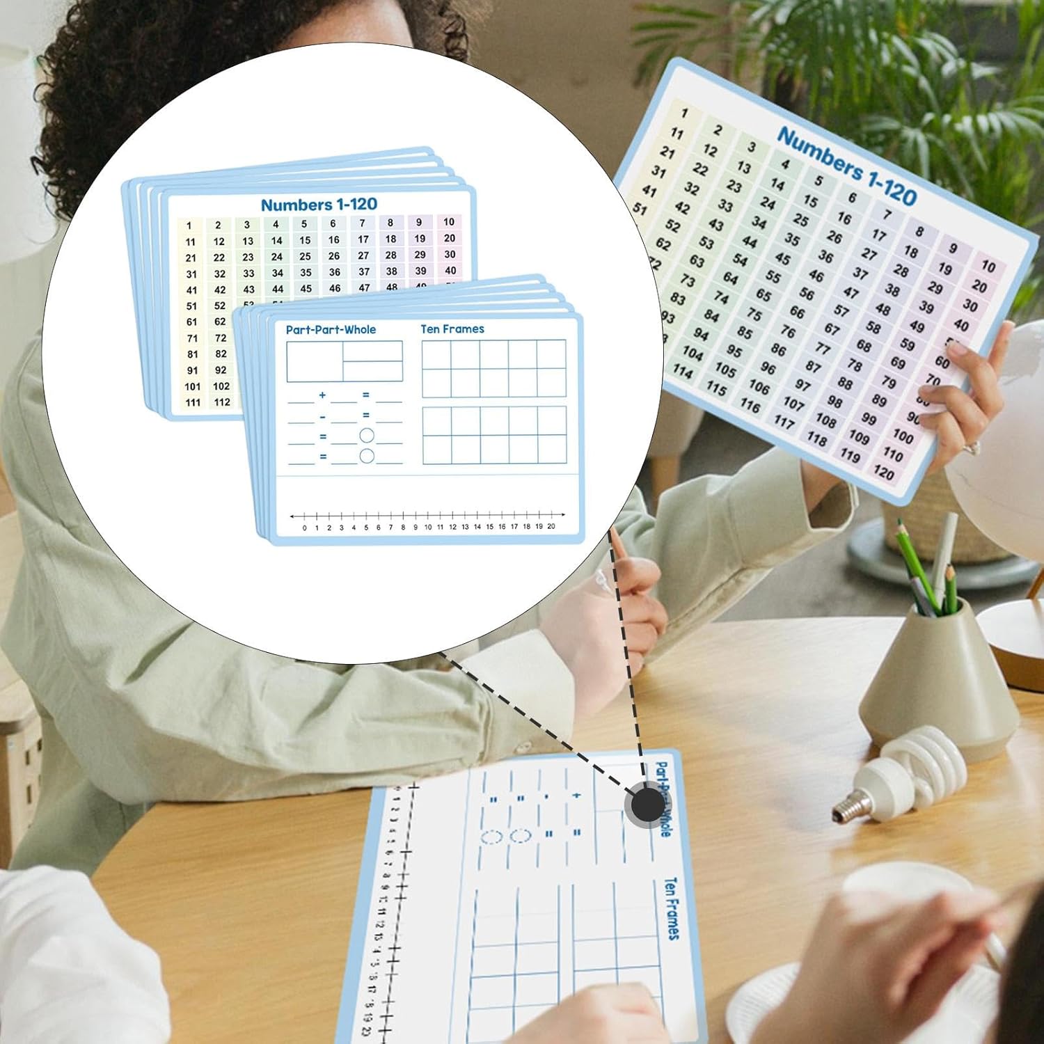 【Design bifacciale】: questa lavagna cancellabile a secco presenta una stampa bifacciale, con un lato che mostra una linea numerica da 0 a 20, tasti numerici e una cornice per i numeri da 1 a 120, mentre l'altro lato mostra una tabella dei numeri da 1 a 120. Questa configurazione consente agli studenti di esercitarsi efficacemente con addizioni e sottrazioni in ampio spazio, migliorando l'apprendimento interattivo. 【Scrittura fluida e cancellazione facile】: Caratterizzata da una superficie liscia e robusta, questa lavagna cancellabile a secco garantisce esperienze di scrittura e cancellazione senza sforzo. Il suo processo di produzione avanzato garantisce un'esperienza senza problemi, mentre il design elegante migliora la leggibilità e riduce al minimo le distrazioni. 【Adatto ai giovani studenti】: Con una dimensione di 28,2 cm x 20,7 cm, questa lavagna matematica cancellabile a secco è pensata per i principianti, per favorire il coinvolgimento nell'apprendimento di gruppo. L'ampia superficie consente di eseguire facilmente addizioni, sottrazioni e confronti numerici, favorendo la collaborazione tra studenti. 【Set completo per l'uso in classe】: ogni confezione include 10 fogli realizzati in materiale cartaceo, il che lo rende una scelta ideale per le aule in cui sono necessarie più lavagne per attività di gruppo o pratica individuale 【Caratteristica】: Queste lavagne matematiche riutilizzabili e cancellabili a secco offrono una soluzione economica consentendo agli studenti di risolvere i problemi su una superficie cancellabile, riducendo significativamente l'utilizzo di carta