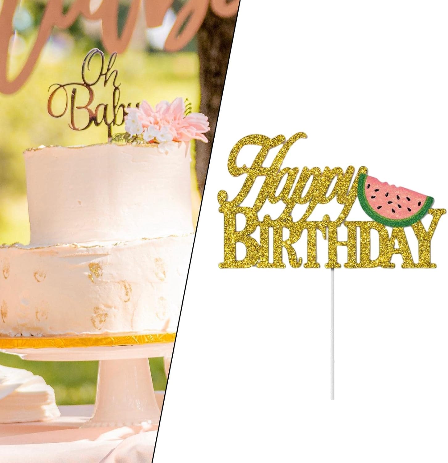 Questo topper per ll'anguria è realizzato con carta glitterata dorata, toppers per torta "". Decorazione luminosa e adorabile per compleanno figlio. topper sono realizzati con carta di qualità, resistente e riutilizzabile, rimangono saldamente sulla torta e rompono facilmente. L'adorabile decorazione per tema anguria è un'ottima fornitura per feste di compleanno , shower, compleanni di ragazzi e ragazze, ecc. L'aspetto scintillante brillare alla luce, attirare l'attenzione degli ospiti e lasciare un ricordo indimenticabile.
