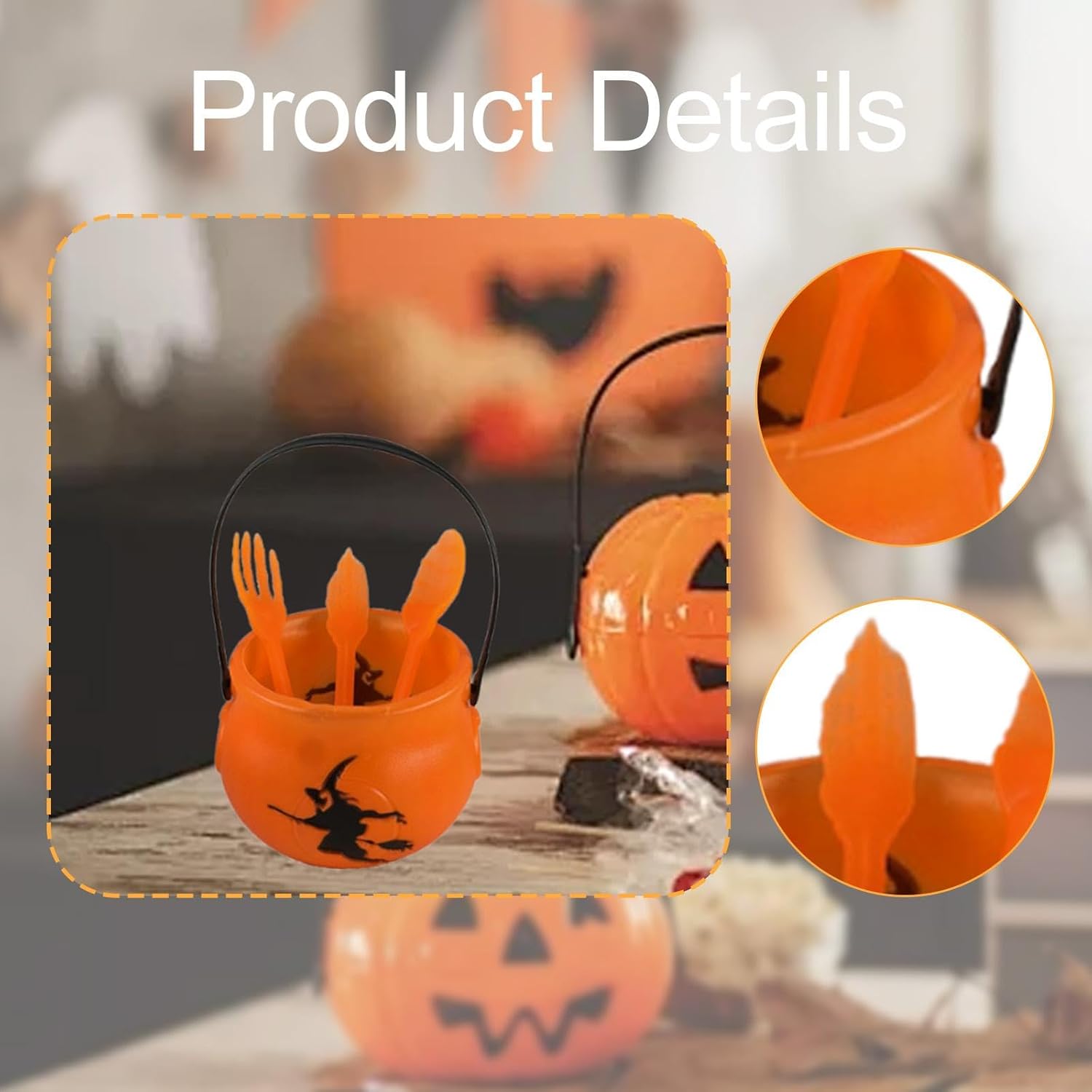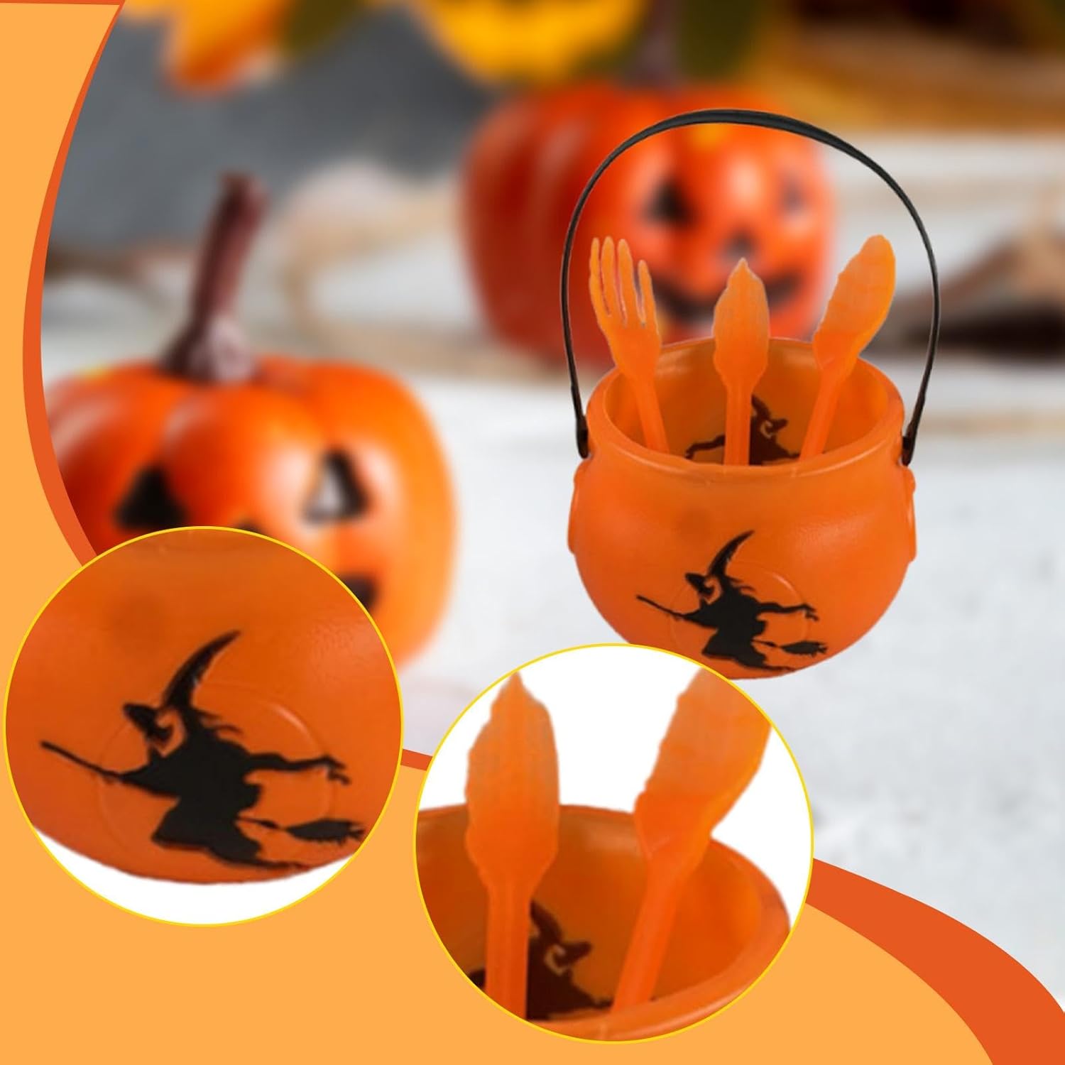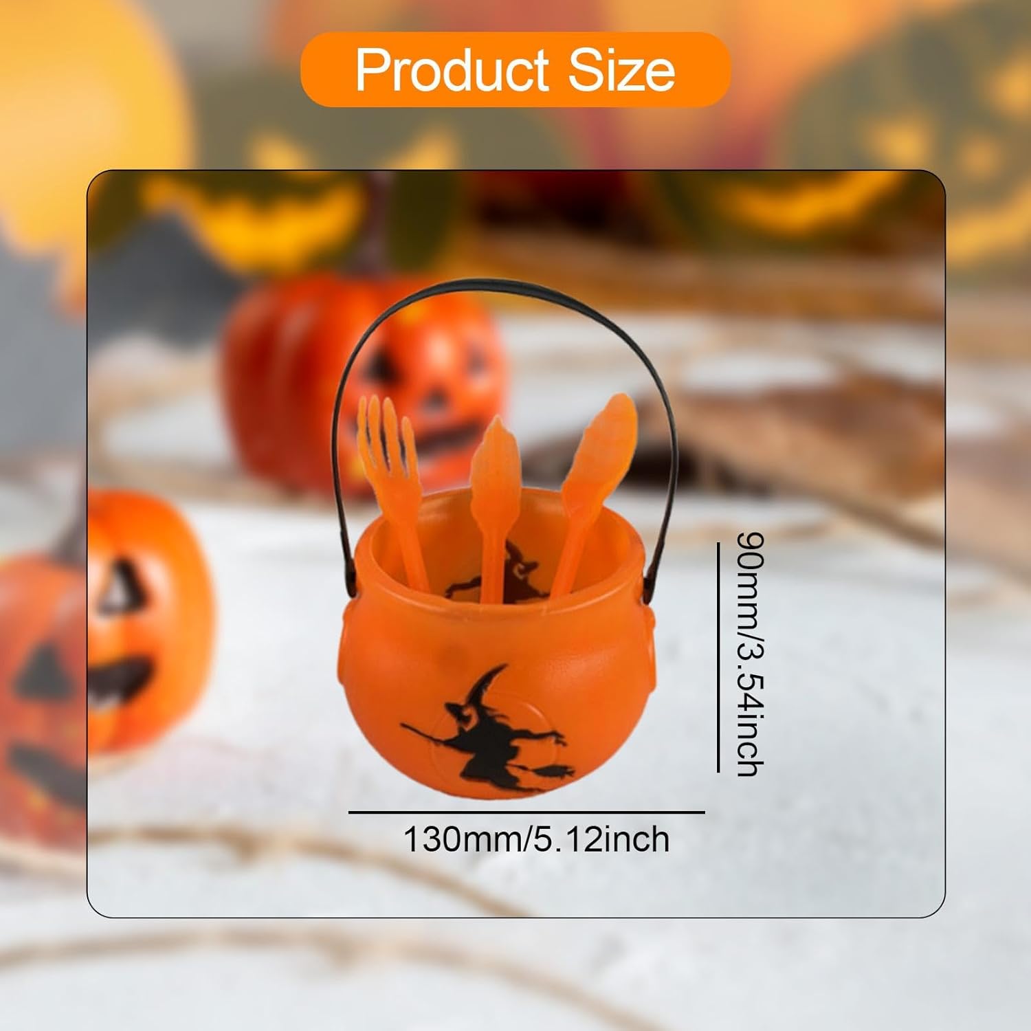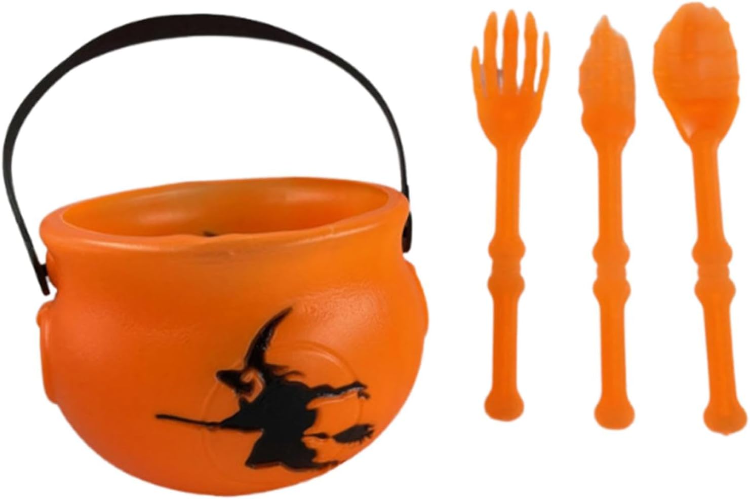 【Design compatto e portatile】: Mini porta caramelle di Halloween con comoda maniglia per un facile trasporto a feste o eventi all'aperto 【Multiuso】: Ideale come secchiello per caramelle per dolcetti o scherzetti, come centrotavola decorativo o per servire snack durante riunioni a tema 【Materiale plastico】: La struttura leggera ma robusta del mini calderone di Halloween sospeso garantisce una manipolazione sicura e un divertimento riutilizzabile per più stagioni di Halloween divertente regalo di Natale per amici o familiari,Set di stoviglie spettrali per Halloween: include un secchio e un set di utensili da 3 pezzi, ideali per aggiungere un tocco spettrale alla tua festa di Halloween.
