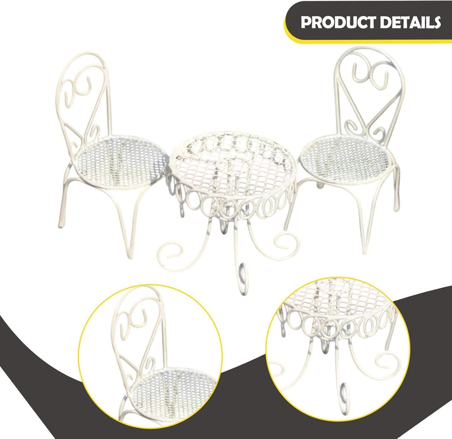 【Ampie applicazioni】: i modelli di case delle bambole 1:12 sono adatti per vari decori di micro paesaggi e decorazioni di scene di case delle bambole, come la cucina, il soggiorno, la camera da letto, , ecc. 【Materiale di alta qualità】: accessori per la mini casa delle bambole sono realizzati in materiale di ferro, hanno una lavorazione raffinata e detta delicati, sono robusti e garantiscono un lungo utilizzo 【Pacchetto incluso】: set di mobili per casa delle bambole in miniatura in 1/12, include 1 mini modello di tavolo e 2 mini modelli di sedia. Tavolo: 8 cm x 8 cm x 7 cm / 3,15 pollici x 3,15 pollici x 2,76 pollici, sedia: 5,5 cm x 5,5 cm x 11 cm / 2,17 pollici x 2,17 pollici x 4,33 pollici 【Ottimi regali】: il mini tavolo e le sedie sono graziosi accessori per la casa delle bambole, oggetti di scena per foto e giocattoli per bambini, sono graziosi oggetti di scena per giochi fantasiosi e ottime scelte regalo 【Accessori per la casa delle bambole】: il semplice ed elegante set di mobili per la casa delle bambole con tavolo e sedia è una bella aggiunta alla decorazione della casa delle bambole e agli oggetti di scena per la fotografia