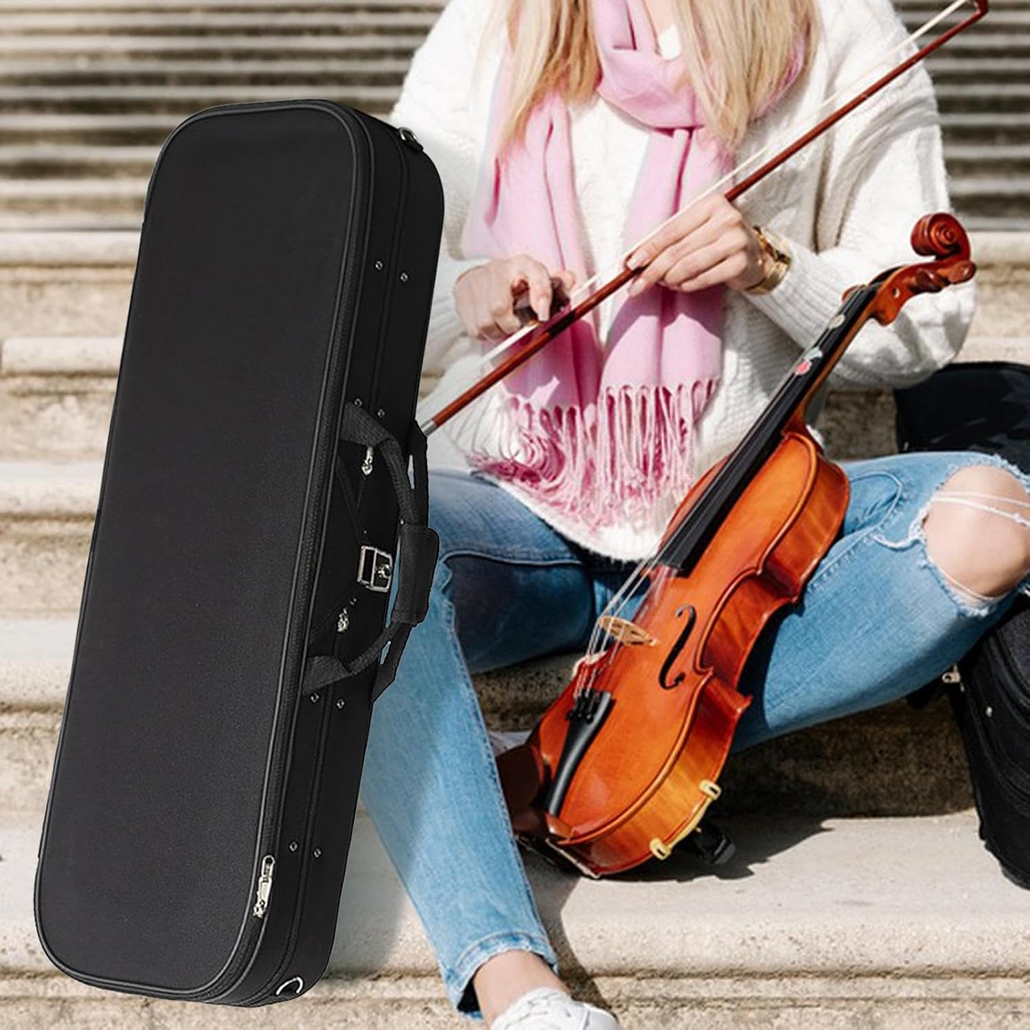 【Portatile】: Custodia per violino, dotata di cerniera liscia, fibbia bloccabile e maniglia per un uso robusto 【MATERIALI】: La custodia per violino è realizzata in robusto tessuto oxford, spugna, materiale di flanella, garantendo un uso e una protezione a lungo termine per il tuo strumento 【PRODOTTO】: Questa è una custodia per violino, adatta per riporre e trasportare il tuo violino in sicurezza Monitors】: La scatola del violino è dotata di un termometro interno, questa custodia ti permette di monitorare la temperatura all'interno della custodia per garantire condizioni ottimali per la conservazione del tuo violino