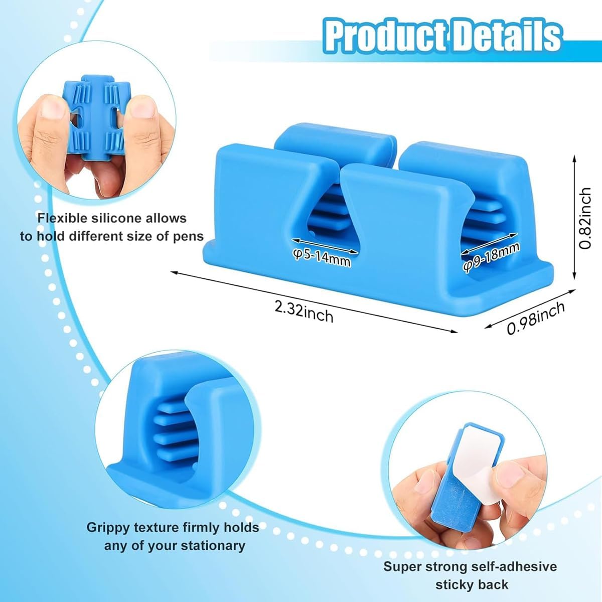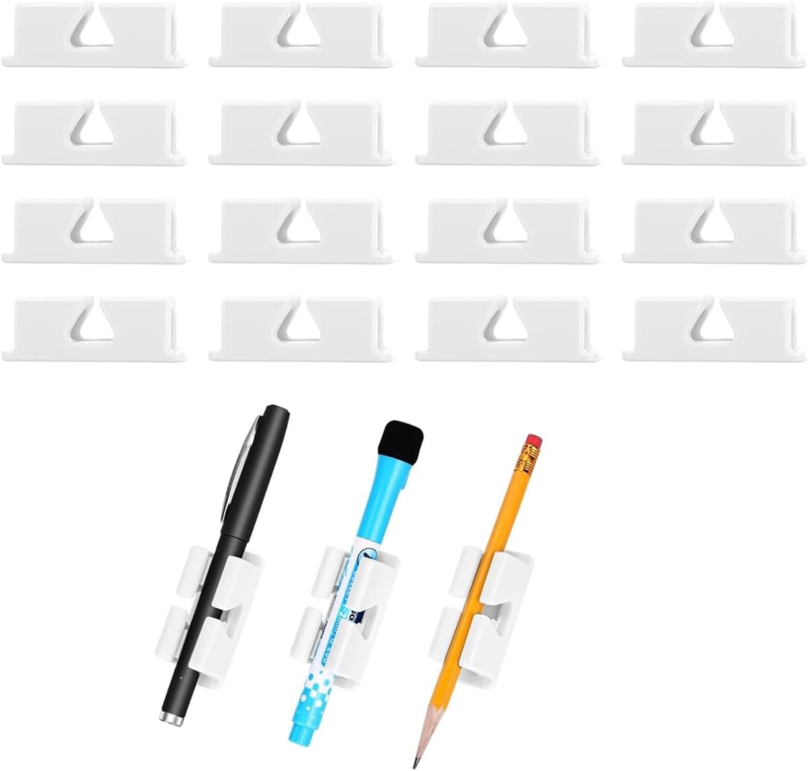[Libero di trovare la tua penna] Questo portapenne può essere facilmente collegato a superfici lisce come scrivanie, frigoriferi, lavagne, cartelle, pareti e computer, consentendoti di utilizzare le penne sempre e ovunque e migliorare l'efficienza del e dello studio [Design a doppio foro migliorato] Il nostro portapenne adesivo è dotato di doppi fori migliorati, fori orizzontali da 5-14 mm per penne più piccole come matite, penne a sfera e stilo elettronici e un foro verticale da 9-18 mm per penne più come i pennarelli. L'interno del portapenne da scrivania è strutturato per fissare saldamente penne di diverse dimensioni [Materiali di alta qualità] I nostri portapenne sono realizzati in silicone resistente, , sicuro per i bambini e flessibile e non si crepano né si attaccano nel tempo. Ogni portapenne da scrivania ha un retro autoadesivo che rimane saldo maggior parte delle superfici porose e non cade affatto si estrae la penna. Inoltre, offriamo 20 super riutilizzabili. [Ampiamente utilizzato] Questi portapenne sono perfetti per scuole, uffici, scrivanie, portablocco, auto, ospedali, ecc. bisogno di una penna! Che tu un insegnante, studente, un autista o un impiegato, questo portapenne può soddisfare le esigenze di tutti. Offre praticità e comfort a vari gruppi di utenti, eliminando il problema di trovare una penna nella vita quotidiana. [Regalo semplice e pratico] piccolo e leggero, facile da trasportare e riporre, sufficiente a soddisfare le tue esigenze. Sono anche regali pratici per insegnanti, compagni di classe, colleghi, amici, medici, infermieri, ecc.