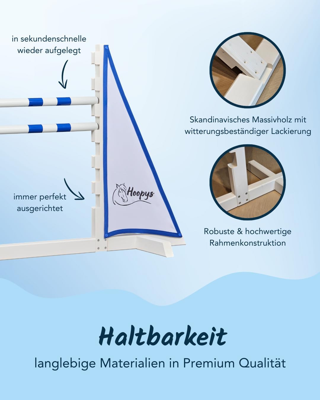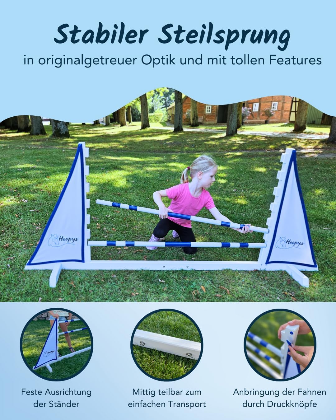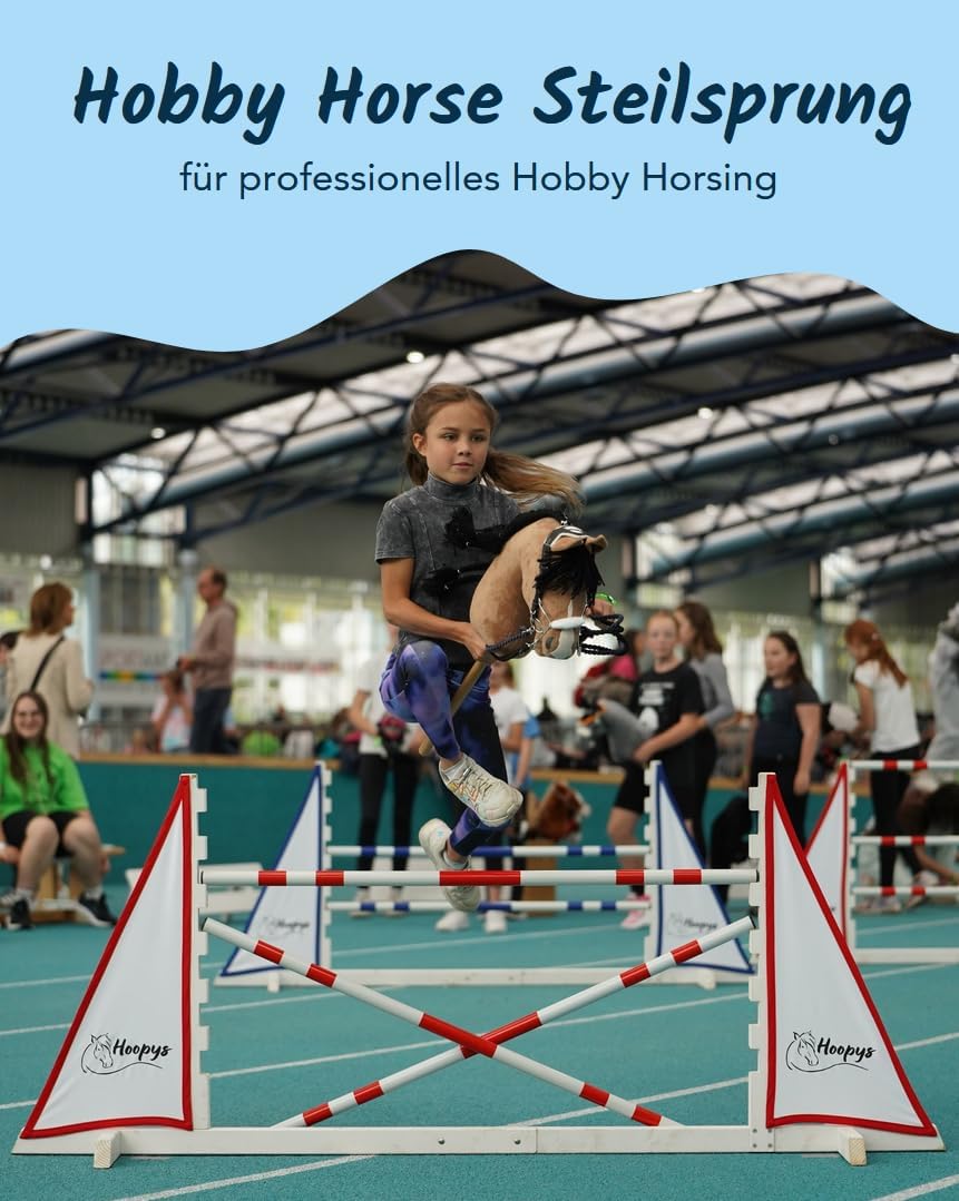 Ostacoli di alta qualità per hobby Horsing in robusto legno massiccio scandinavo. Verniciato resistente alle intemperie per uso esterno tutto l'anno. Massima sicurezza e qualità duratura durante il salto. Per hobby professionale per l'allenamento a cavallo nella sala da equitazione e nel proprio giardino. Versatile accessorio per cavalli hobby secondo le direttive dell'associazione tedesca Hobby Horse (DtHHV) con altezze di salto regolabili tra 20 e 80 cm. Stimola il movimento e la creatività: questo set di ostacoli aiuta i bambini fin dall'età dell'asilo a migliorare la loro forma fisica e rende i giocattoli da giardino ancora più emozionanti! Idea regalo perfetta per i bambini: sorprendi i tuoi bambini con un regalo unico che offre divertimento sicuro sia all'interno che all'esterno, in giardino o nella sala giochi Hobby Horse Ostacoli & Agility Kit: anche come set di agilità per cani, questo ostacolo di salto favorisce la destrezza e la coordinazione – ideale per giovani cavalieri e appassionati di hobby professionisti