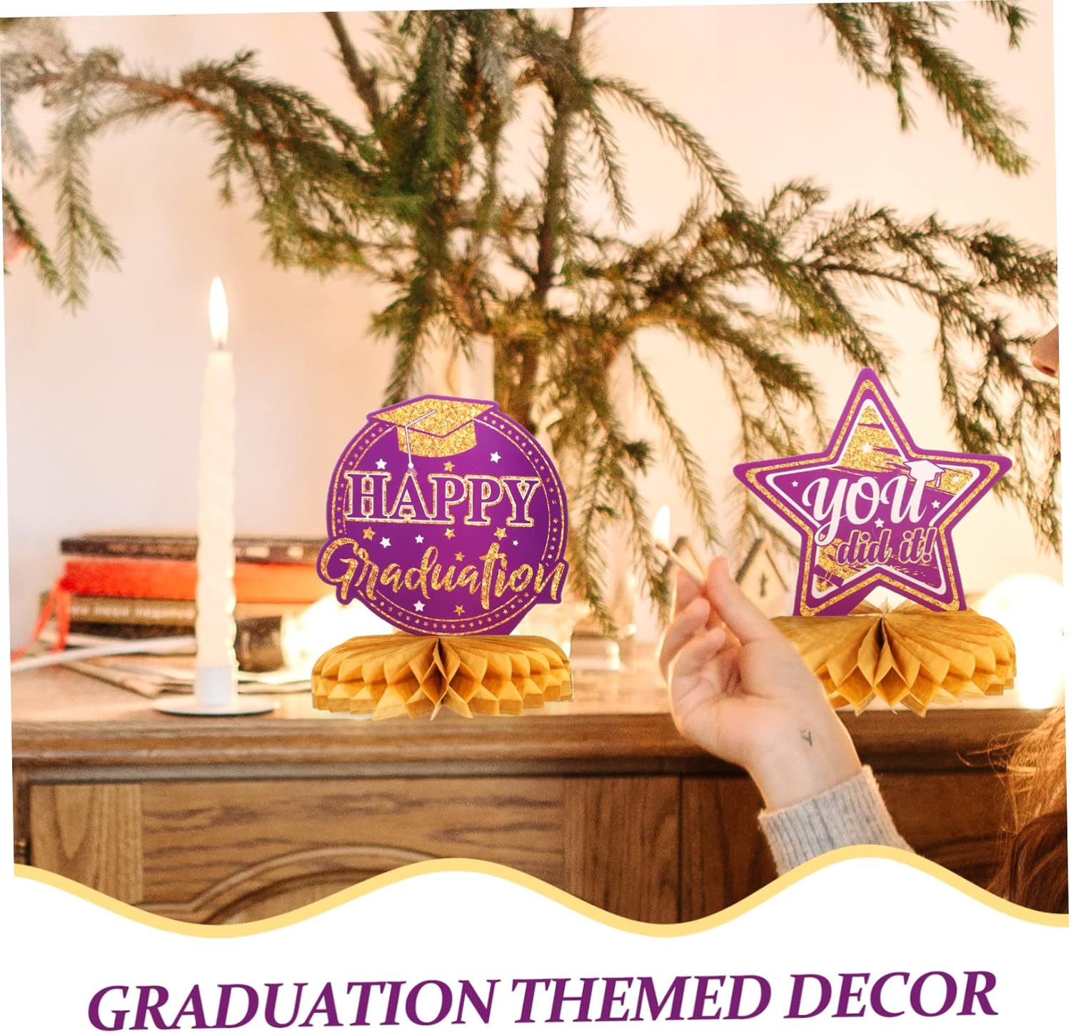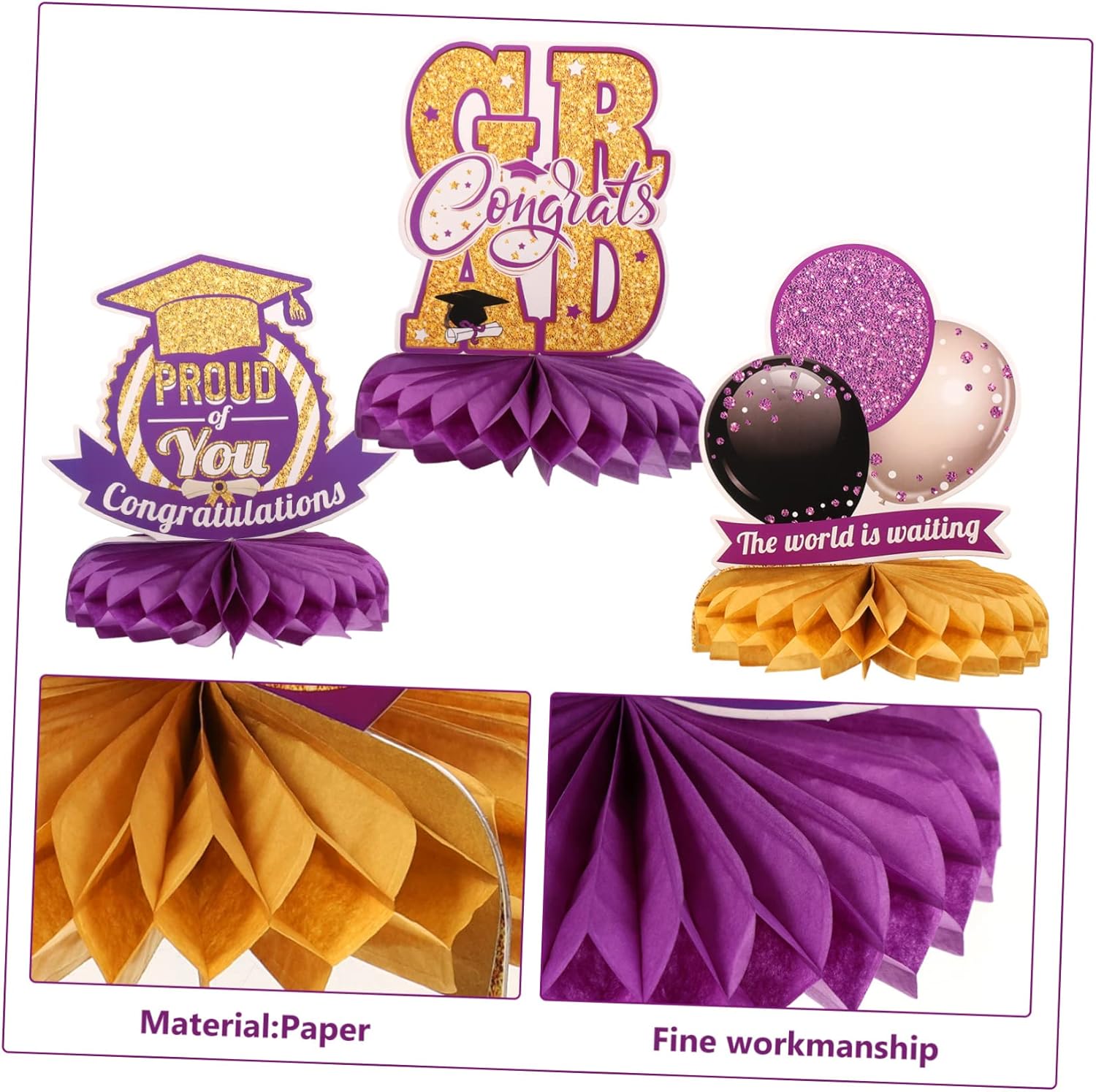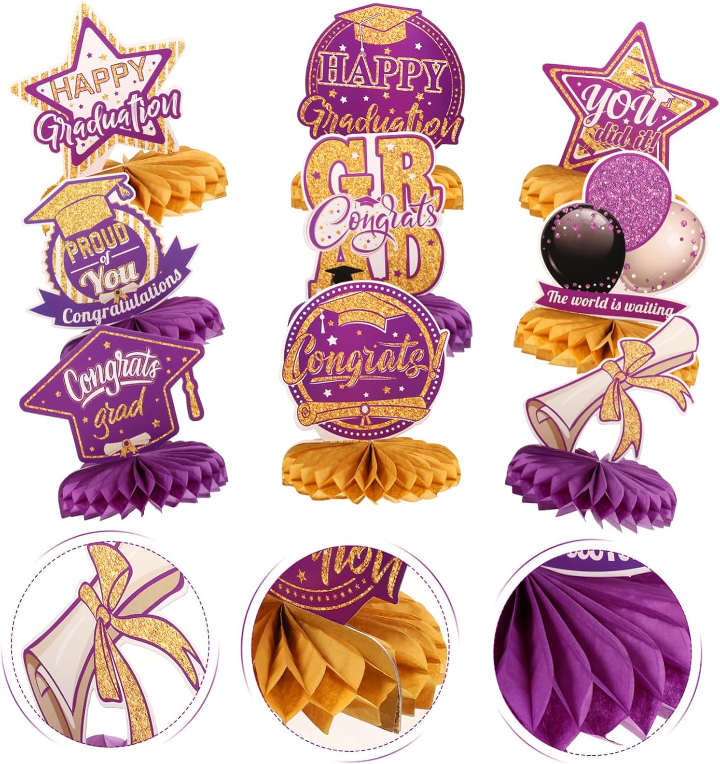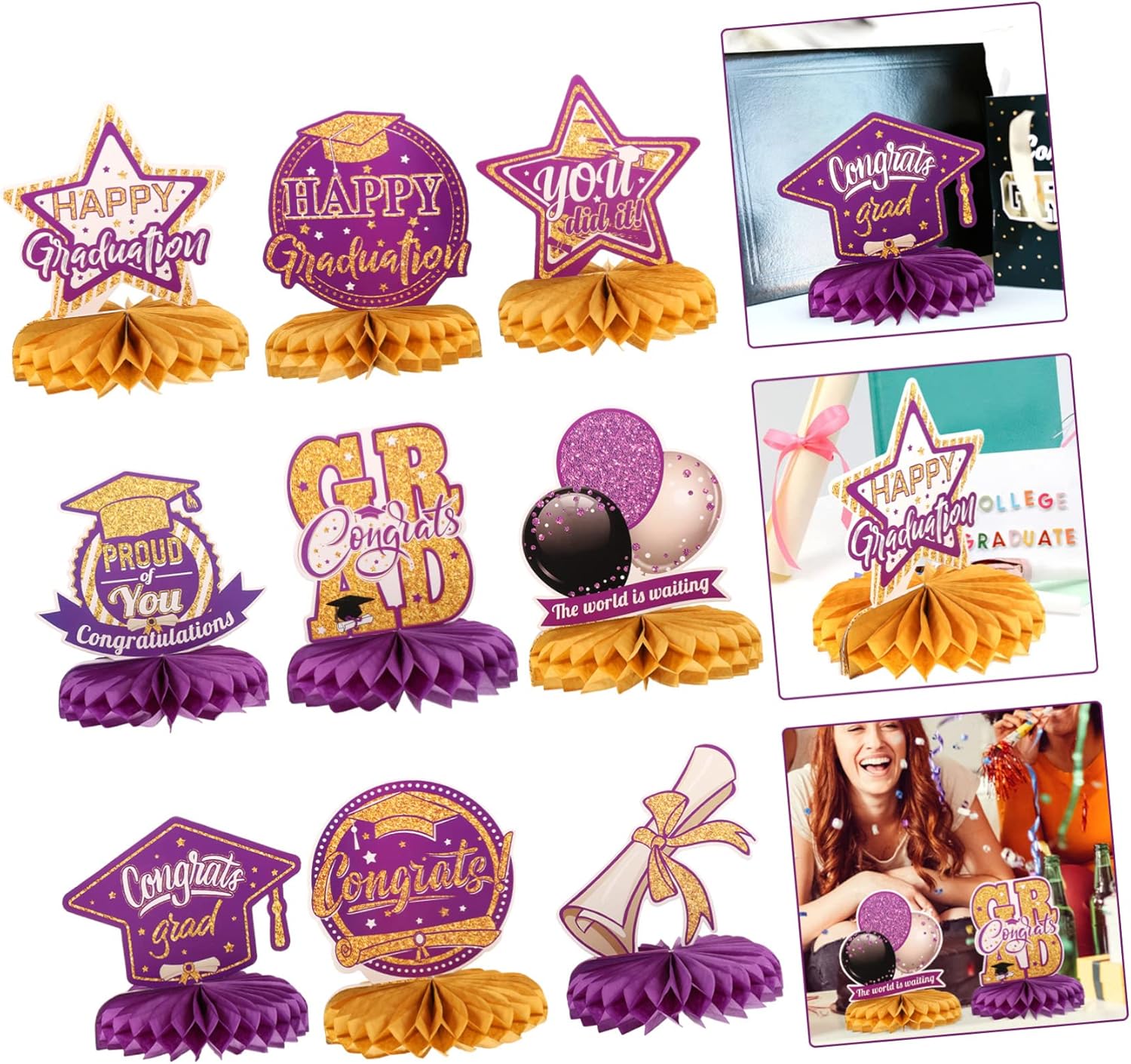 Insegna per tavolo di laurea - motivo a tema laurea e aspetto a nido d'ape, dimensioni ridotte e peso leggero, facile da trasportare e riporre, non occupa spazio, nido d'ape in carta Decorazione per festa di laurea - aggiungi un po' di atmosfera posizionando queste decorazioni a nido d'ape per la festa di laurea al centro del tavolo e queste fantastiche decorazioni di laurea sono abbastanza impressionanti da essere notate, ornamento da scrivania per festa di laurea - questa decorazione è piena di atmosfera allegra, facile da usare, adatta per uso interno o esterno, Decorazioni per feste di laurea 2023 Decorazioni con palline a nido d'ape - il colore e l'aspetto delle decorazioni sono molto nuovi e creativi, particolarmente adatti per il layout della scena dell'atmosfera della festa di laurea, forniture per feste Decorazione per feste con palline a nido d'ape - pregevole fattura, dettagli squisiti, l'arredamento dello sfondo può essere posizionato sulla scrivania, sul camino, ecc., decorazione a nido d'ape di grado