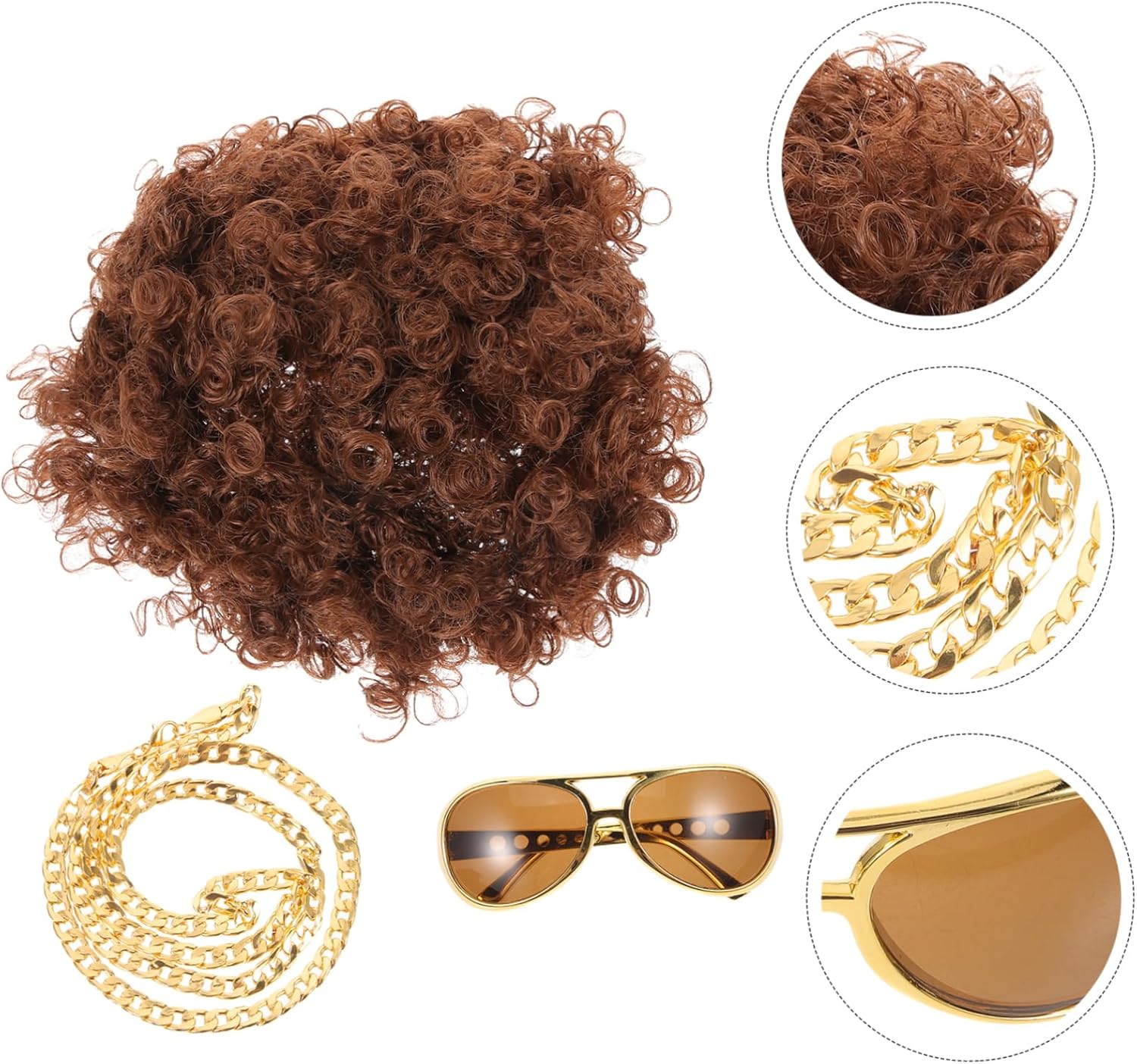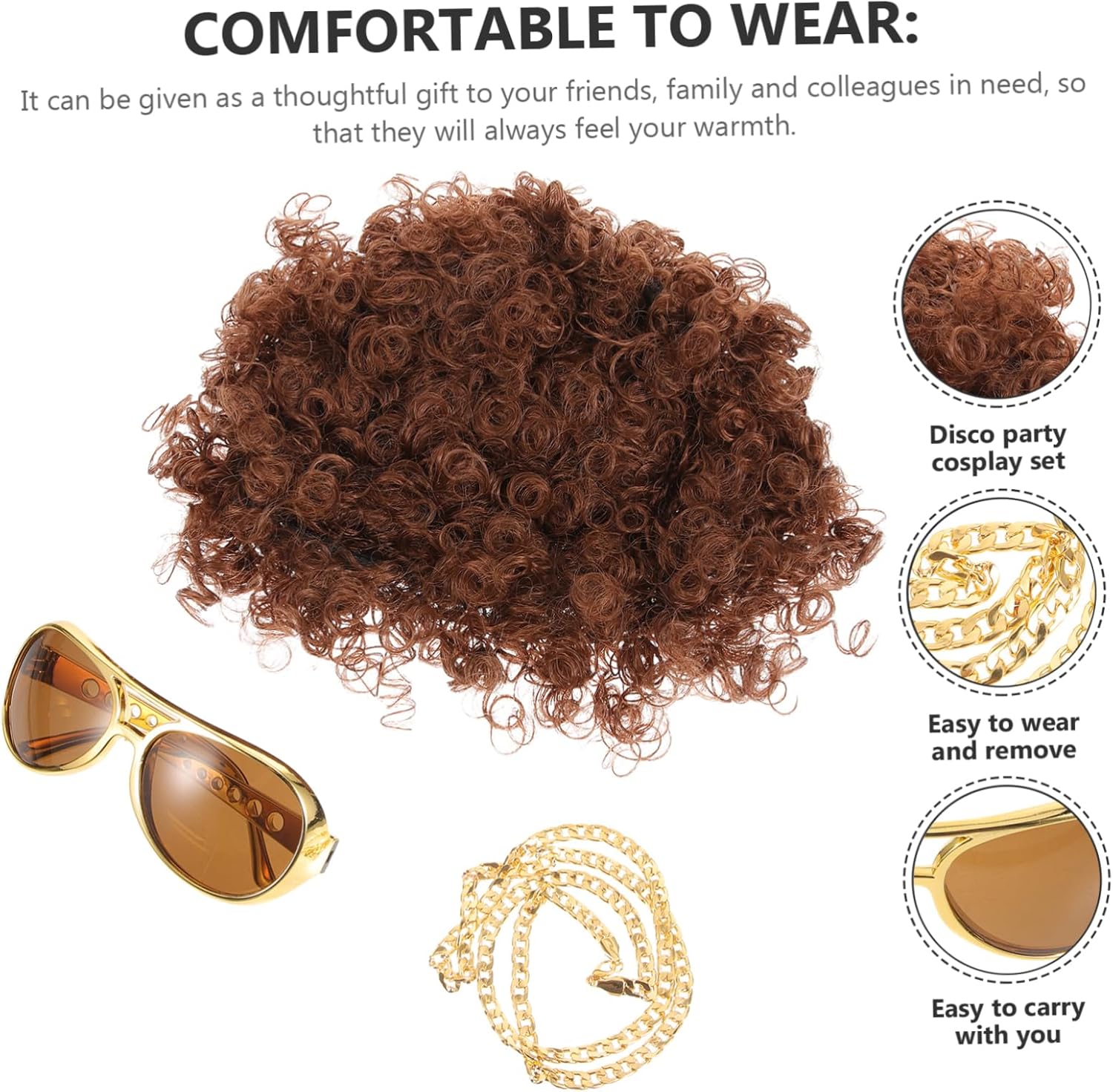 Facile da indossare e rimuovere: la parrucca, gli occhiali e la collana sono facili da indossare e rimuovere, non c'è bisogno di un trucco complicato, costume da festa in discoteca anni '70, parrucche da discoteca per uomo Anni '70 per uomo: leggeri e comodi da indossare, divertenti e creativi, unici ed eleganti, pratici per feste cosplay, parrucche da discoteca anni '70 per uomo Parrucca afro: facile da indossare e da rimuovere, può essere riutilizzata più volte, per rendere la tua festa più divertente e goderti la tua festa divertente, collana in finto oro anni '70 Accessori per costumi da cosplay: il kit per costumi è adatto sia per uomini che per donne, adulti e , per soddisfare le esigenze di diversi gruppi di persone, catena in oro finto anni '70 Ampia di applicazioni: gli accessori anni '70 sono adatti a varie occasioni di festa, come discoteca, feste in maschera, feste di halloween, ecc., collana in oro finto, parrucca da discoteca