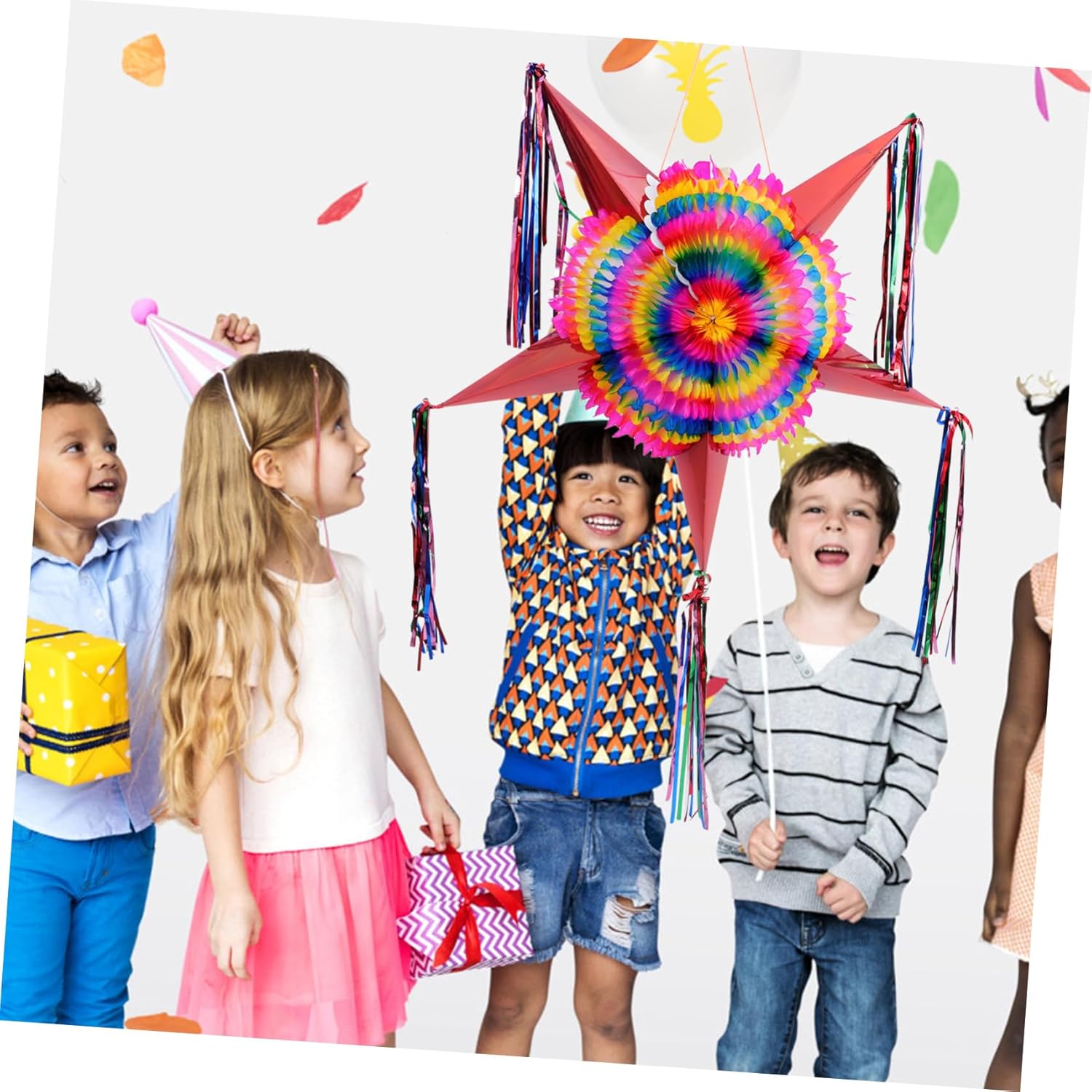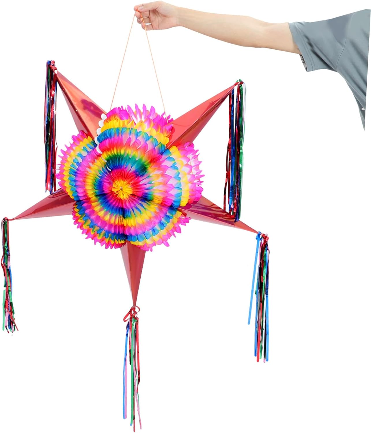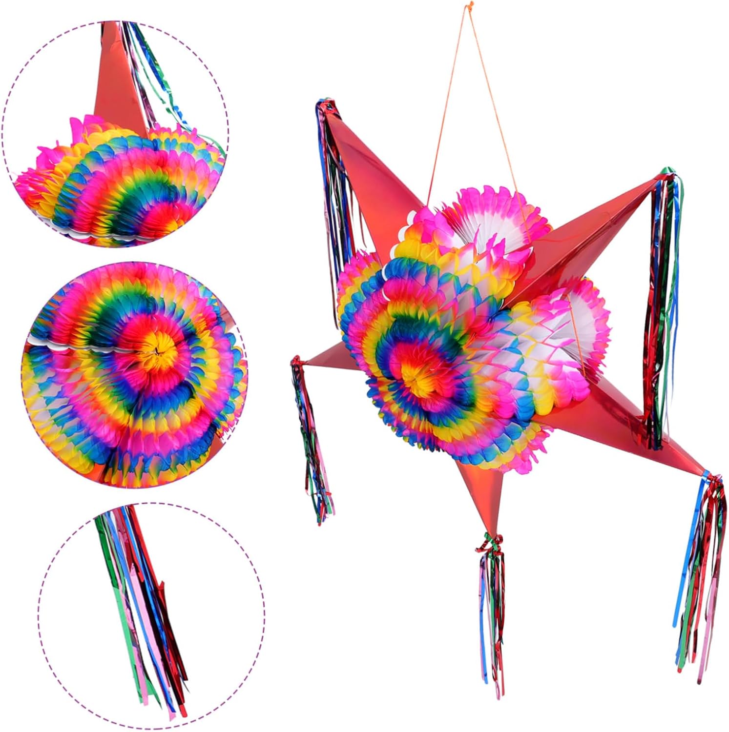 Pignatta di carta per compleanno: questa decorazione per pignatta è accattivante con colori vivaci che sono luminosi come decorazioni per feste e perfetti anche come oggetti di scena per foto, pignatta per festival Pignatta a forma di stella: questa pignatta completerà la festa, la festa a tema, il carnevale, la festa di compleanno, la celebrazione e altro ancora, con decorazioni a forma di stella appese Decorazione della pignatta: presenta un design di forma adorabile, unico e creativo, che attirerà notevolmente l'attenzione delle persone, decorazioni di carta Decorazione di carta: decora la festa o qualsiasi altro luogo come cabina fotografica, aiuta a creare ricordi duraturi, pignatta di compleanno Pignatta per feste: lavorazione eccellente, massima attenzione a ogni dettaglio per conferirle un aspetto divertente e unico, pignatta per feste