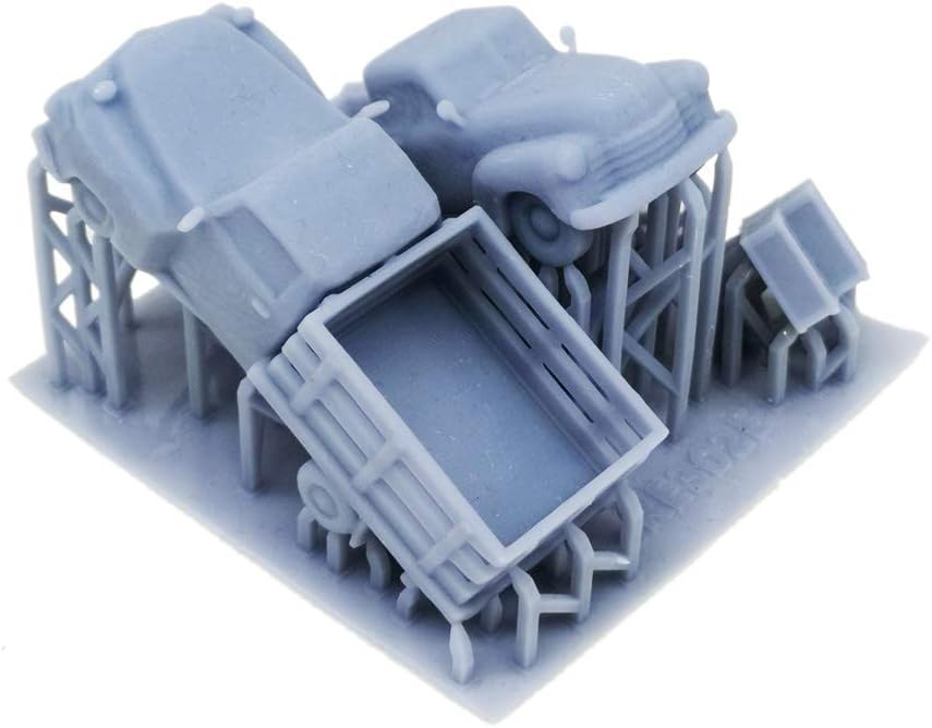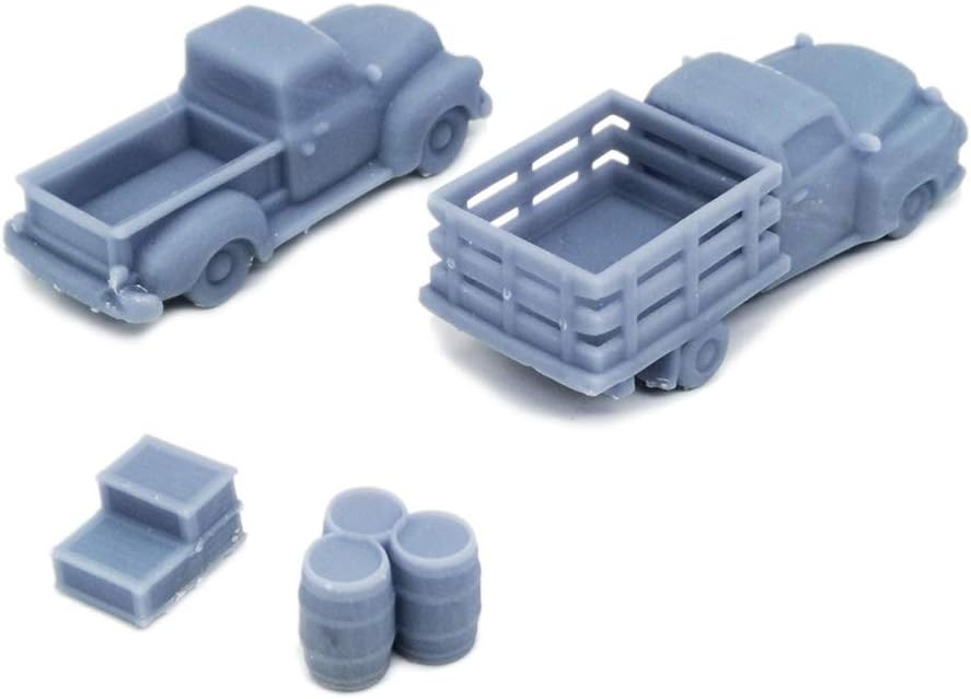 Questo prodotto è creato da una stampante 3D, non è verniciato nel suo colore originale come nella foto, alcune parti potrebbero richiedere il montaggio utilizzando la colla. I motivi di stampa sulla superficie potrebbero essere visibili se si guarda attentamente. Per motivi tecnici e sicuri di trasporto, alcune parti possono avere un foglio molto sottile sotto di esso o una struttura di supporto che si collega ad esso in alcuni punti (si prega di controllare l'ultima immagine), potrebbe essere necessario rimuovere il prodotto con una fresa (come si rimuovono le parti da una canna in un kit modello). Materiali: PLA e resina, scala: scala HO/1:87, dimensioni (camion con recinzione): 64 mm x 27 mm x 22,50 mm (altezza), dimensioni (camion più piccolo): 57 mm x 24,50 mm x 22 mm (altezza) Questo kit comprende: 2 diversi pick-up truck e alcuni accessori come nella foto