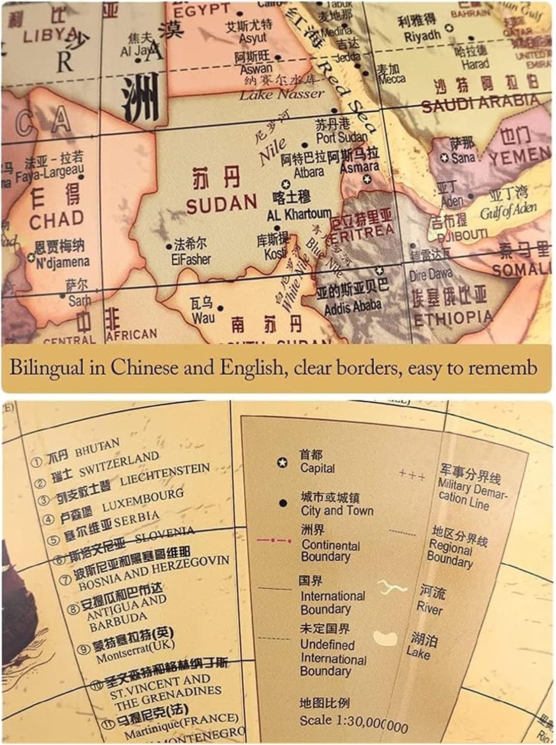 Usa questo globo per espandere i tuoi orizzonti e migliorare la tua comprensione della Terra e della sua geografia! Offre un modo divertente e conveniente per imparare la geografia a casa, in classe o in ufficio. metallo, acciaio inossidabile; Materiale del telaio a sfera: telaio a sfera bimetallico; Materiale base: metallo; Metodo di rotazione: mano. Vengono selezionate sfere cave in acciaio inossidabile di alta qualità, che non si deformeranno dopo un uso a lungo termine. La base in metallo è bella e stabile. Staffa metallica, fissata con viti, non facile da staccare. Il paralume antico e la base in metallo di alta qualità aggiungono classe a qualsiasi stanza. Etichettatura con legenda, etichettatura accurata di vari indicatori e ricco contenuto di conoscenze. Confini chiari, facili da ricordare
