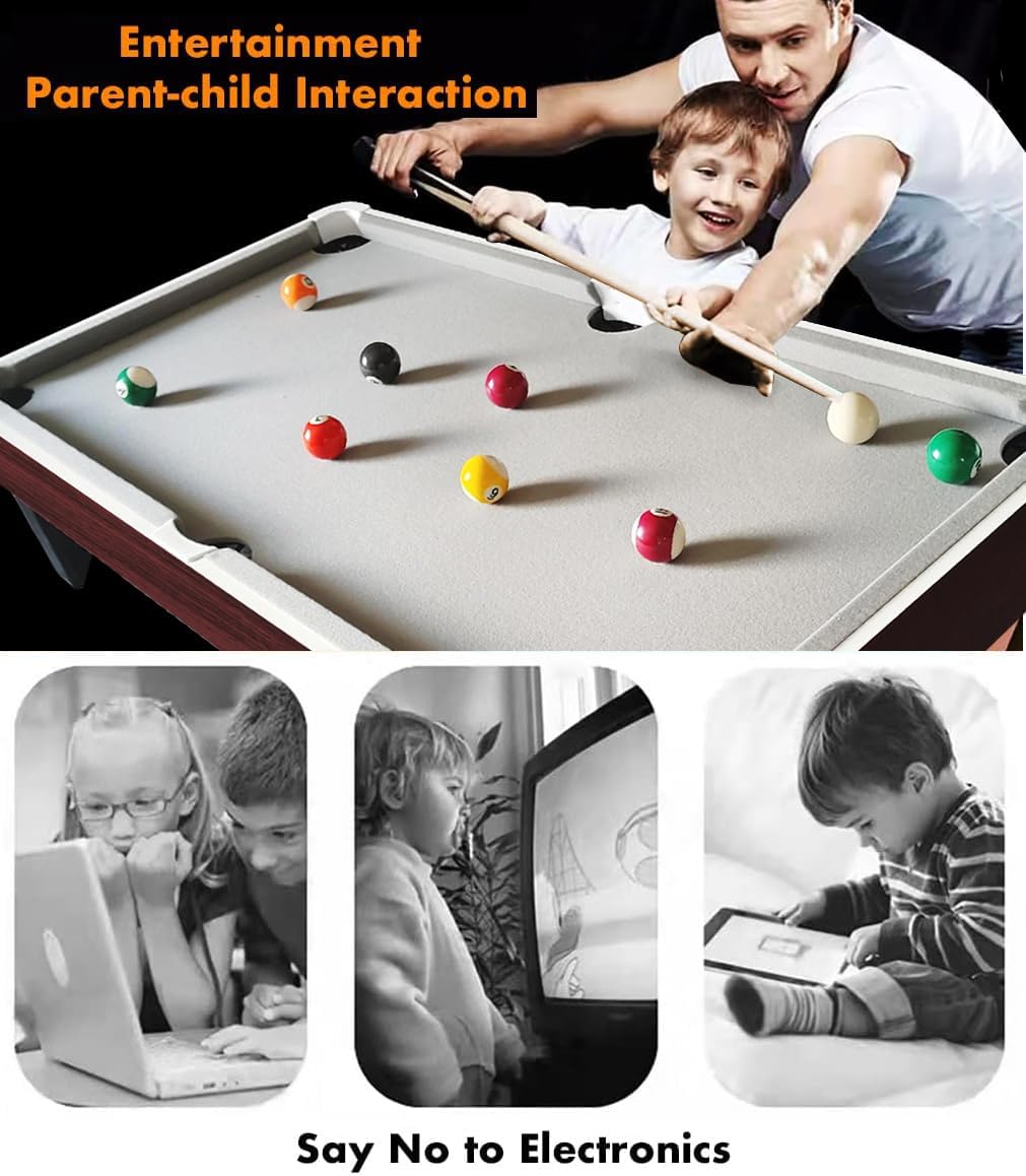 Cosa ottieni: questo tavolo da biliardo viene fornito con un set completo di accessori da biliardo, puoi divertirti per iniziare il gioco. Il nostro mini set da biliardo include 11 palline da biliardo, 1 tavolo da biliardo, 1 treppiede e 2 stecche. Fornendo tutto ciò di cui hai bisogno, puoi giocare con la tua famiglia e i tuoi amici in tutta sicurezza. Giocare a biliardo è uno dei giochi di abilità più popolari e non è solo a casa ma ideale anche per le scuole, ma offre anche la distrazione perfetta durante una festa o nei lounge. Materiali di alta qualità: questo set da gioco da biliardo da tavolo è realizzato in plastica ispessita e l'intero tavolo è solido e resistente. Palle da biliardo in resina di alta qualità con lavorazione squisita. Stecca simulata con stampaggio in un unico pezzo e impugnatura comoda. Ti offre un'esperienza di gioco migliore e più realistica