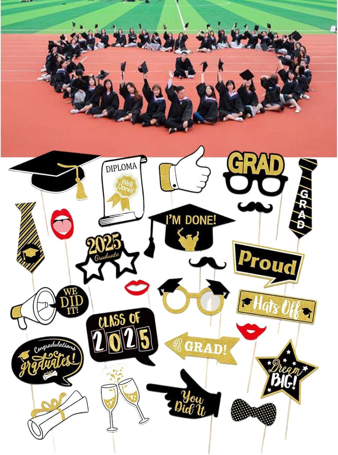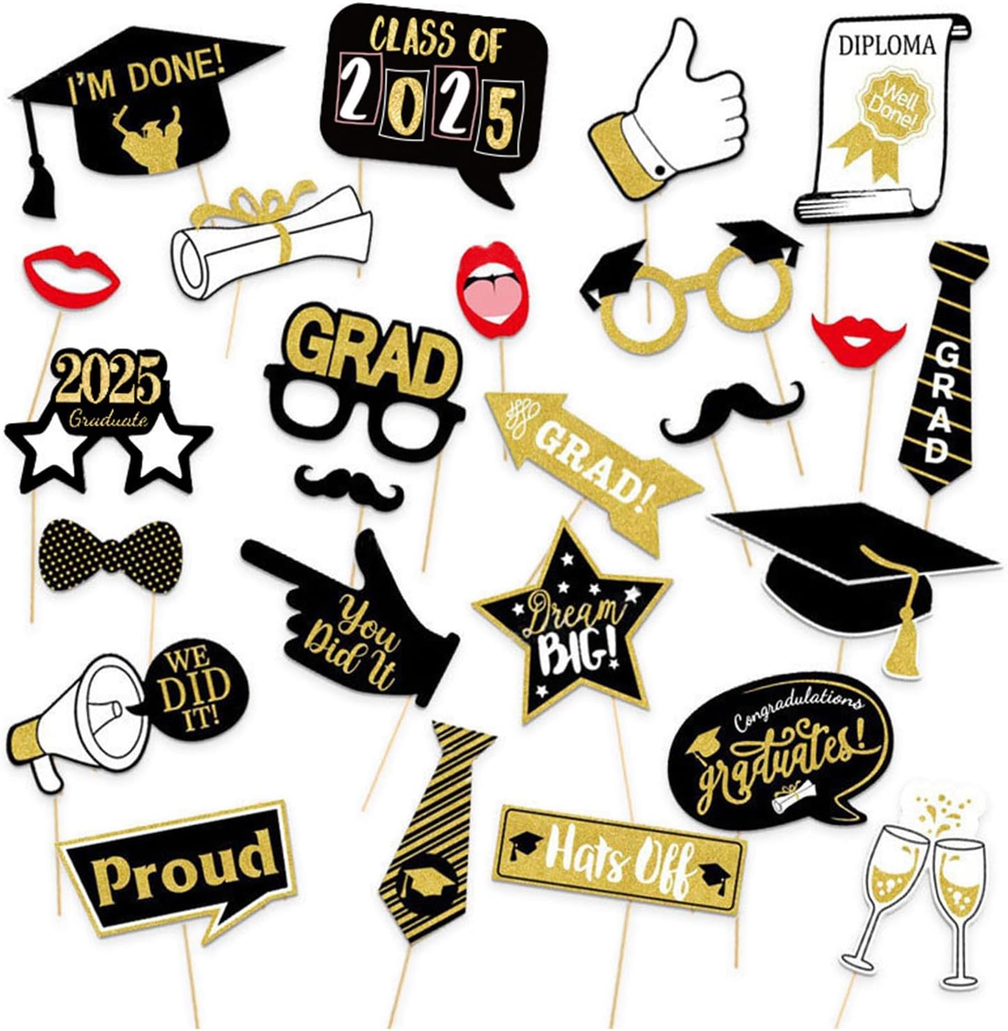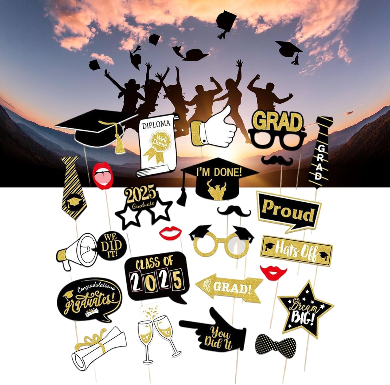 Celebra classe 2025 laurea con questo cartello cartaceo, progettato come centrotavola e regali festa laurea unici memorabile decorazione da tavolo Elevando le feste laurea, oggetti scena fotografici o i centrotavola per tavoli da pranzo con questi accessori fotografici che raddoppiano come decorazione per festa mentre catturano memoria del successo accademico Ogni pezzo stravagante in questa collezione a tema incoraggia l'espressione creativa e funge da doni laurea, ottimo per costruzione cameratismo festival Gathering Adatto per 2025 laureato, famiglia e cercano festa essenziale, migliorando le foto gruppo e momento pieno risate durante le celebrazioni della laurea Realizzato in carta, questo set include 25 tipi spettacoli fotografici divertenti come cappello da laurea, microfoni giocattoli, bicchiere vino, cravatta e occhiali per occhiali per opportunità fotografiche dinamiche