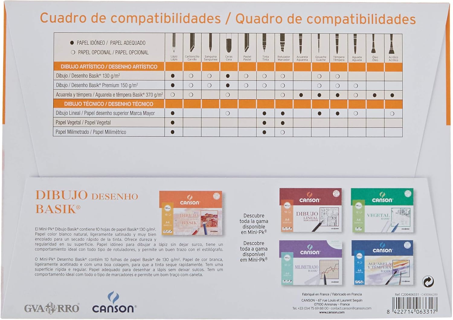 | Componenti inclusi | Confezione da 10 fogli da disegno Basik Smooth 130 gr |