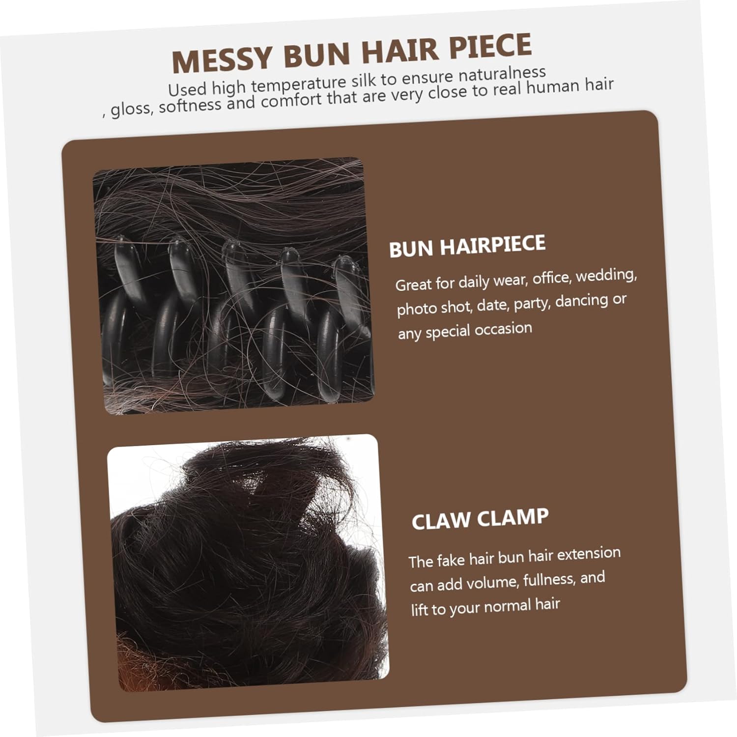 include 2 x ciocche per Caratteristiche -Materiale: extension per chignon in -Informazioni prodotto: con orecchie - Dimensioni: 8,00X8,00X4,50 cm/3,14X3,14X1,77 pollici chignon finto - Colore: Chignon per -La con chignon è dotata clip a artiglio, facile indossare e togliere. -Utilizzo materiali, lucentezza, morbidezza e comfort simili veri umani dei per . - L'estensione per chignon finto può aggiungere volume e aiutarti a realizzare un'acconciatura con chignon. -Usalo per la acconciatura, all'istante nuova e straordinaria acconciatura per , ragazze e signore con extension a clip. - per l'uso , , per matrimoni, fotografici, appuntamenti, feste, balli o qualsiasi occasione speciale. Chignon Descrizione della merce Fermagli per chignon Questo fermaglio per chignon è facile e sicuro usare per la maggior parte delle persone, progettato con clip a artiglio per un utilizzo e . I fermagli per chignon offrono un fissaggio sicuro ma per l'uso . Fermaglio per con orecchie finto chignon è facile e usare