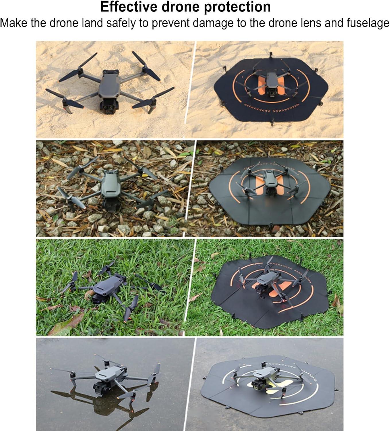 [Materiale in pelle] Realizzato in pelle a doppia faccia, questo tampone di atterraggio è impermeabile, a prova di usura e facile pulire, ideale per l'uso esterno. [ di fissaggio in silicone] presenta un forte di fissaggio in silicone per garantire atterraggi sicuri, proteggere il drone dai danni. [Unghie macinate] include unghie macinate per un posizionamento sicuro in vari ambienti esterni, come spiagge, foreste o erba alta. [Più applicazioni] compatibili con la maggior parte dei droni medi a medio, fornendo un'area di atterraggio di 80 cm, perfetta per serie , Phantom, e Mini. [Pieghevole e portatile] viene fornito con un sacco di stoccaggio compatto, si ripiega facilmente per il trasporto, rendendolo conveniente per i germogli esterni.