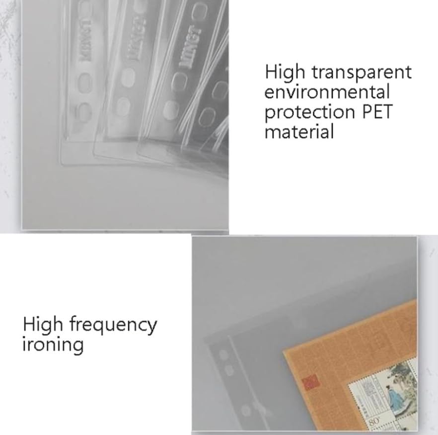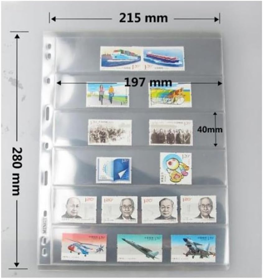 ★Questo prodotto vende solo le pagine interne, esclusi album filatelici e francobolli. I francobolli sono solo per la visualizzazione. ★Fogli sciolti standard a nove fori, pagine interne a 6 righe, adatte per piccoli francobolli. ★ Materiale PET ecologico, pressatura a caldo ad alta frequenza, elevata trasparenza, elevata durezza, durevole e facile da riporre. ★ Pagine interne su un lato, 20 pagine. ★ Stoccaggio centrale, antipolvere, antiinquinamento, migliore protezione dei francobolli.