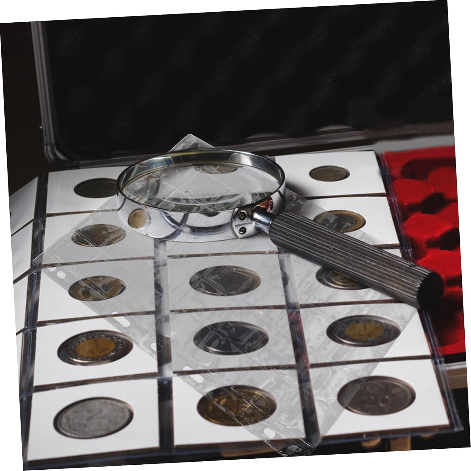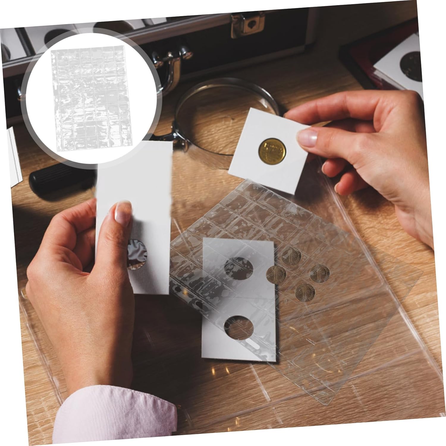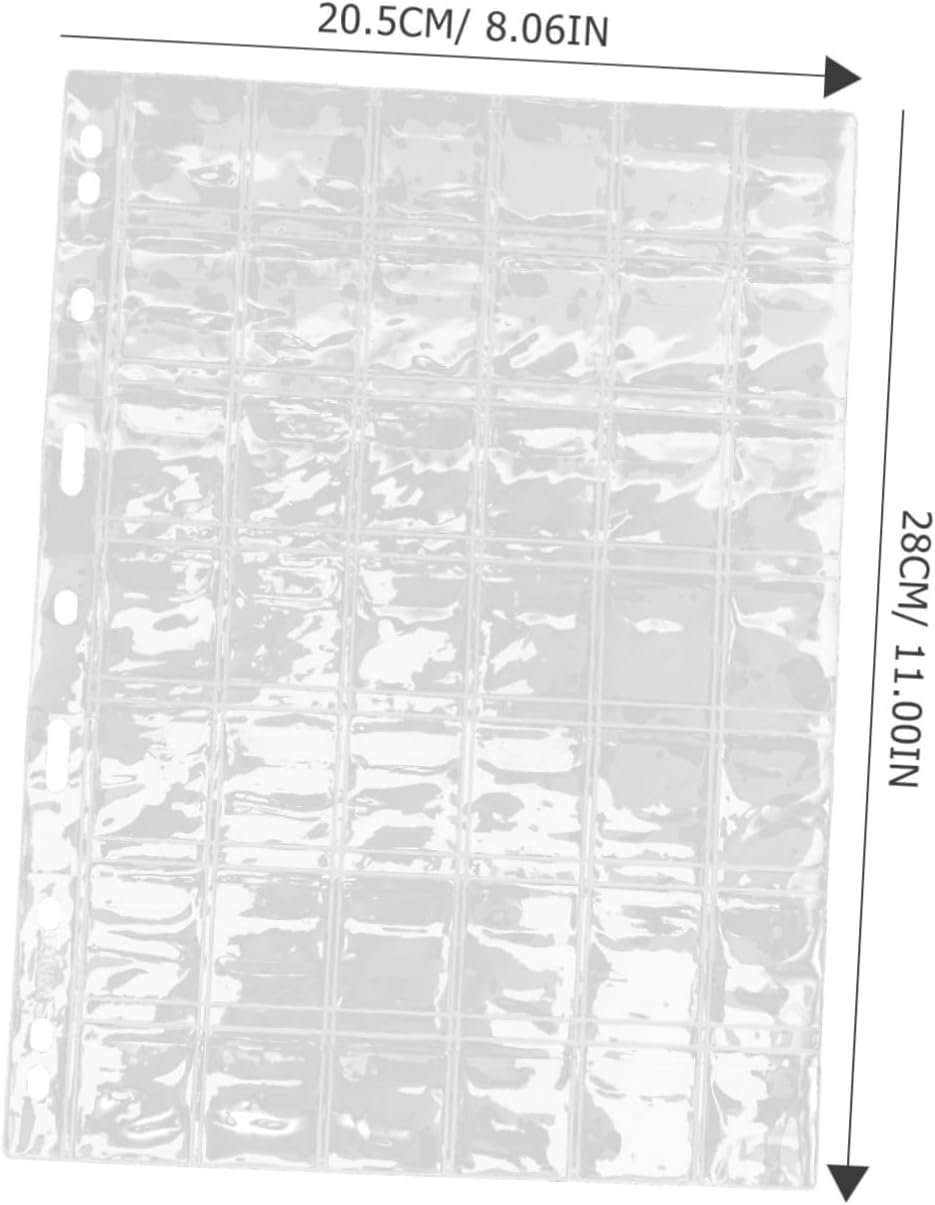 Soluzione di archiviazione versatile: perfettamente progettata per organizzare monete, francobolli, medaglioni e badge, garantendo che tutte le tue collezioni siano sicure e visivamente accattivanti. Materiale di alta qualità: realizzate in PVC, queste pagine di ricarica per album sono leggere e progettate per un uso duraturo senza compromettere la visibilità. Design pratico: ogni foglio dispone di 42 mini tasche per un facile posizionamento e un rapido accesso alle tue collezioni, rendendo l'organizzazione un gioco da ragazzi. Facile visualizzazione: il design trasparente di queste pagine per monete consente una facile visualizzazione o scambio di monete e francobolli, migliorando la tua esperienza di raccolta. Portatile e pratico: la struttura leggera rende facile trasportare le tue collezioni ovunque tu vada, un regalo ideale per collezionisti e appassionati.