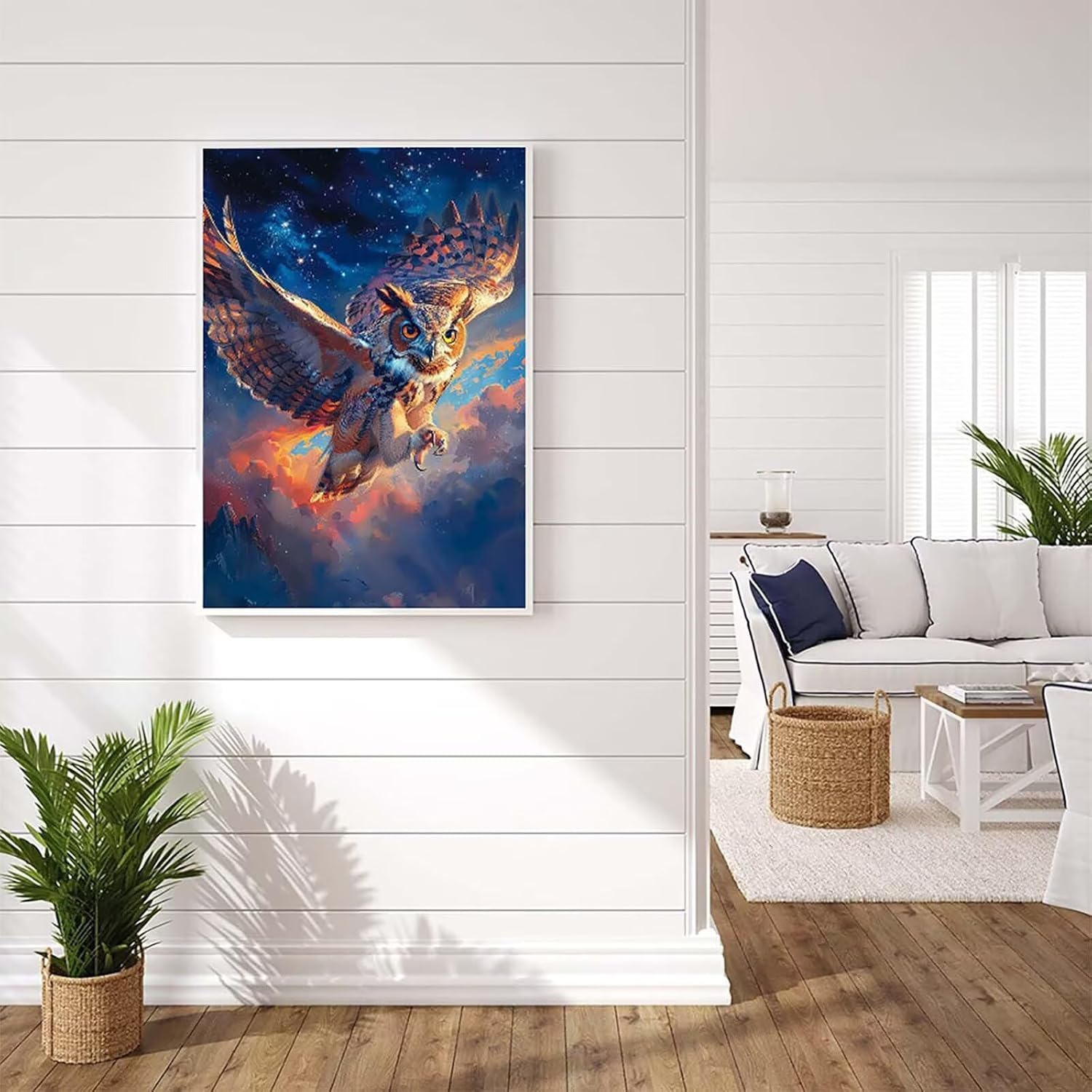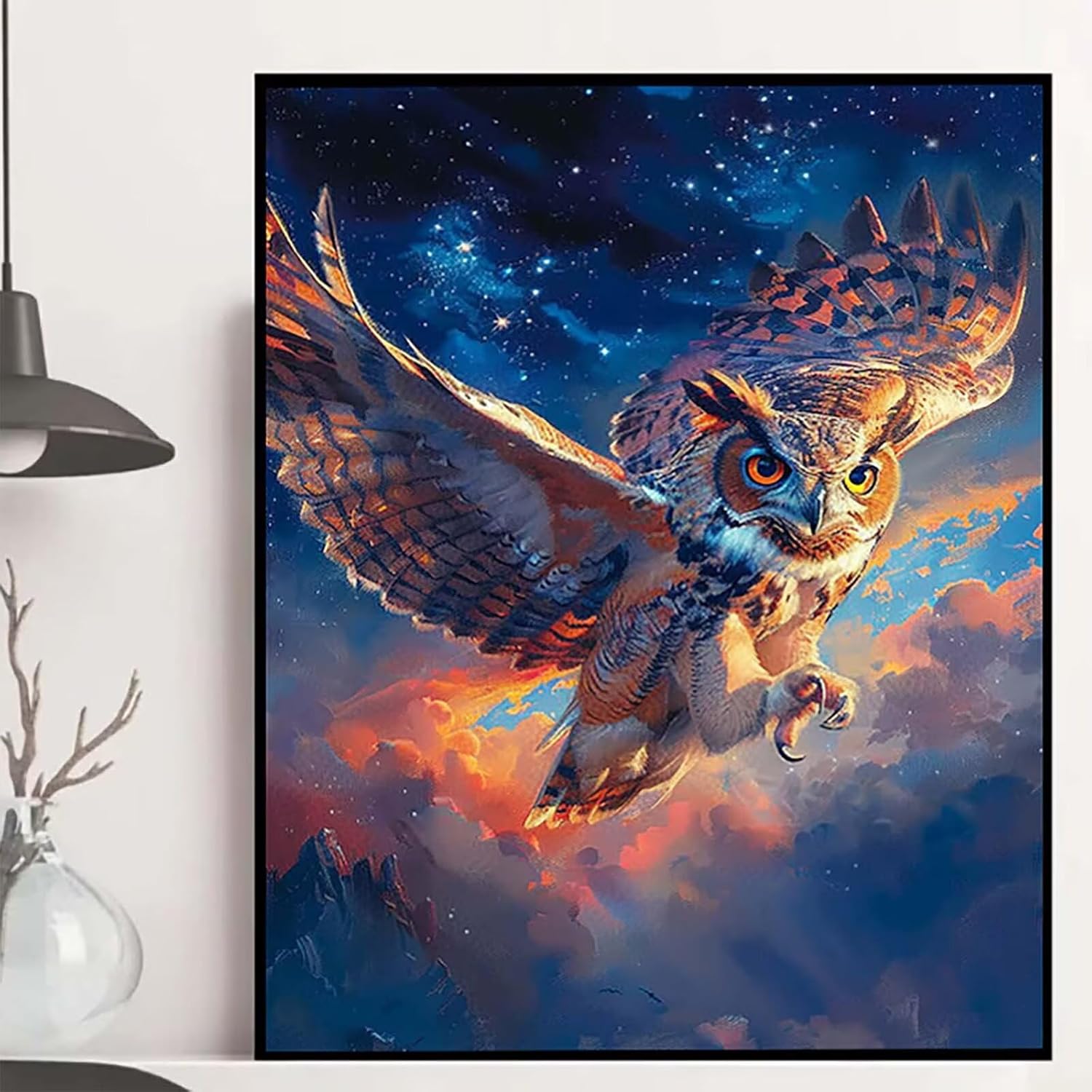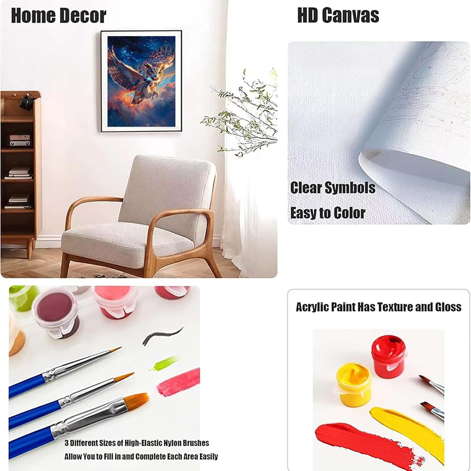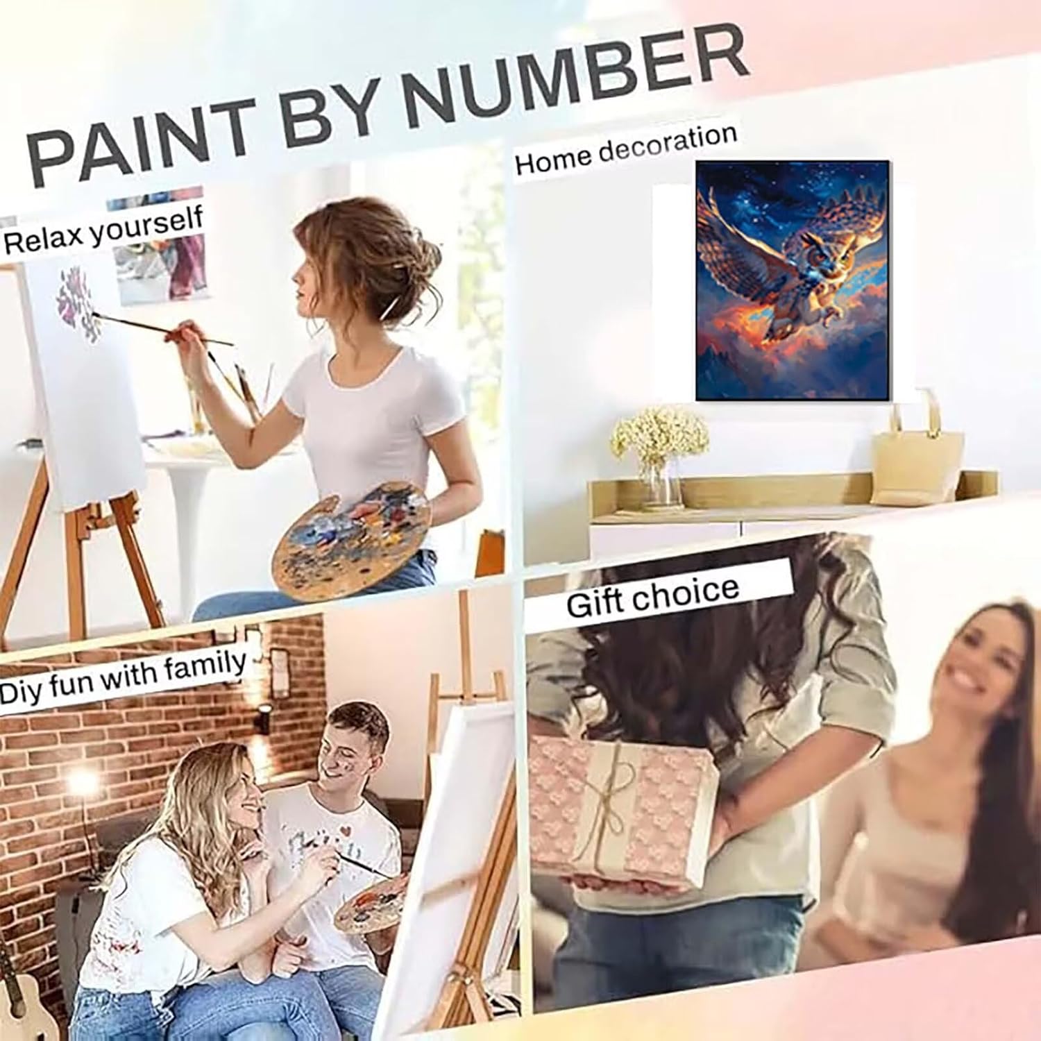 Paint by Numbers Gufo Dipingere con i Numeri Cielo Dipingere con i Numeri Adulti con 3 Pennelli e Vernice Acrilica e Tela Antipiega Crea Art per Decorazioni Parete, Regalo Donna 70 x 95cm -252gH6