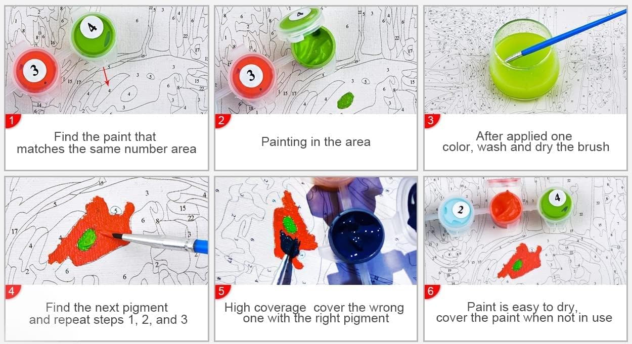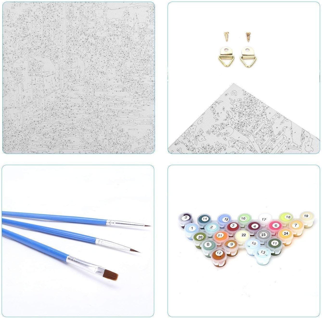 Kit di pittura con i numeri: include una scatola regalo con 1 tela artistica testurizzata prestampata (senza cornice), 1 set di colori acrilici, di grandi dimensioni con più set di colori acrilici di pennelli, 1 set di pennelli (include 3 pezzi). Caratteristiche del prodotto: Dipingi con i numeri per adulti e bambini, la pittura con i numeri offre un modo divertente per chiunque di essere coinvolto nelle arti, l'obiettivo è divertirsi a dipingere e rilassarsi. Come fare: devi abbinare i numeri per colore, finire uno per uno la vernice e le figure sulla tela per riempire la vernice. crea capolavori Puoi essere un artista unico per Regalo ideale - È perfetto per la decorazione della casa, regalo squisito per Natale, Ringraziamento, compleanno e premi di concorso, Per altre scelte di pittura a olio, cerca "(Dxoaoocc) Dipingi con i numeri" Servizio post-vendita - Siamo certi che apprezzerai davvero questo capolavoro su tela dipinto con i numeri. Dopo aver ricevuto il prodotto, se hai domande su Dipingi con i numeri, contattaci e inviaci un'e-mail su Amazon. Risponderemo al tuo messaggio e risolveremo il.