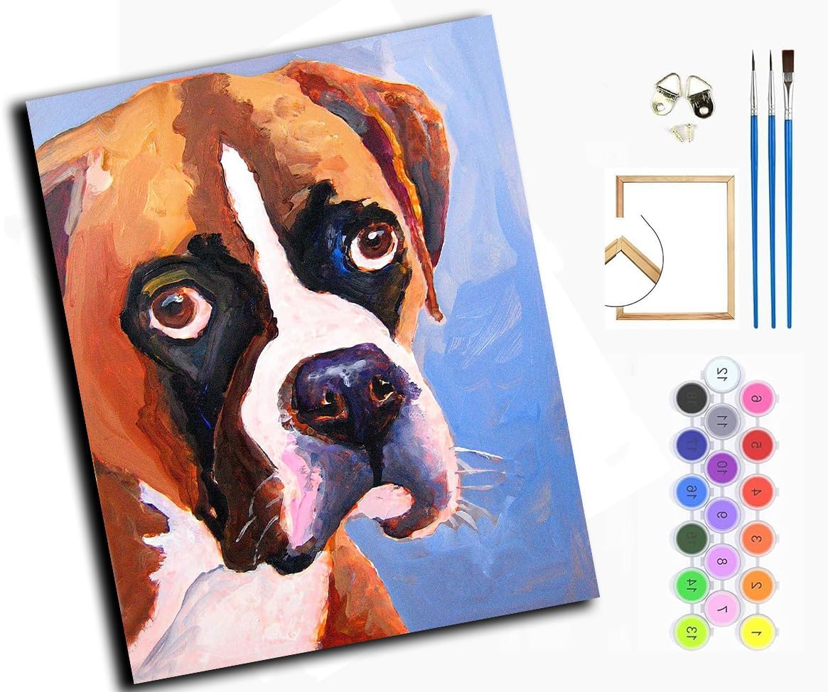 Paint by Numbers, pittura a olio dipinta a mano fai da te con 3, pennelli e colori acrilici, kit per tela 40 x 50 cm, cane da cervo, cane animale, con cornice