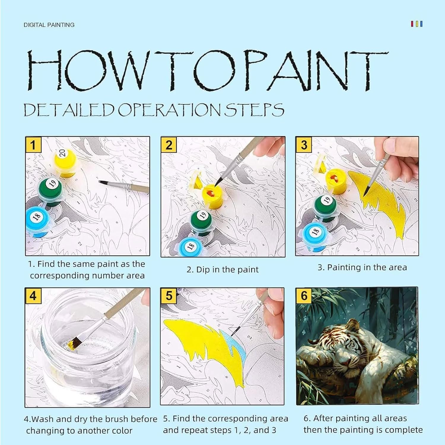 Paint by Numbers Tigre Dipingere con i Numeri, Dipingere con i Numeri Adulti Foresta Kit Pittura Adulti con Colori Acrilici e Pennelli per Dipingere per Decorazione Casa, Regalo Donna 20 x 30cm I-6