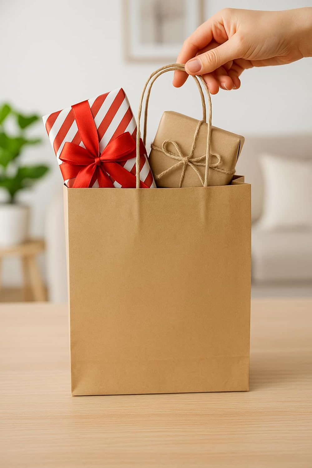 📦 10 pezzi in un set: ogni set contiene 10 pezzi di sacchetti di carta di alta qualità, perfetti per sacchetti regalo o borse della spesa. Le borse sono dotate di robuste maniglie che facilitano il trasporto di carichi pesanti. 🌟 Sacchetti di carta Pakomat di alta qualità: i nostri sacchetti di carta sono la soluzione ideale per tutte le tue esigenze di regali e acquisti. Realizzate in resistente carta kraft da 90 g, queste borse shopper in carta marrone liscia sono robuste ed eleganti. 🎉 Ideale per feste e celebrazioni: questi sacchetti regalo marroni sono versatili e ideali per feste e celebrazioni. Che si tratti di sacchetti regalo per i vostri ospiti o di borse per la spesa per l'uso quotidiano, le nostre borse vi offrono la qualità e l'affidabilità di cui avete bisogno. 💪 Robusti e affidabili: i nostri robusti sacchetti di carta kraft sono disponibili sia in dimensioni piccole che grandi per soddisfare le diverse esigenze. Ogni borsa è realizzata in materiale ecologico riutilizzabile e riciclabile. 🌍 Rispettoso dell'ambiente: le nostre borse non sono solo pratiche ed eleganti, ma fanno anche bene all'ambiente. Sono riutilizzabili e riciclabili, il che li rende una scelta sostenibile per le vostre esigenze di imballaggio.