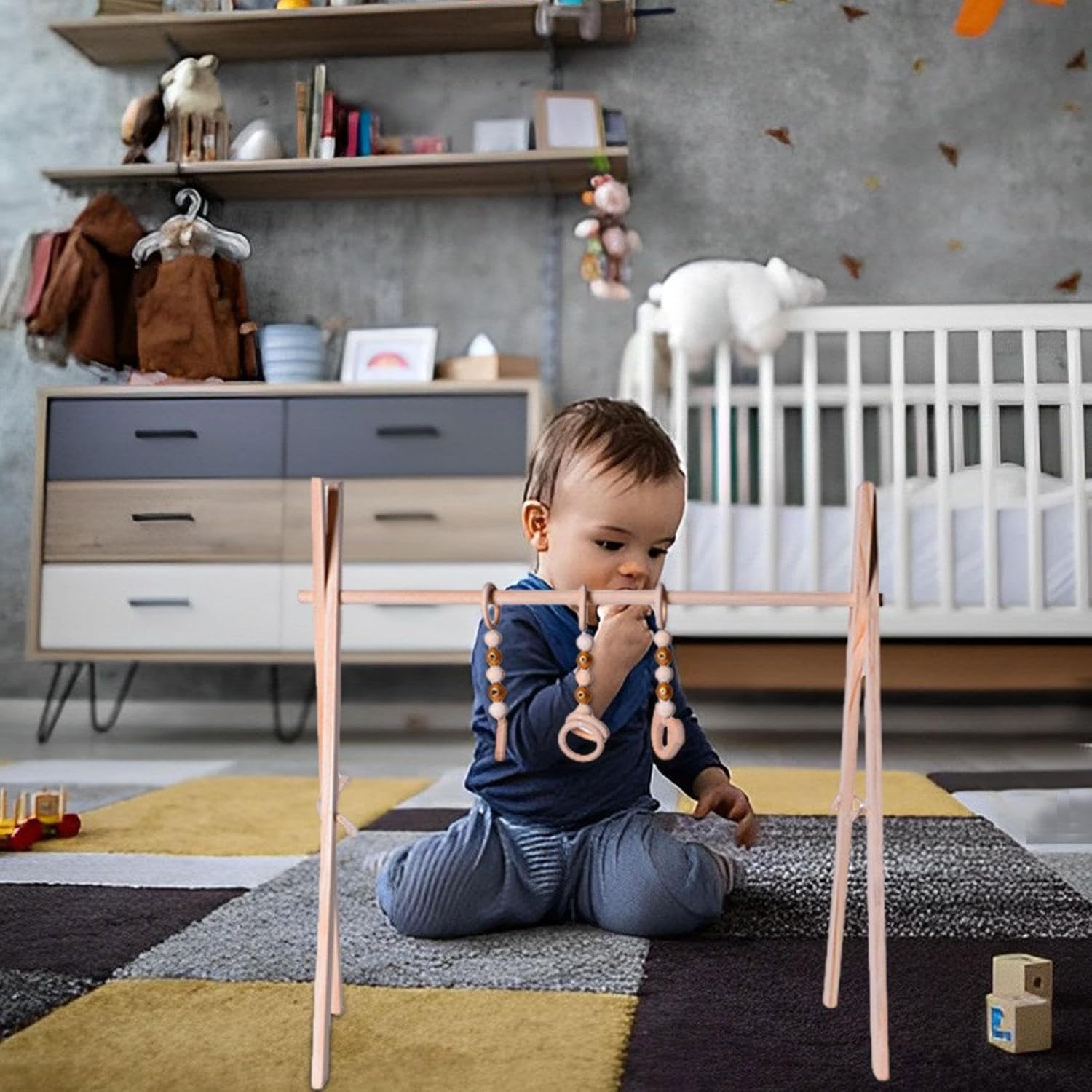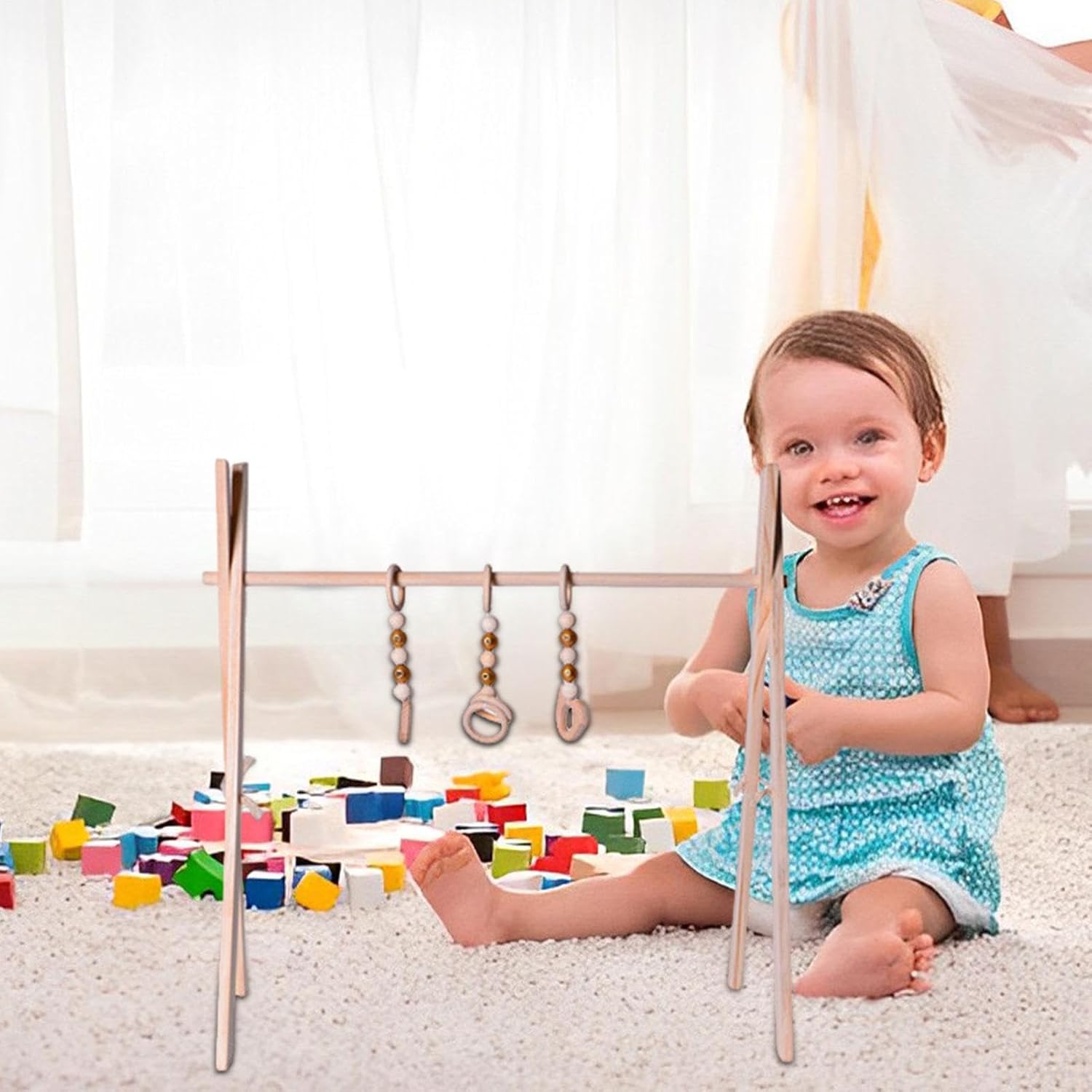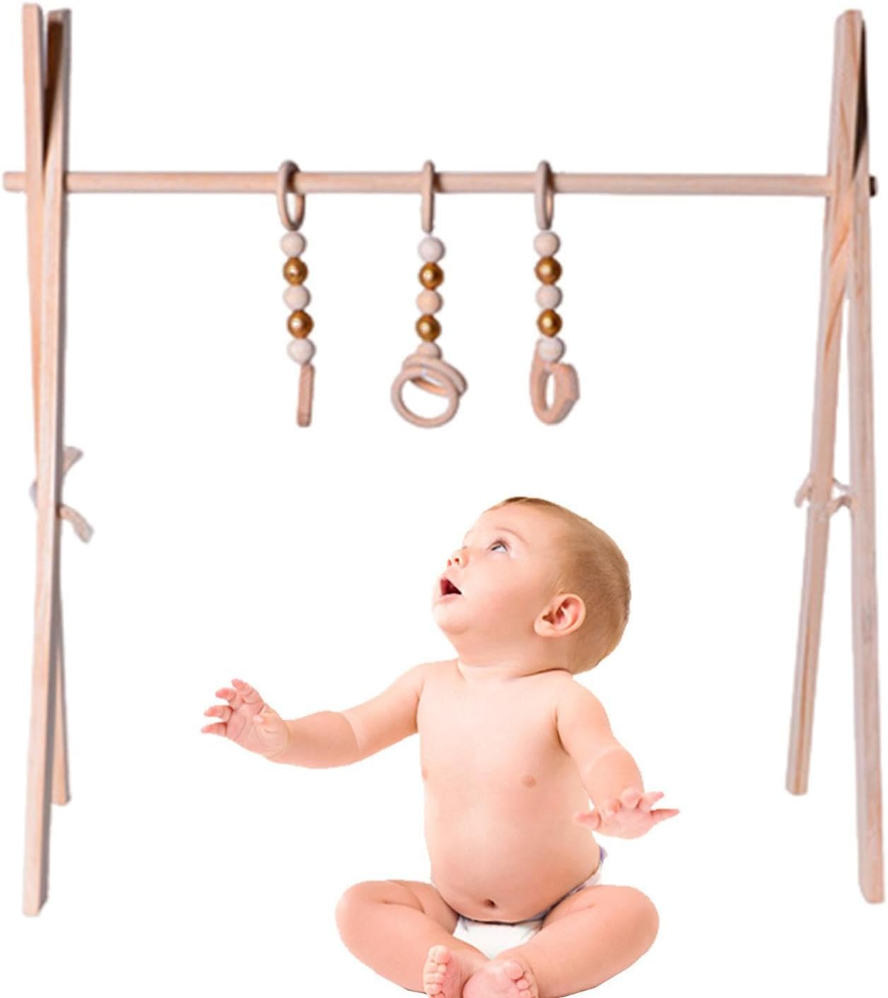 Ecologico: questa palestra da gioco è realizzata in legno di pino affidabile che non ha odore e non ha bisogno di vernice, rendendolo innocuo per il tuo neonato e l'ambiente. Migliora la presa e il gattonamento: questa palestra da gioco è dotata di giocattoli in legno per afferrare che sono ideali per insegnare ai bambini a afferrare e strisciare. La struttura in legno della palestra sviluppa le abilità motorie precoci e stimola i sensi del tuo neonato. Configurazione flessibile: con la nostra palestra di gioco, il tuo neonato può godersi il tempo di gioco all'aperto. Il design versatile è perfetto per passeggini e culle, e i ganci con anello a C facilitano il cambio del giocattolo. Mantieni il tuo piccolo intrattenimento, non importa dove ti porti la giornata. Facile da installare: sperimenta l'installazione perfetta di questa palestra in legno con i giocattoli. Si monta in pochi minuti senza bisogno di attrezzi, è facile da piegare e conservare, migliorando l'area di gioco del neonato. Stimolatore di curiosità: guarda la curiosità dei tuoi piccoli cresce con questa palestra di gioco, poiché incoraggia lo sviluppo ed esercita le abilità motorie. Adatto per ragazzi e ragazze da 0 a 12 mesi, questo giocattolo pieghevole migliora la coordinazione -mano ed è il regalo perfetto per nutrire le giovani menti.