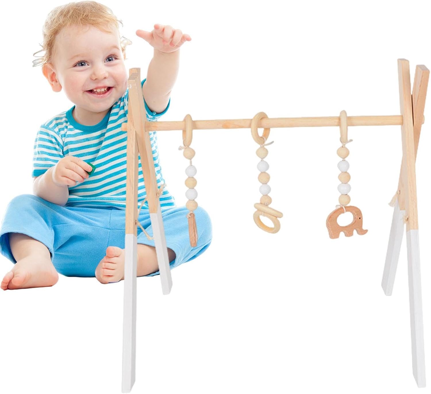 Tempo di gioco sicuro: con il suo materiale in legno di pino organico e innocuo, il nostro studio di gioco ecologico garantisce la sicurezza e la salute del vostro neonato e per l'ambiente. Goditi un gioco senza colpa e duraturo senza inquinanti o odori nocivi. Giocattolo sensoriale interattivo: il nostro studio di gioco offre giocattoli sensoriali interattivi che possono aiutare i bambini a imparare a afferrare e gattonare per primi. Con 3 giocattoli da afferrare in legno e un telaio da ginnastica in legno, questo giocattolo li aiuta a stimolare i sensi e sviluppare le abilità motorie precoci. Comodo tempo di gioco: questo design da studio di gioco con ganci ad anello a C facile da installare consente un facile passaggio tra i giocattoli ed è perfetto per passeggini e culle. I vostri bambini potranno divertirsi all'aperto ovunque e in qualsiasi momento, divertendosi. Facile da configurare: abbellisci l'area giochi del tuo neonato con questa sala giochi in legno leggero facile da installare. Nessun attrezzo richiesto e può essere assemblato in pochi minuti. Pratico e facile da ripiegare per riporlo. Miglioramento delle capacità motorie: promuove la curiosità del tuo bambino e migliora le capacità motorie con questa palestra di gioco. È adatto per ragazze di età compresa tra 0 e 12 mesi ed è un giocattolo pieghevole che allena la coordinazione occhio-mano. Un'ottima idea regalo per stimolare le giovani menti.