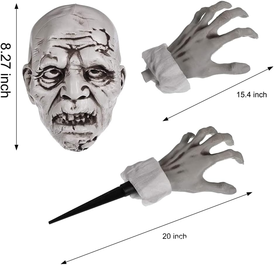 Dimensioni della resina: ca. 21 cm + 39 cm + 50,8 cm Spaventa i tuoi ospiti con i volti e le braccia più spaventosi. La migliore decorazione di Halloween per la tua casa, le scene del cimitero o la festa di Halloween. Solo la testa è separata dal paletto, è richiesto un facile assemblaggio. Assicurati di ambientare la scena horror Basta inserire la parte inferiore del braccio nel terreno e posizionare il teschio per presentare una scena realistica Resina stabile, facile da tenere quando la spingi. Una grande aggiunta a qualsiasi cimitero di Halloween