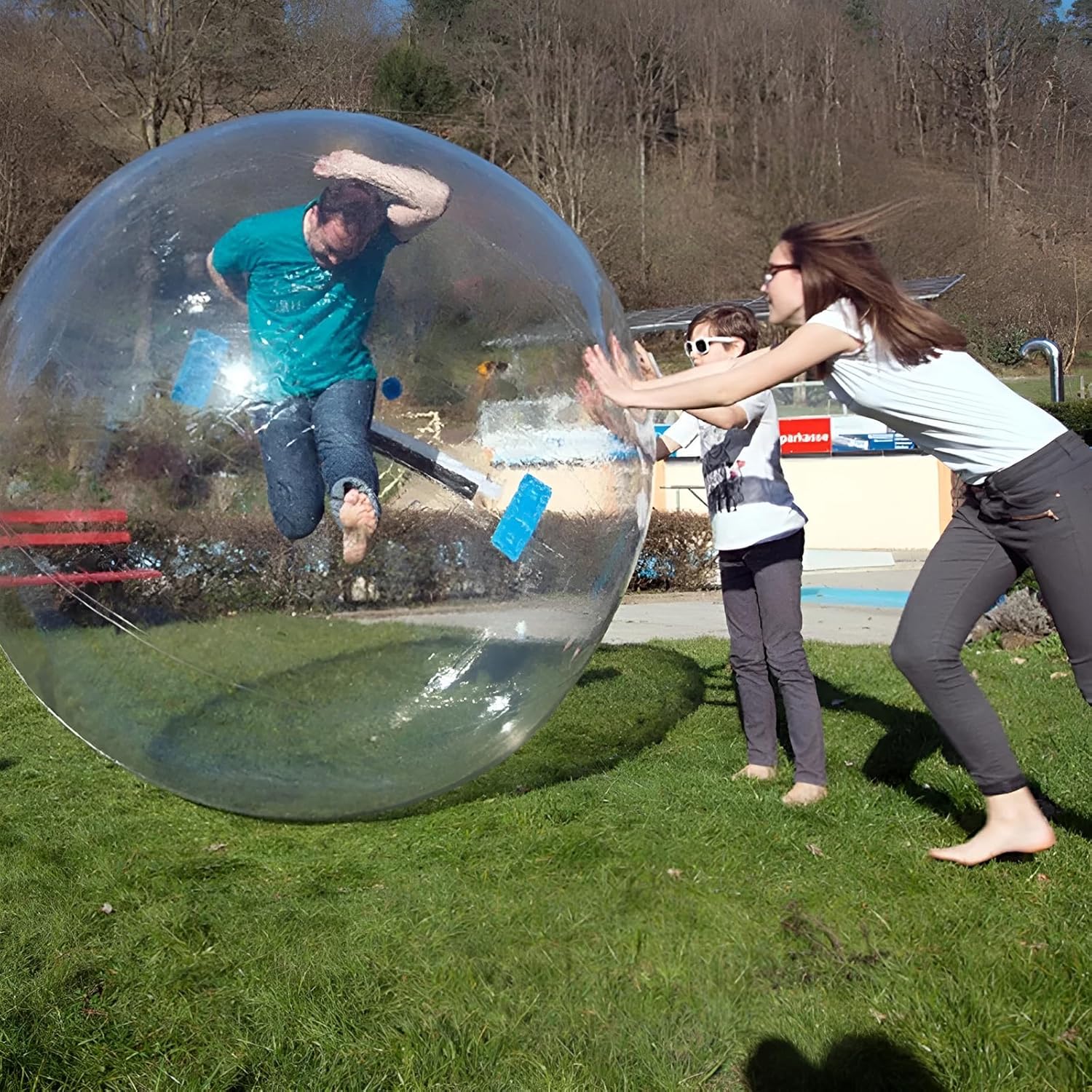 Il divertimento in acqua ti aspetta: la palla gonfiabile trasparente è dotata di una cerniera impermeabile che ti consente di correre, rotolare e saltare sull'acqua senza bagnarti. È la scelta perfetta per feste in piscina, gite in spiaggia e giochi sul prato. Durata eccezionale: realizzata con robuste pellicole in PVC da 0,6 mm, questa palla trasparente gonfiabile vanta un'elevata resistenza alla trazione e un'eccellente resistenza all'abrasione. È ecologico e non tossico, garantendo un gioco sicuro per tutti. Gonfiaggio rapido e conveniente: sperimenta una configurazione semplice con il sistema di valvole veloci della palla gonfiabile trasparente, che consente il gonfiaggio e lo sgonfiaggio più di 5 volte più velocemente rispetto alle opzioni standard. Goditi più tempo giocando e meno tempo preparando! Utilizzo versatile: nelle scuole, nei centri ricreativi, nei parchi o nelle società di noleggio, il Water Walking Ball è progettato per multiuso. Goditi infinite ore di intrattenimento promuovendo al tempo stesso il gioco attivo, perfetto per tutte le età! Divertimento per tutte le occasioni: perfetto per feste, gite in spiaggia o riunioni sul prato, il nostro pallone da passeggio sull'acqua aggiunge entusiasmo a qualsiasi evento. I suoi colori vivaci esaltano l'atmosfera, rendendolo ideale per divertirsi con amici e familiari.