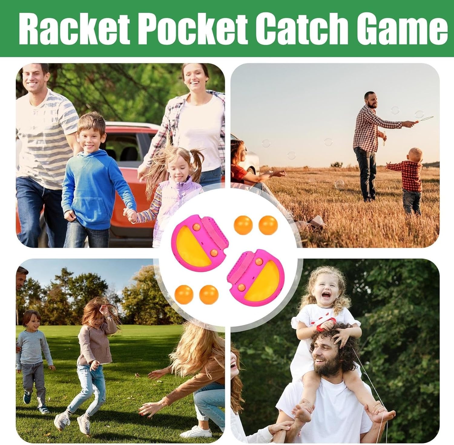 Materiale solido: il nostro gioco per catturare la borsa per racchette è realizzato in materiale PP resistente e robusto, garantendo un'esperienza di gioco sicura. La palla morbida riduce il rischio di lesioni accidentali, rendendola adatta sia ai bambini attivi che agli adulti Facile da usare: il Racket Pocket Catch Game aumenta il divertimento all'aria aperta con il suo meccanismo di lancio e cattura semplice e di facile comprensione. Viene fornito con 2 trasmettitori e 4 palline, che lo rendono un gioco da ragazzi e un ottimo modo per massimizzare il intrattenimento all'aperto Migliora il gioco attivo: il gioco Racket Pocket Catch consente ai bambini di migliorare le loro abilità di presa e lancio attraverso il gioco attivo e l'interazione. È strumento utile per sviluppare la coordinazione occhio-mano e la concentrazione Promuovi la coesione familiare: sperimenta il cameratismo come nessun altro con il design regolabile del Racket Pocket Catch Game. Le cinghie sono facilmente regolabili, rendendolo adatto sia a bambini che ad adulti, dando a tutti l'opportunità di unirsi al divertimento MIGLIORA L'ESPERIENZA ALL'APERTO: massimizza i momenti di risate con la famiglia e gli amici; Il suo esclusivo design ad incastro riduce al minimo il necessario per inseguire la palla ed è attraente sia per i bambini che per gli adulti
