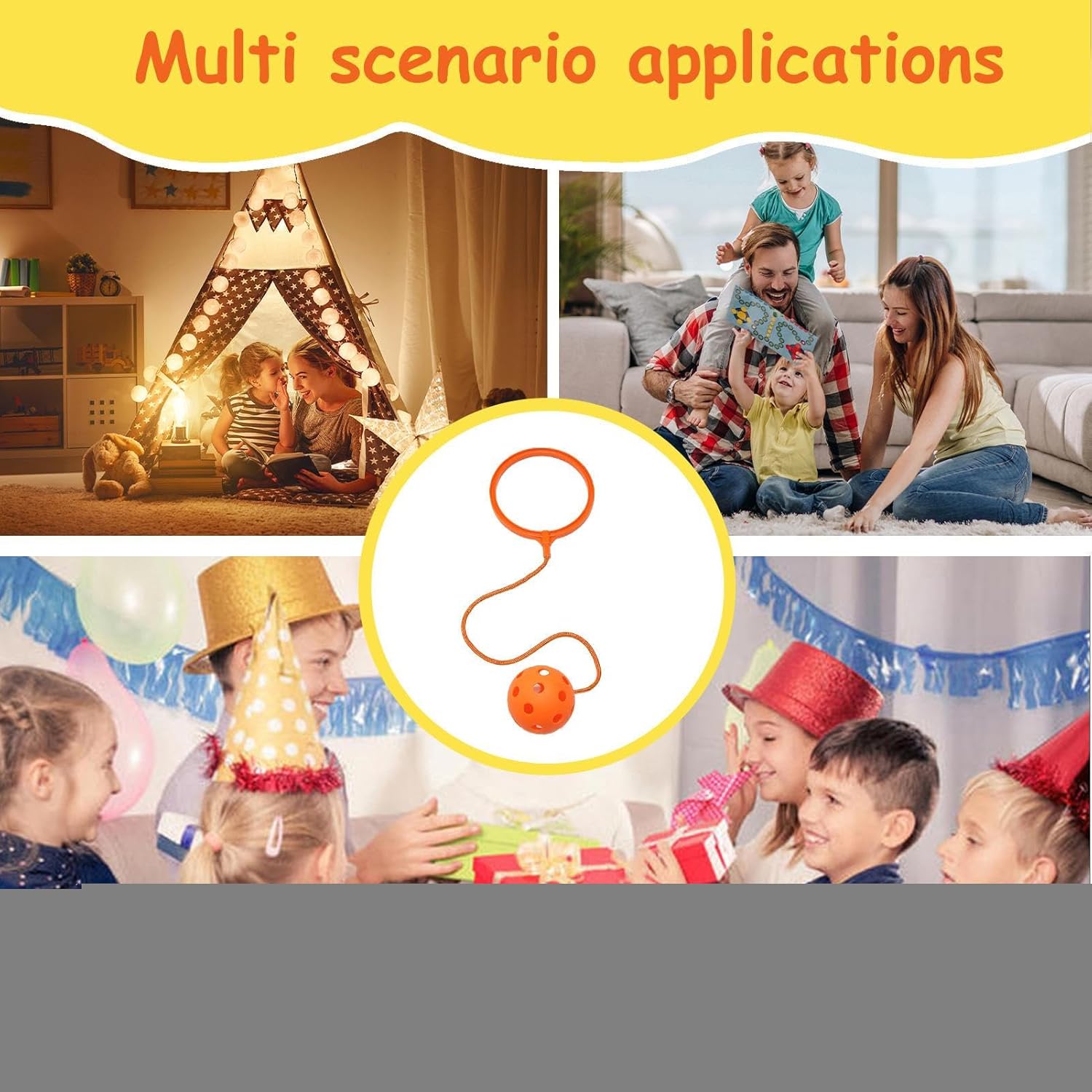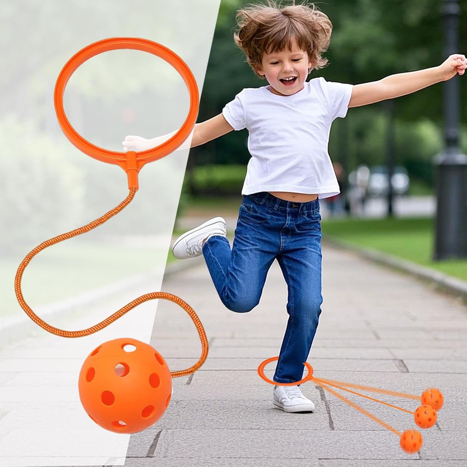 Migliora Coordinazione ed Equilibrio: La palla saltare per bambini è concepita per incentivare il saltello su una gamba mentre si calcia la palla con l', migliorando così la coordinazione e l'equilibrio durante il gioco in un ambiente all'aperto divertente, aiutando i bambini a rafforzare le capacità motorie e l'equilibrio corporeo in modo naturale e piacevole. Benefici Gioco Attivo: Con un design dinamico, la palla skip per caviglia supporta lo sviluppo dei muscoli delle gambe e la flessibilità mentre i bambini godono di attività continue di salto e calcio, rendendola ideale per picnic in famiglia o giochi in cortile. I bambini possono partecipare a gioco attivo migliorando la loro forma fisica mentre si divertono con famiglia e amici, promuovendo stile di vita attivo e sano attraverso il movimento costante. Strumento Esercizio Divertente: Il gioco skip ball per caviglia funge da strumento di esercizio quotidiano coinvolgente che promuove lo sviluppo fisico e il divertimento, rendendolo ideale per riunioni di amici e famiglia. Favorisce gioia e connessione tra e compagni di classe, incoraggiando stile di vita attivo attraverso attività piacevoli e interattive che rafforzano i legami personali e motivano il movimento fisico regolare in modo gioioso. Ideale per Avventure Outdoor: La palla saltarella per bambini unisce movimento e divertimento, offrendo una soluzione versatile per il gioco attivo in cortili, giardini, spiagge e oltre. Migliora le vacanze familiari, le escursioni in campeggio e le gite al parco con un intrattenimento di lunga durata, favorendo un'attività fisica e coinvolgente che si adatta a varie avventure all'aperto, regalando ore di svago e benessere per i più piccoli. Divertimento all'Aperto Affidabile: Questa palla saltare per bambini presenta materiali PP di alta qualità e morbidi che assicurano la sicurezza durante l'uso, rendendola una scelta perfetta per i bambini in età prescolare impegnati in giochi attivi sia in casa che all'aperto. Grazie alla sua costruzione duratura e sicura, offre divertimento costante in cortili, parchi o spazi aperti, supportando attività fisiche e ricreative con prestazioni affidabili e piacevoli.