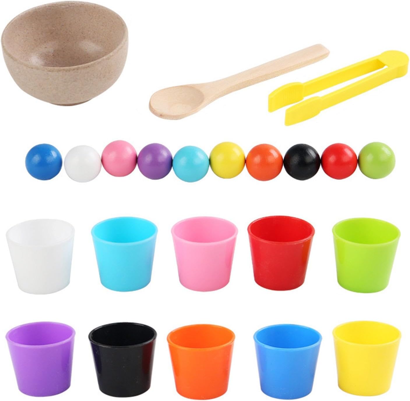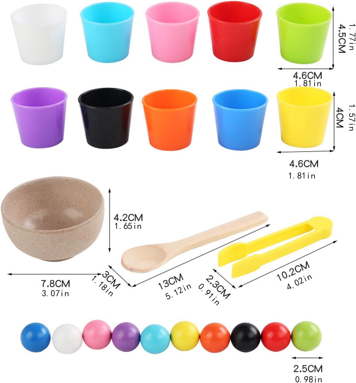 【Abbinamento colori】: i giocattoli per l'ordinamento e l'abbinamento dei colori incoraggiano a imparare a ordinare i colori e a contare i numeri abbinando palline di colore diverso con le tazze corrispondenti. 【Educazione precoce e sviluppo delle abilità di vita】: le palline arcobaleno in legno mirano a coltivare il pensiero cognitivo dei bambini promuovendo al contempo le abilità di base della vita, le capacità motorie e la coordinazione occhio-mano 【Materiali di alta qualità】: le palline arcobaleno in tazze sono realizzate in materiali PP, sono affidabili e adatte a far giocare il tuo bambino può dare.