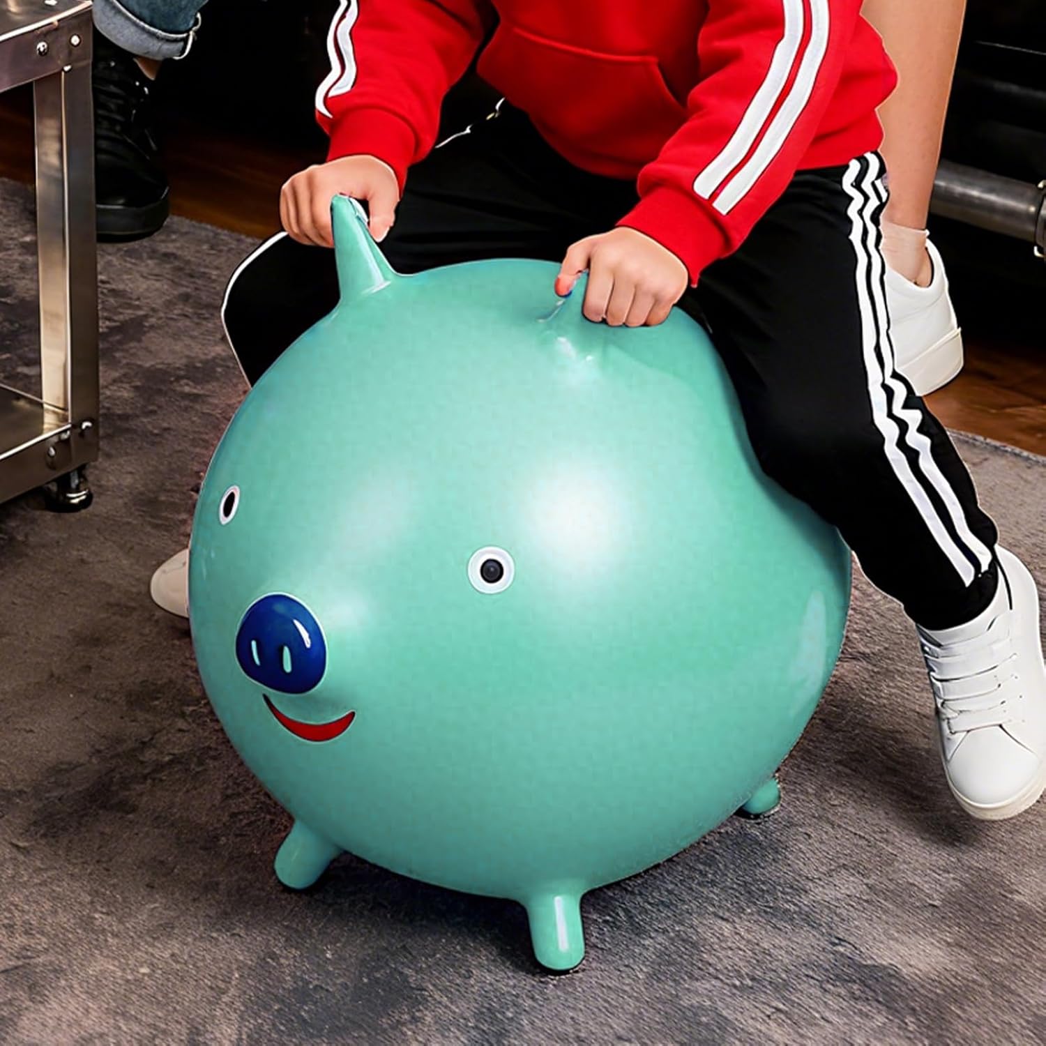 Palla rimbalzante durevole con buon rimbalzo: questa palla rimbalzante è realizzata in materiale PVC altamente elastico e ad alta resistenza, che protegge in modo affidabile dallo scoppio e dalla perdita d'aria. Mantiene prestazioni di salto stabili per un lungo periodo di tempo ed è ideale per il gioco attivo all'interno o all'esterno. L'ottima capacità di carico garantisce divertimento duraturo e durevolezza durante l'utilizzo senza perdere in qualità. La palla è perfetta per vari ambienti di gioco e offre un'esperienza di gioco avvincente e coerente: con il suo simpatico design a orecchie di animale e vivaci accenti da cartone animato, questa palla rimbalzante trasforma l'attività fisica quotidiana in un'avventura emozionante. Risveglia la creatività e la fantasia durante il gioco per i bambini di tutte le età in diversi ambienti, sia interni che esterni, rendendo ogni movimento un'esperienza speciale. Ore di divertimento durante l'attività fisica: grazie al loro funzionamento affidabile su superfici piane, queste palline rimbalzanti garantiscono un divertimento duraturo. Supportano sia il gioco interattivo genitore-figlio che il gioco individuale, creando opportunità di movimento gioioso in molteplici ambienti, incoraggiando i bambini a essere attivi. Miglioramento delle capacità motorie: con i vantaggi dell'integrazione sensoriale, le palline rimbalzanti per bambini affinano la propriocezione e la sensibilità tattile e promuovono il progresso vestibolare. Aiutano a mantenere l'equilibrio e rappresentano un ottimo modo per allenare le abilità fondamentali attraverso una gioiosa attività fisica al chiuso o all'aperto, che stimola giocosamente lo sviluppo motorio. Rimbalzo sicuro e divertente: con maniglie appositamente progettate, la palla rimbalzante per bambini consente ai bambini di trovare facilmente supporto mentre sono seduti su di essa, fornendo maggiore sicurezza e controllo. Il design ergonomico della maniglia migliora l'equilibrio e crea un'esperienza di rimbalzo affidabile e divertente, sia all'interno che all'esterno in giardino, per un divertimento duraturo.