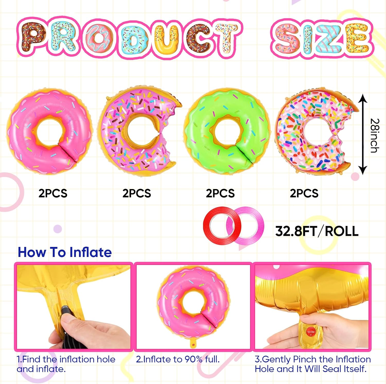 🍩🎈【Set di Palloncini a Ciambella】Riceverai 8 palloncini a ciambella in 4 stili diversi. Possono essere utilizzati da soli o liberamente combinati con altre decorazioni per creare un'atmosfera da festa fantastica e sognante! 🍩🎈【Forma di Ciambella Unica】L'aspetto rotondo e tridimensionale del palloncino ciambella compleanno decorato con granelli di zucchero colorati, l'effetto visivo è dolce e accattivante, adatto a una varietà di decorazioni a tema dessert! 🍩🎈【Forma di Ciambella Unica】L'aspetto rotondo e tridimensionale del palloncino ciambella compleanno decorato con granelli di zucchero colorati, l'effetto visivo è dolce e accattivante, adatto a una varietà di decorazioni a tema dessert! 🍩🎈【Ampiamente Applicabile】Le palloncino a forma di ciambella non sono adatte solo per feste di compleanno, attività all'asilo, ma possono anche essere utilizzate come decorazioni per feste in pasticcerie, bar e altri negozi. 🍩🎈【Funzionamento Semplice】Non sono necessari strumenti professionali, puoi utilizzare una normale cannuccia o una pompa dell'aria per gonfiare rapidamente i palloncini dessert rosa. Anche i principianti possono iniziare facilmente, rendendo la decorazione delle feste un gioco da ragazzi!