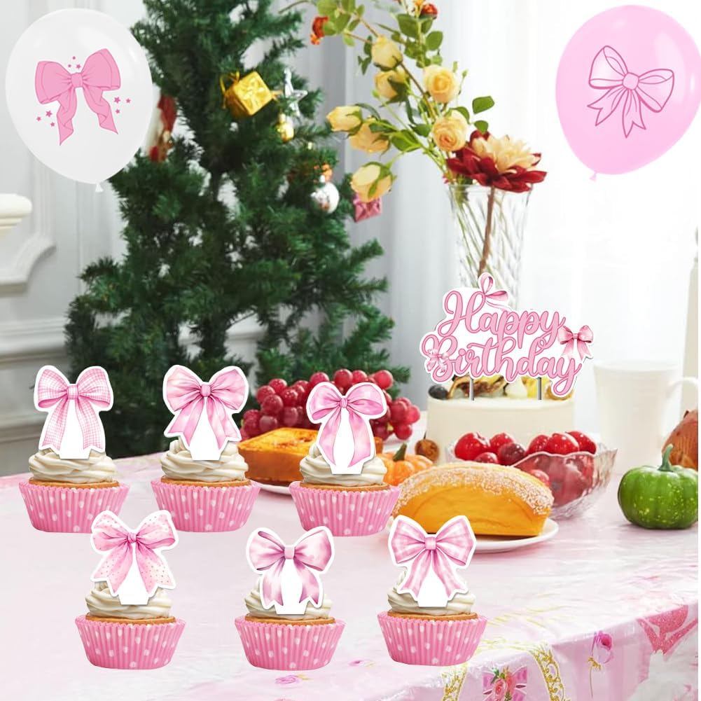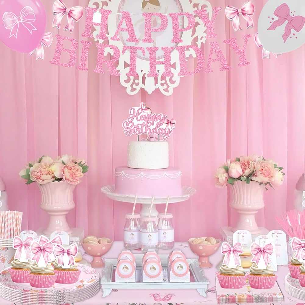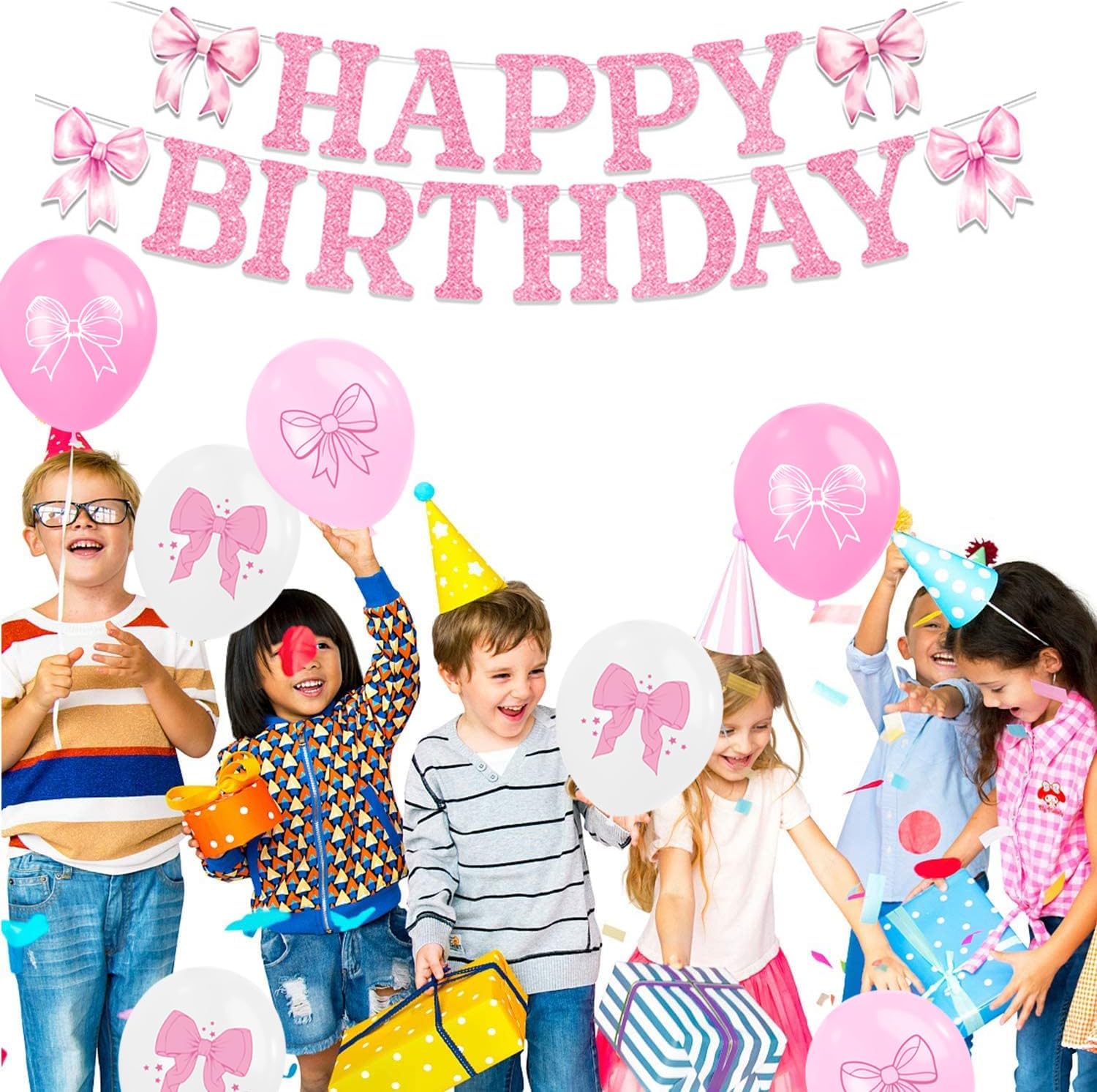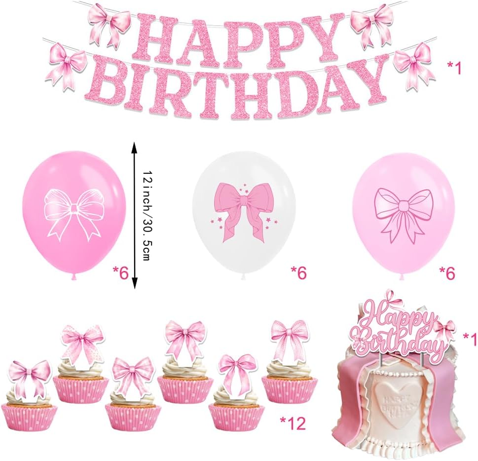 La confezione include: 1 striscione Happy Birthday, 18 palloncini in lattice, 12 topper per cupcake, 1 topper per torta Happy Birthday. Materiale: lo striscione Happy Birthday è realizzato in cartone. I palloncini sono realizzati in lattice naturale, sono sicuri e atossici, durevoli e riutilizzabili. Facile da usare: i palloncini possono essere riempiti con aria o elio. Se è pieno d'aria, non può galleggiare. È molto facile finire la decorazione in 30 minuti. Decorazioni per feste: il fiocco rosa per il compleanno crea un'atmosfera allegra, vivace e unica, è una bella attrazione durante le feste. Ampiamente utilizzato: le decorazioni per feste di compleanno per bambini, feste a tema fiocco, decorazione della stanza, baby shower, feste estive, accessori fotografici, ecc.