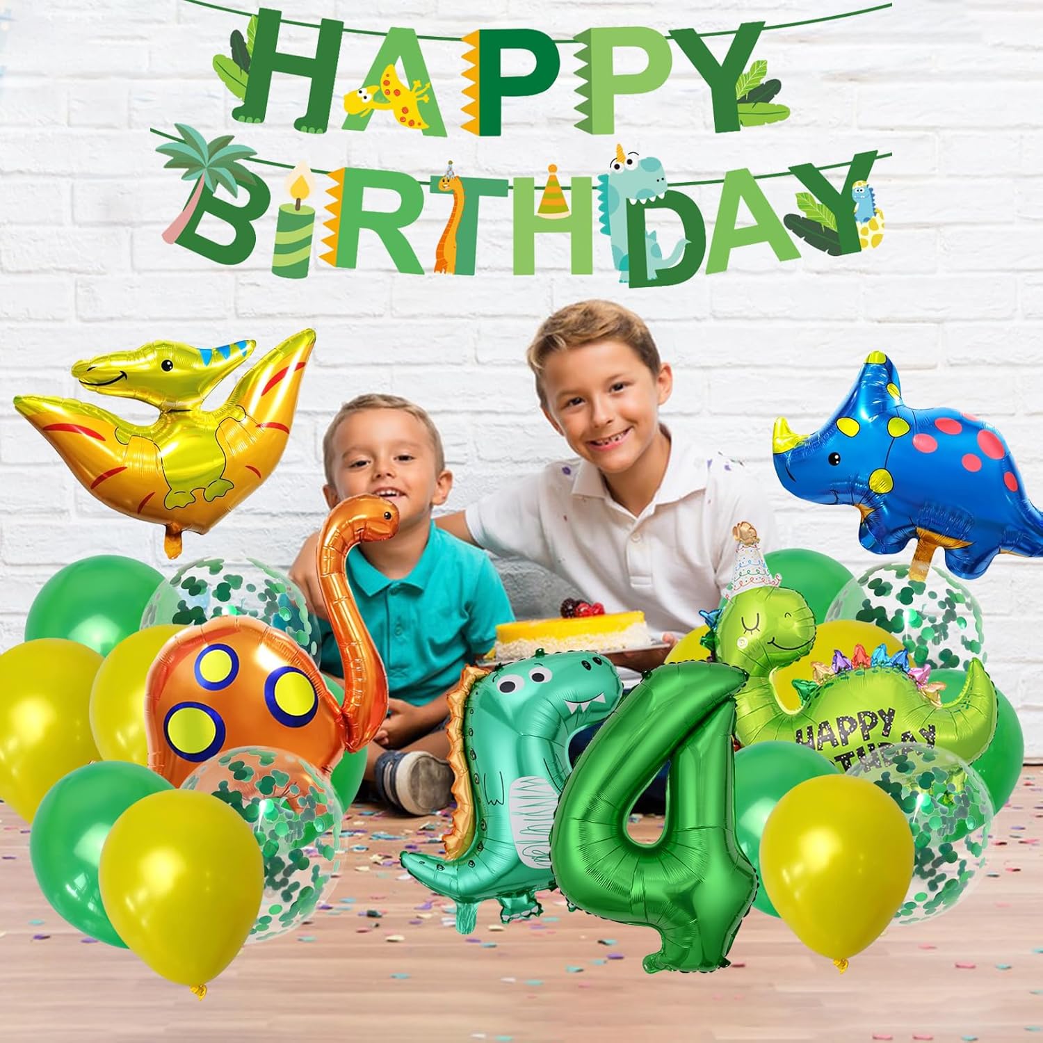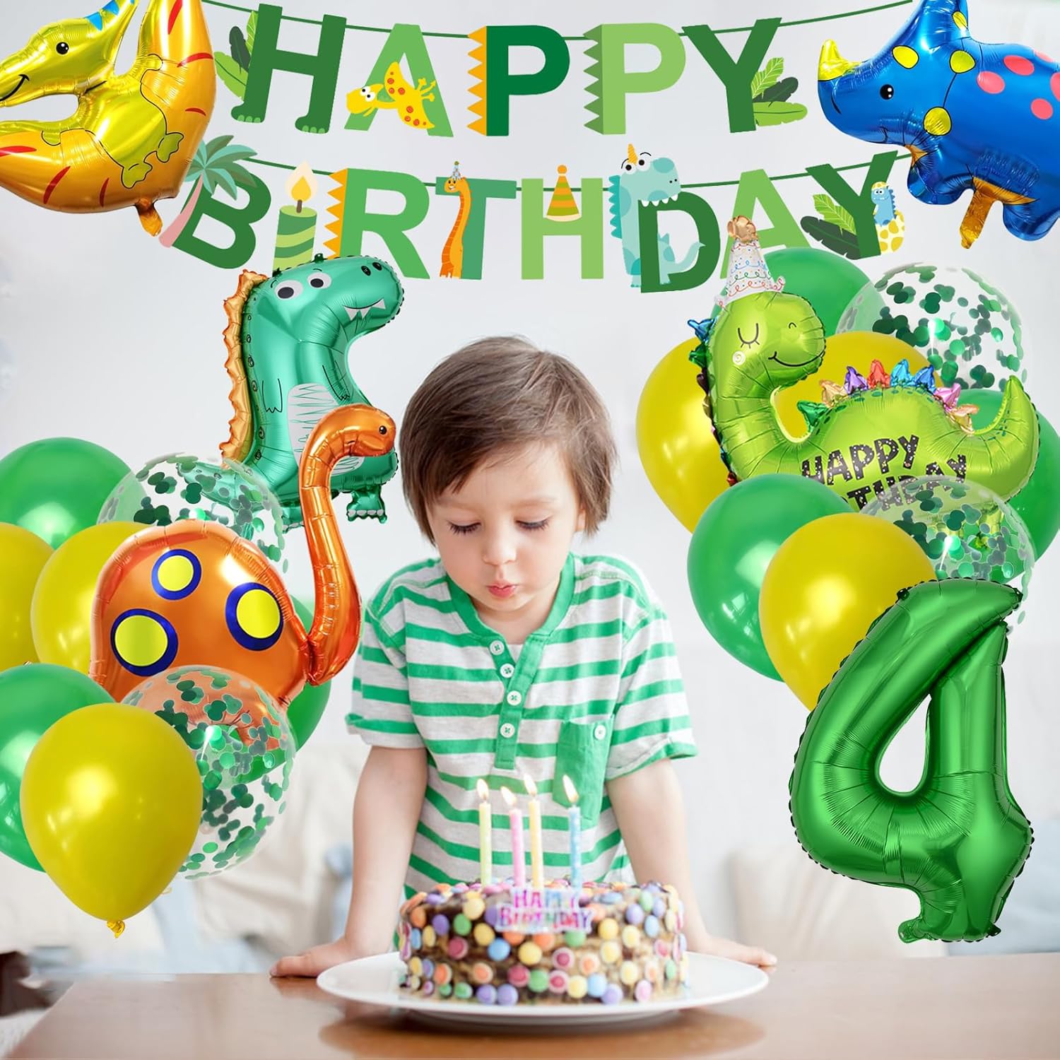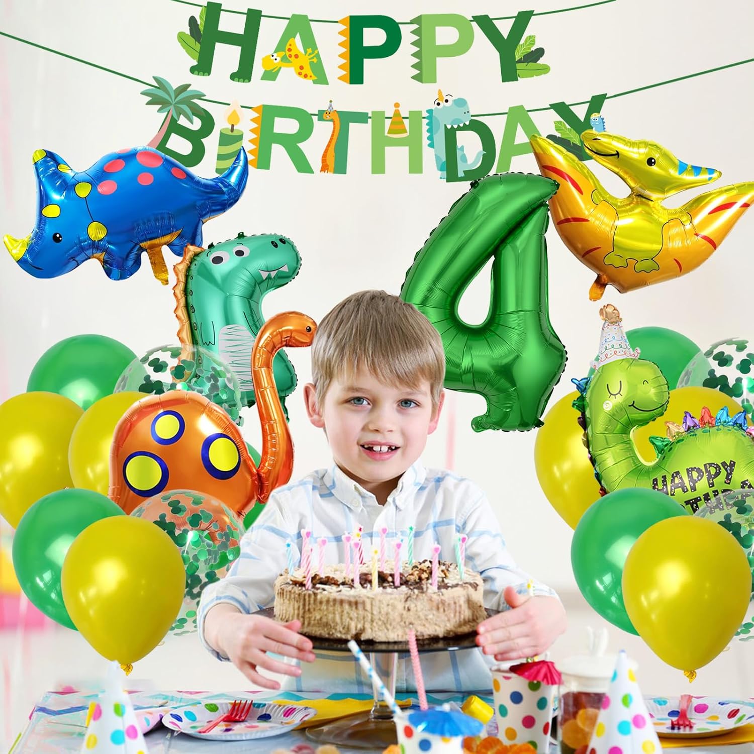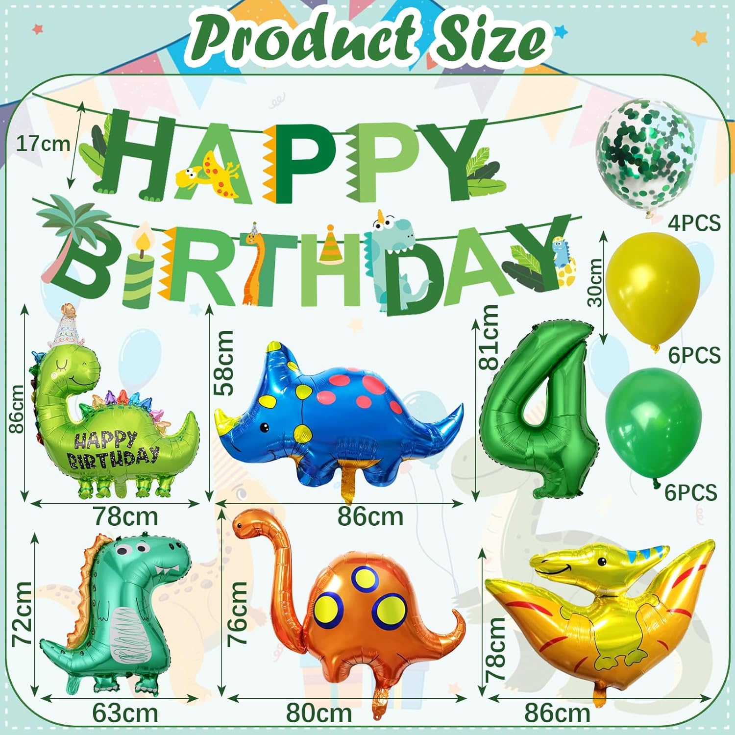 🦖【Contenuto della confezione】1 palloncino in alluminio con il numero “4” (81 cm), 16 palloncini in lattice (6 verdi, 6 gialli, 4 con paillettes), 5 palloncini in alluminio a forma di dinosauro, 1 striscione con la scritta “Buon compleanno” e nastri per palloncini. 💚【Materiali di alta qualità】Le decorazioni per feste a tema dinosauri sono facili da assemblare, i palloncini in alluminio e quelli in lattice sono realizzati con materiali di alta qualità, hanno colori vivaci, sono resistenti e riutilizzabili, adatti sia all'aria che all'elio. 🦖【Design del prodotto】I nostri palloncini sono vivaci e soddisfano le esigenze delle feste a tema giungla, invitandoti a esplorare i misteri del mondo dei dinosauri. 💚【Ambienti di utilizzo】 Il set di compleanno a tema dinosauri può essere utilizzato per decorare pareti, porte, finestre, ecc. È l'accessorio ideale per le feste e può essere utilizzato anche come oggetto di scena per le foto. 🦖【Decorazioni di compleanno perfette】 I palloncini di compleanno a tema dinosauri sono adatti per le feste di compleanno dei bambini di 4 anni, per sorprendere i bambini che amano i dinosauri e per organizzare una festa di compleanno unica e indimenticabile per il tuo bambino.