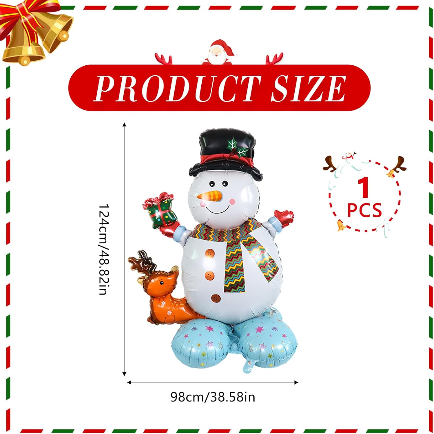 Palloncini decorativi natalizi: riceverai 1 palloncino natalizio grande da 127-152,4 cm con classici elementi natalizi. Vari stili, perfette decorazioni per feste di Natale, capodanno, vacanze, feste. Materiale di alta qualità: questi grandi palloncini natalizi sono realizzati in foglio di alluminio di alta qualità, durevoli, riutilizzabili, atossici, leggeri, facili da gonfiare e sgonfiare, non si espandono facilmente e possono rimanere gonfiati a lungo. Design classico natalizio: questi palloncini natalizi sono progettati con motivi classici natalizi, come Babbo Natale, pupazzo di neve albero di Natale e schiaccianoci, l'aspetto attirerà l'interesse dei bambini ed è una scelta ideale per la decorazione dell'arco di palloncini natalizi. Facili da usare: i palloncini natalizi in alluminio hanno valvole autosigillanti, non c'è bisogno di legare nodi, facili da gonfiare e sgonfiare. Può essere gonfiato con aria o elio. Quando riempito con elio, il palloncino natalizio galleggia nell'aria; quando riempito con elio, premere la valvola del palloncino per sigillarlo. È riutilizzabile. Ampia gamma di applicazioni: ideale per decorazioni per feste di Natale, parate di Natale, feste di compleanno, feste a tema Babbo Natale, feste a tema invernale, baby shower, feste cosplay, addio al nubilato, decorazioni per terre di caramelle, carnevale, balli, feste tribali, anniversari, Capodanno, San Valentino, anche per l'uso quotidiano. Appendi questi palloncini in lamina su soffitti, finestre, pareti, giardini e così via. Creare un vivace tema natalizio.