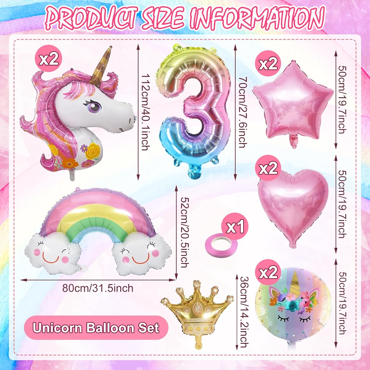 Compleanno con palloncini unicorno: riceverai 1 palloncino con numeri, 2 palloncini con unicorno, 2 palloncini rotondi con unicorno, 2 palloncini con stelle, 2 palloncini con cuore, 1 palloncino con nuvola arcobaleno e 1 palloncino con corona. Ogni stile è unico e regalerà al tuo bambino una festa di compleanno meravigliosa e indimenticabile. Materiale: questi palloncini a forma di unicorno sono realizzati in un foglio di alluminio di alta qualità, sigillato tutt'intorno e non può fuoriuscire. È durevole e infrangibile, il che garantisce l'alta qualità e la durata dei palloncini di compleanno di unicorno e aggiunge colori di alta qualità alla decorazione della tua festa. Modelli chiari e durevoli: il palloncino dell'unicorno è realizzato nei colori rosa e bianco con alcuni accenti blu e gialli, molto sognanti. Entrambi i lati sono stampati con motivi chiari, creando un'atmosfera carina e sognante che renderà meravigliosamente memorabile la festa di compleanno di ogni ragazza. Facile da installare: puoi ordinare e regolare i palloncini in base alle tue esigenze, i palloncini possono essere riempiti con elio, preferibilmente all'80%-90%. Facile da galleggiare e facile da impugnare. Con il nastro adesivo il palloncino può essere fissato in qualsiasi posizione, sia corto che alto. Decorazione di compleanno: il set di palloncini con unicorno può essere appeso a soffitti, corridoi, alberi, pareti, porte e finestre, perfetto per decorare feste di compleanno, anniversari, feste a tema e altro ancora. Può essere combinato con altre decorazioni per feste o altri palloncini colorati per creare una festa perfetta per te.