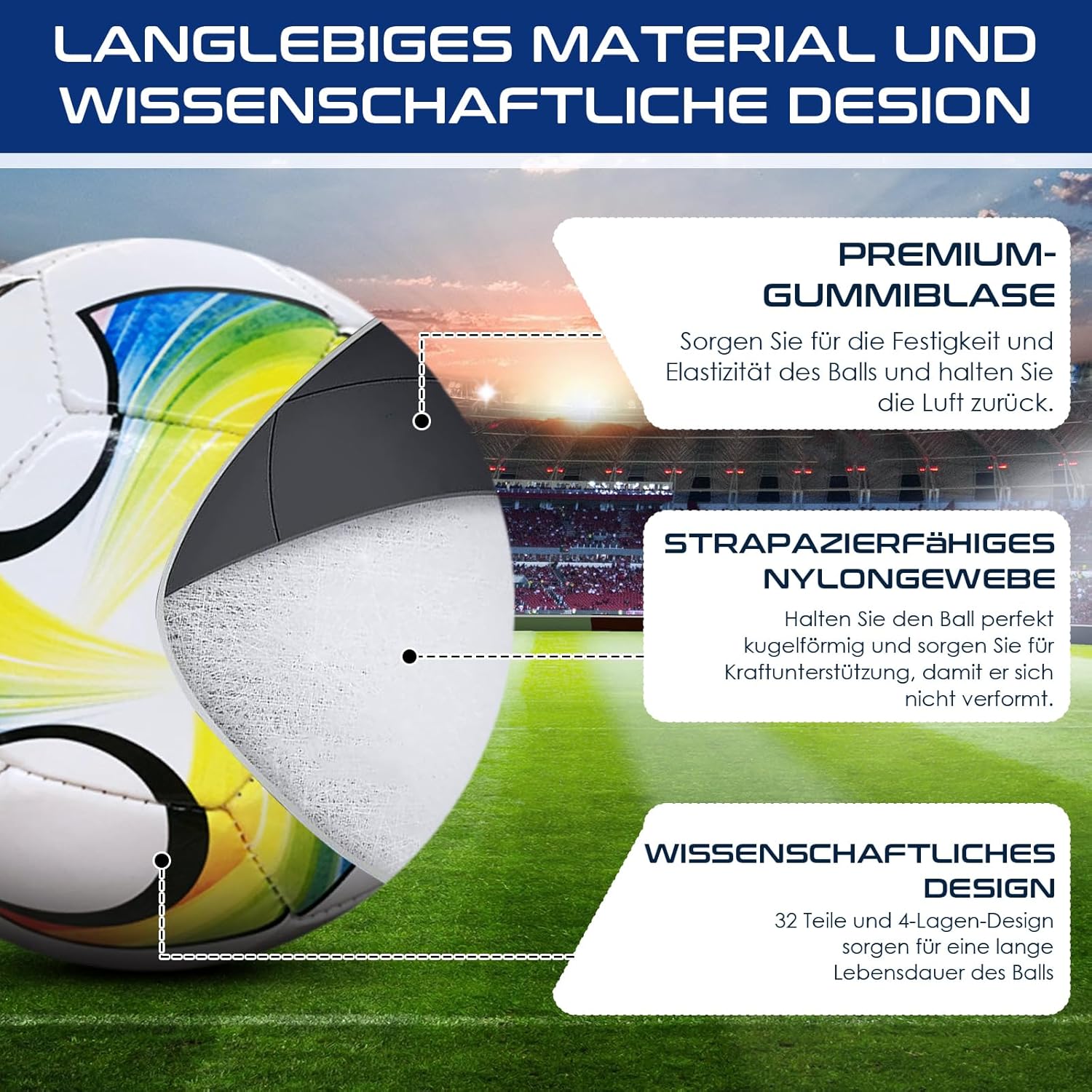 Pallone da calcio misura 5: goditi un'esperienza di calcio con il nostro pallone misura 5, progettato per prestazioni ottimali sul campo Lunga durata: questo pallone da calcio è costruito per durare, garantendo resistenza e longevità per innumerevoli sessioni di allenamento e partite Pregevole fattura: con meticolosa attenzione ai dettagli, il nostro pallone da calcio mette in mostra la maestria artigianale per prestazioni fluide e affidabili Portatile: porta il tuo gioco in movimento con il nostro pallone da calcio leggero e portatile, per giocatori di tutte le età e livelli di abilità Divertimento all'aria aperta: che tu ti stia allenando, gareggiando o semplicemente giocando per divertimento, il nostro pallone da calcio è per all'aperto e intrattenimento senza fine