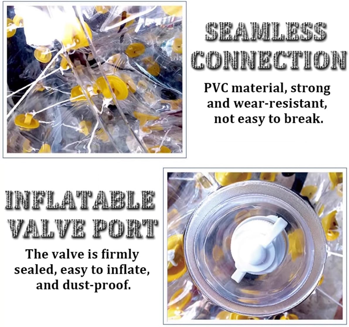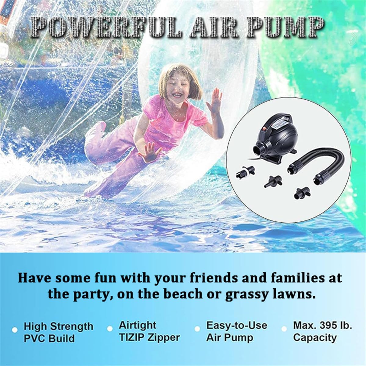 Divertimento acquatico versatile: goditi la palla da passeggio non solo in piscina, ma anche in acque libere e spiagge, garantendo un'avventura acquatica unica. Supervisionare sempre per sicurezza e massimo divertimento. Gonfiaggio e sgonfiaggio efficienti: dotata di una valvola ermetica e di una pompa ad aria da 800 W, la palla si gonfia e si sgonfia rapidamente, facilitando l'installazione e il trasporto in pochi minuti. Ampi scenari di utilizzo: ideale per scuole, centri ricreativi, parchi e attività di noleggio, questa palla da passeggio offre un divertimento infinito per correre, rotolare e lanciare sull'acqua con amici e familiari. Materiale durevole e sicuro: realizzata in pellicola di PVC ad alta resistenza, la palla è resistente all'usura, flessibile ed ecologica, supporta fino a 180 kg per un uso sicuro e piacevole. Design sicuro: Dispone di una cerniera impermeabile con forte tenuta e funzionamento regolare, rinforzata con adesivi per evitare danni, garantendo un'esperienza asciutta e divertente sull'acqua.