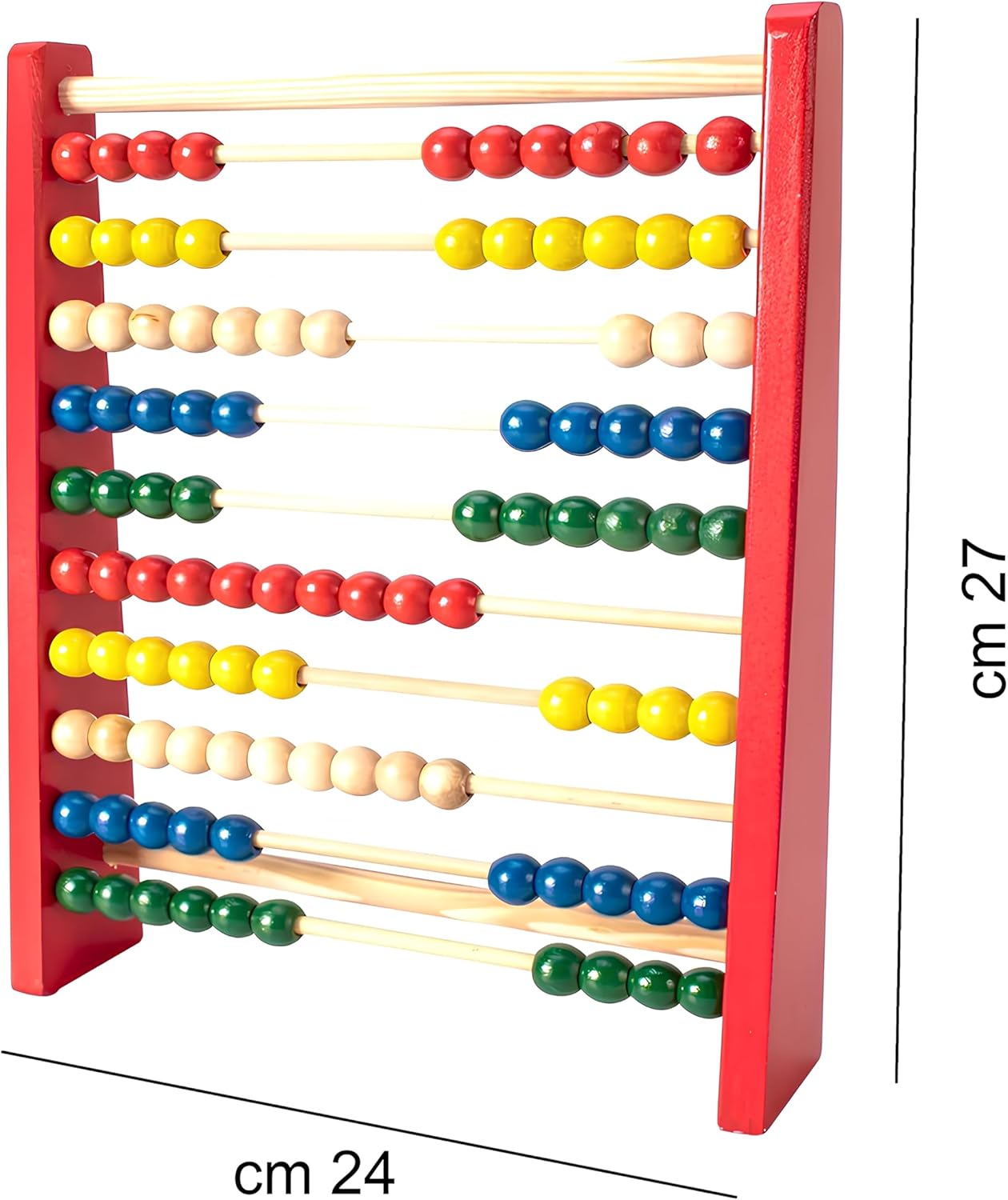 scopri il pallottoliere in legno maxi da 27 cm, ideale per bambini e bambine dai 3 anni in su, uno strumento educativo che unisce gioco e apprendimento in modo divertente e intuitivo. realizzato interamente in legno naturale e resistente, è perfetto per l’uso domestico o scolastico. le 100 palline colorate aiutano i piccoli a sviluppare abilità matematiche, coordinazione occhio-mano e riconoscimento dei colori, rendendolo un classico gioco montessori indispensabile per ogni genitore e insegnante abaco educativo perfetto per imparare a contare, sommare e sottrarre: le dieci file da dieci palline colorate ciascuna stimolano l’apprendimento dei numeri, delle operazioni matematiche di base e del pensiero logico. un eccellente supporto per l’approccio montessori, aiuta i bambini a comprendere visivamente quantità e numeri, favorendo l’autonomia e la memorizzazione grazie alla manipolazione diretta delle palline in legno colorate vivaci misura maxi cm 27 x 24, con struttura solida e stabile in legno massello verniciato con colori atossici, il pallottoliere è pensato per resistere a lungo e per essere utilizzato in totale sicurezza. il design robusto e compatto lo rende adatto sia per l’aula che per l’uso domestico. il materiale naturale e le superfici lisce senza spigoli vivi lo rendono ideale come primo gioco educativo per bambini piccoli in età prescolare e scolare 100 palline colorate e levigate disposte in 10 righe da 10 palline ciascuna: rosse, gialle, blu, verdi e naturali, perfette per stimolare la memoria visiva, il ragionamento e la creatività. le palline scorrono facilmente lungo le aste in legno, offrendo un feedback tattile utile per migliorare la motricità fine. un modo coinvolgente per trasformare la matematica in un’esperienza pratica e divertente, perfetto per bambini in fase di sviluppo cognitivo il nostro abaco montessori è ideale anche come regalo educativo: perfetto per compleanni, natale o come strumento didattico nelle scuole dell’infanzia e primarie. un gioco classico senza tempo che accompagna il bambino nella crescita, utile anche come supporto per bambini con difficoltà di apprendimento. aiuta a rendere lo studio dei numeri più accessibile, stimolando concentrazione, attenzione e autonomia in modo giocoso gioco educativo multifunzione: non solo matematica ma anche sviluppo sensoriale, logico e creativo. l’abaco in legno può essere utilizzato per insegnare sequenze, pattern, classificazione di colori e forme, ordinamento e molto altro. uno strumento didattico versatile per attività montessoriane, homeschooling e per l’insegnamento alternativo. ideale sia come primo approccio ai numeri che per rinforzare abilità scolastiche un grande classico intramontabile rivisitato in chiave educativa: il nostro pallottoliere in legno con palline colorate unisce estetica, funzionalità e apprendimento. perfetto per accompagnare il bambino nella scoperta dei numeri e della logica in modo divertente e interattivo, è uno strumento utile sia per il gioco libero che per l’educazione formale. la struttura maxi da 27 cm con base stabile lo rende ideale da tenere sempre a portata di mano su tavoli, banchi o scrivanie in cameretta o a scuola