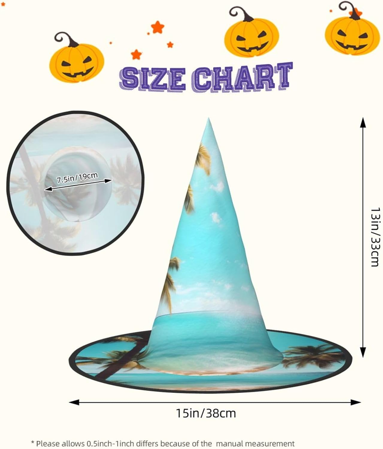 Questo cappello di Halloween con stampa di palme e mare è una miscela unica di comfort e stile, realizzato in tessuto Oxford. Il suo design compatto e leggero lo rende per portarlo in giro senza il peso. Ha una struttura unica; la parte superiore può essere ridotta e i bordi possono essere attorcigliati e piegati, consentendo una facile conservazione. Il cappello da strega con stampa di palme e mare che si tratti di una festa di Halloween, una festa in maschera o un gioco di ruolo, il nostro cappello è il tuo accessorio perfetto. Al centro dell'attenzione in qualsiasi evento di Halloween. È anche facile da pulire: lavabile in lavatrice o a mano, si asciuga rapidamente e facile da pulire. Scatena la tua strega interiore questo Halloween con i nostri cappelli da strega alla moda e divertenti! Nota: per una migliore cura, evitare la candeggina. Rendi indimenticabile questo Halloween con i nostri cappelli da mago per Halloween!