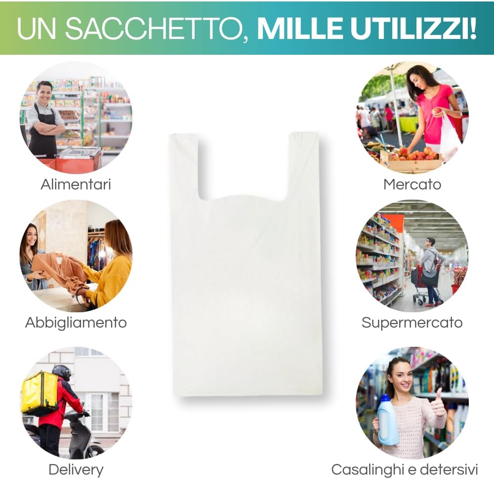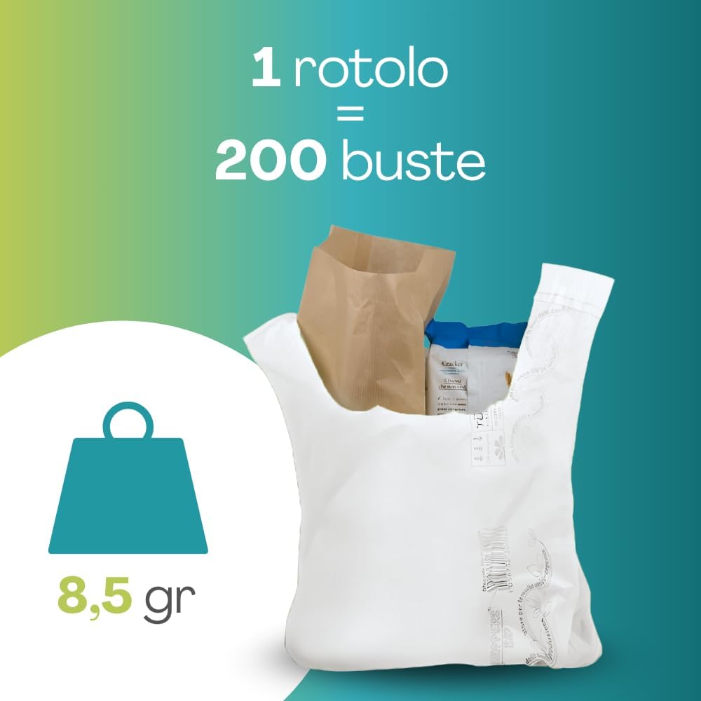 ✅ RICEVERAI - 1 rotolo da 200 shopper biodegradabili e compostabili, in mater-b, con misura pari a 30 x 60 cm, costituiti da soffietti laterali da 6 cm, ogni busta pesa 8,5 grammi, ideali per tutti gli esercizi commerciali. ✅ TOP QUALITY - Prodotto "Made in Italy", sinonimo di affidabilità e qualità delle buste shopper. Grazie alla loro grammatura risultano essere resistenti e robuste così da evitare rotture accidentali durante il trasporto della spesa creando situazioni spiacevoli per te o per i tuoi clienti. ✅ MULTIUSO - Le nostre buste shopper sono perfette per essere utilizzate in qualsiasi esercizio commerciale come "shopper", pratiche e comode! Allo stesso modo sono ideali per la raccolta dei rifiuti organici. Inoltre sono utilizzabili anche per un uso privato disponendo all'interno qualsiasi oggetto tu voglia trasportare. ✅ CONFORMI ALLA NORMATIVA EN13432 - Questo permette ai nostri sacchetti di essere utilizzati anche per la raccolta di rifiuti organici e di rispettare le normative imposte dai comuni italiani che hanno aderito alla raccolta differenziata. ✅ MANICO A NORMA - Le buste shopper biodegradabili sono costituite da un manico a norma garantendo la massima resa e resistenza del prodotto. Il prodotto, costituito da materiale biodegradabile e compostabile, aiuta a contribuire alla riduzione dell'impatto ambientale proteggendo il nostro pianeta dall'inquinamento.